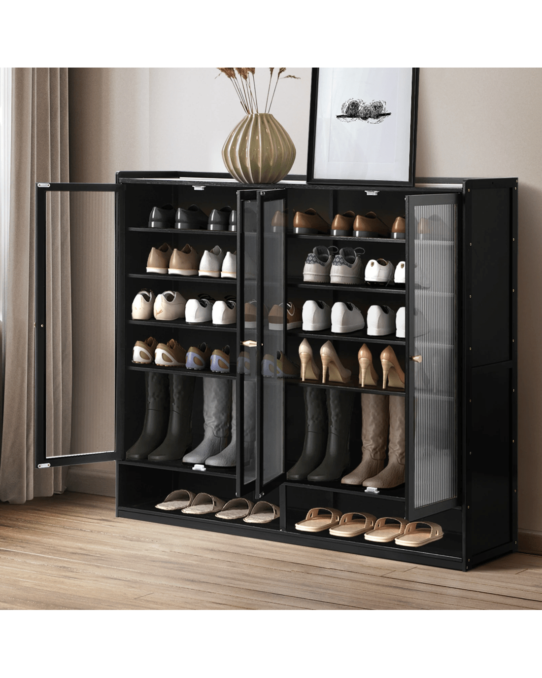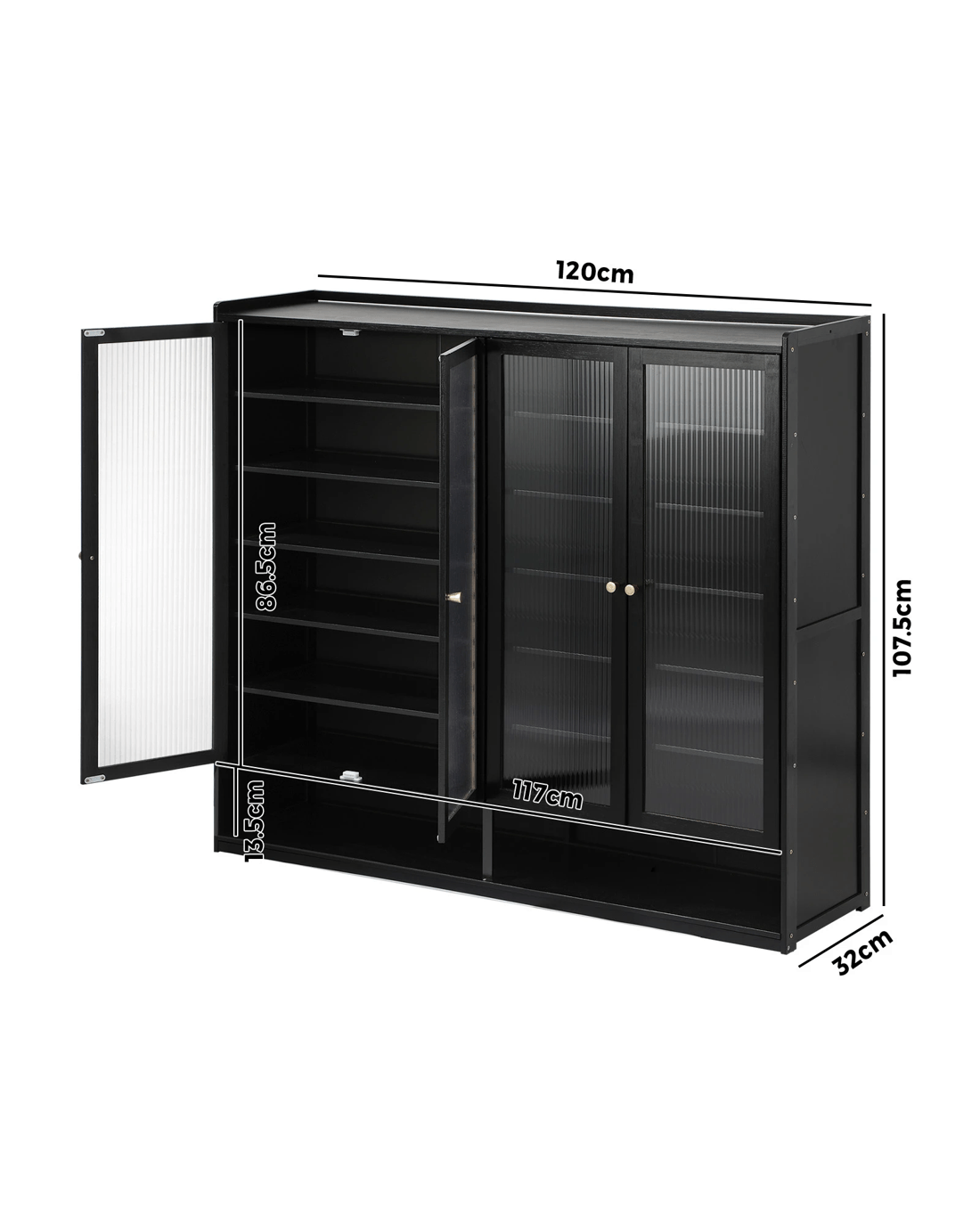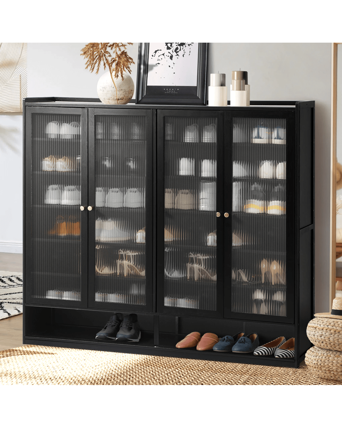 Adding a touch of class and sophistication to the ubiquitous shoe storage cabinet. The Oikiture Fluted Shoe Storage Cabinet is ready to present that bit of sparkle and flair to any hallway or entrance. With its four fluted cabinet doors, the shoe cabinet renders the ordinary extraordinary with eye-pleasing sensitivities.