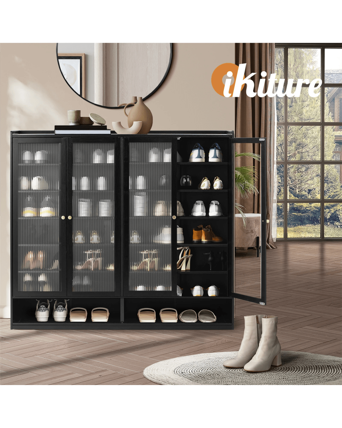 Sold by Kamprad's Oikos 1943Oikiture Shoe Cabinet Shoes Storage Rack Organiser 4 Doors Shelf - Black