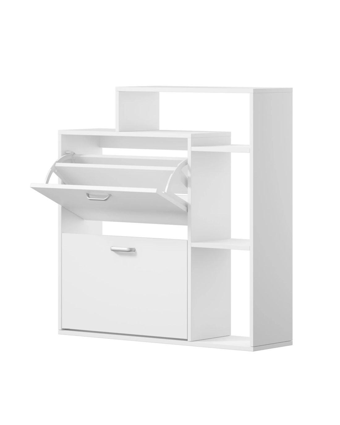 As a shoe cabinet, this practical piece of furniture is designed to speak volumes in form and function with versatile storage for a myriad of footwear. Kids', women's and men's footwear can all be easily accommodated with adjustable shelving within the 2-tier closed storage of each cabinet.