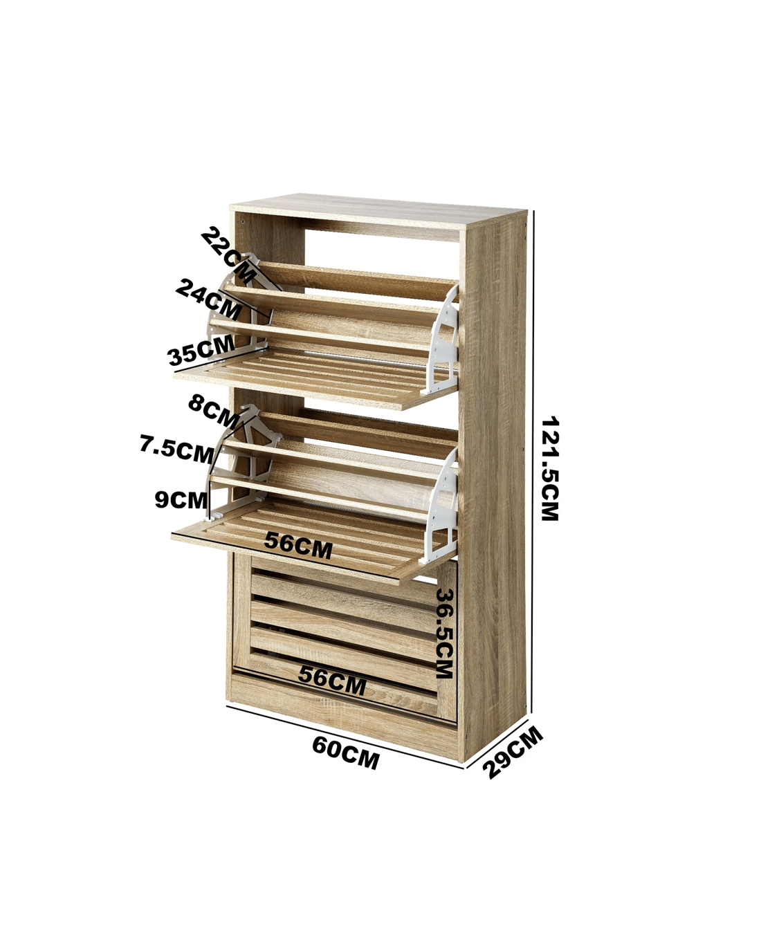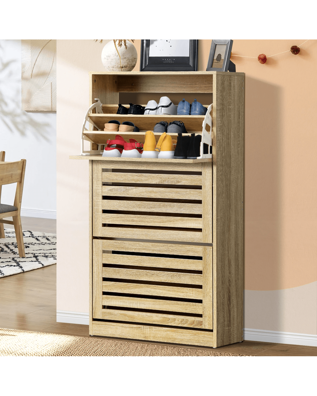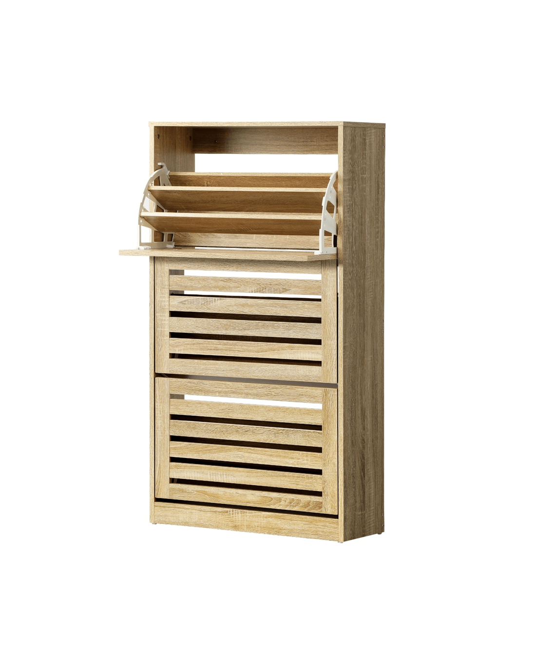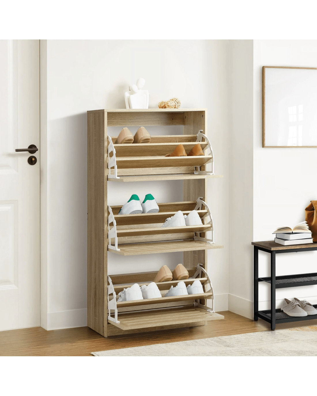 Oikiture Shoe Cabinet Storage 3 Doors Shoes Rack Organiser Wooden Shelf 45 Pairs - Natural