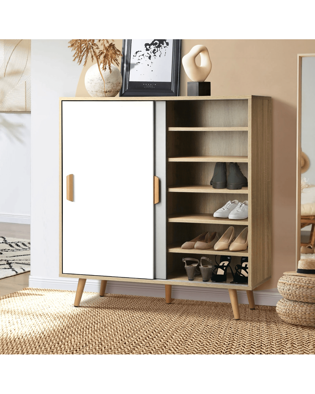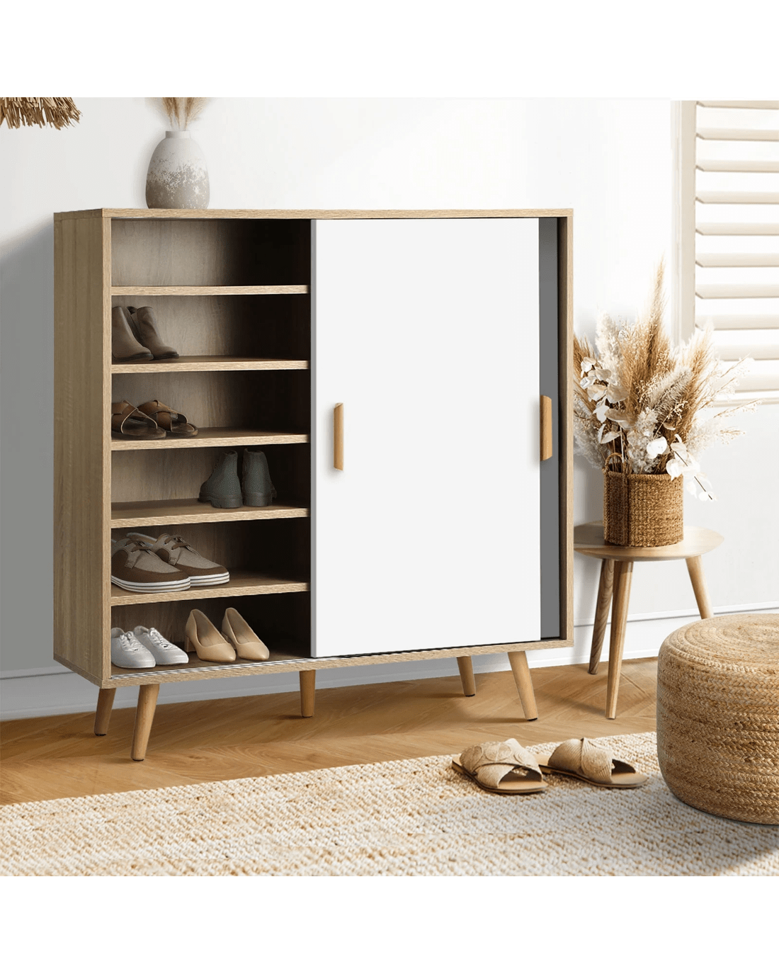 Sold by Kamprad's Oikos 1943Oikiture Shoe Cabinet Storage Organiser Shoes Rack Sideboard Shelf Cupboard - Natural