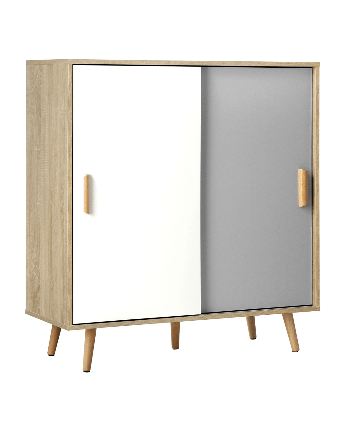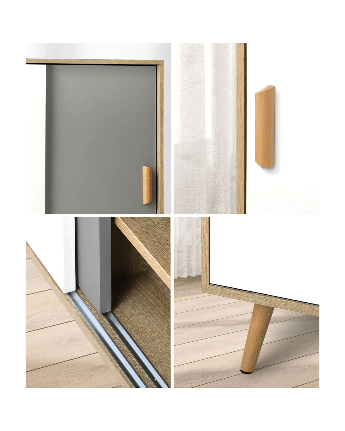 Undoubtedly, two sliding doors are simply captivating with meticulous attention to flawless finishing. Overall, the solid board construction also ensures durable and long-lasting use with matching wooden handles.