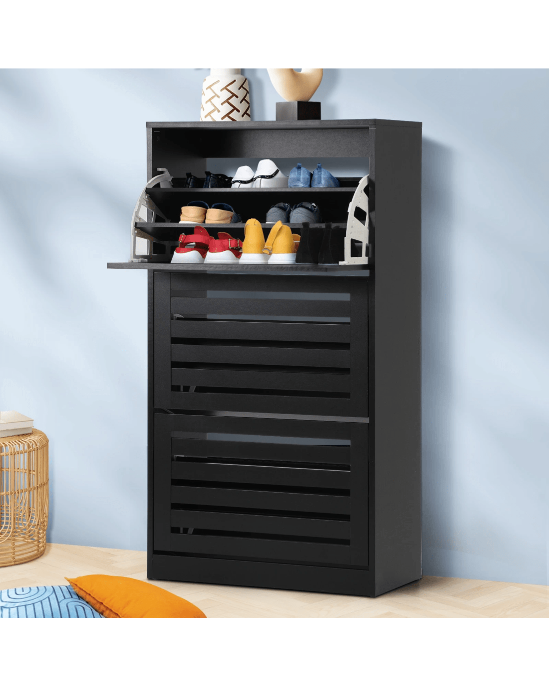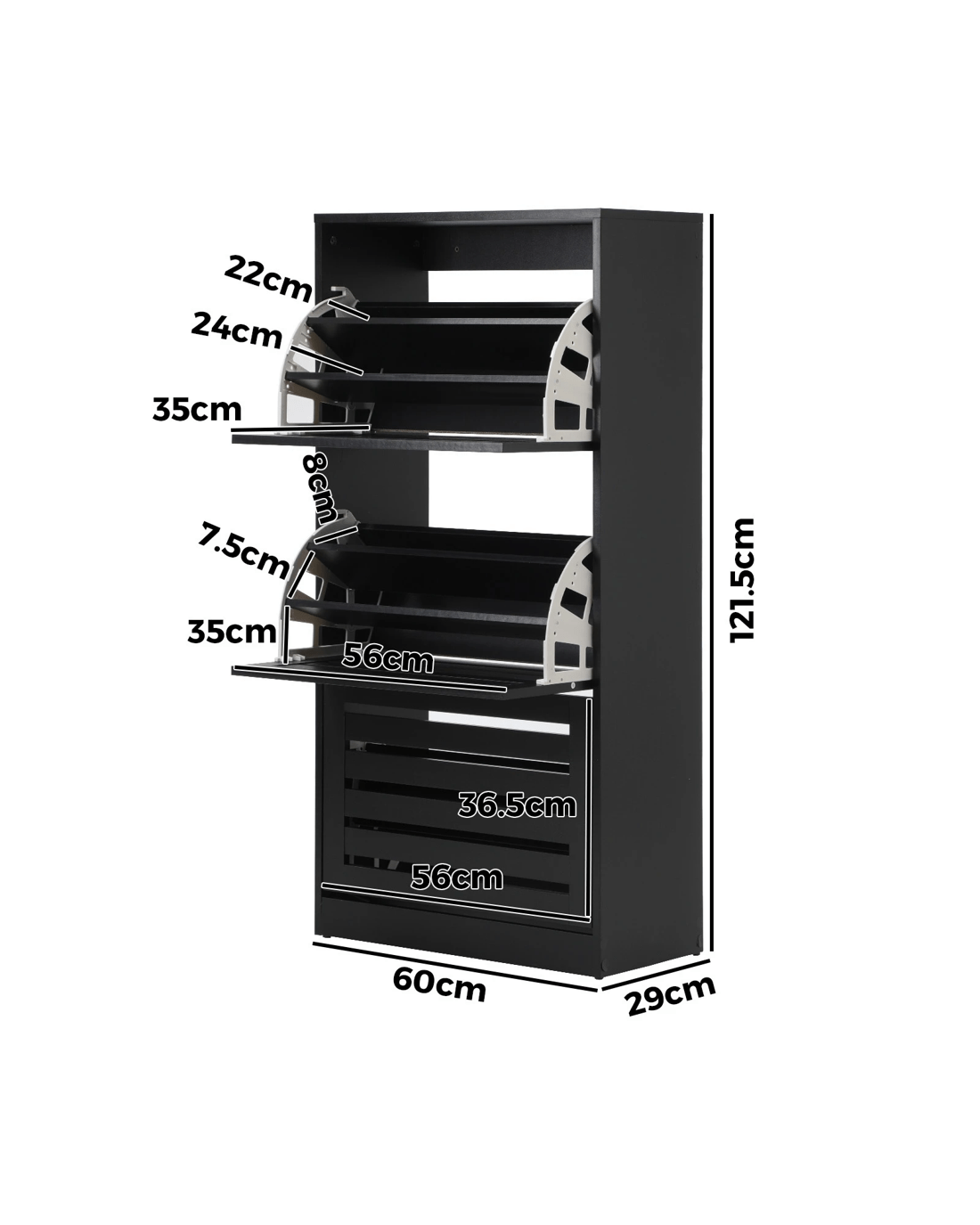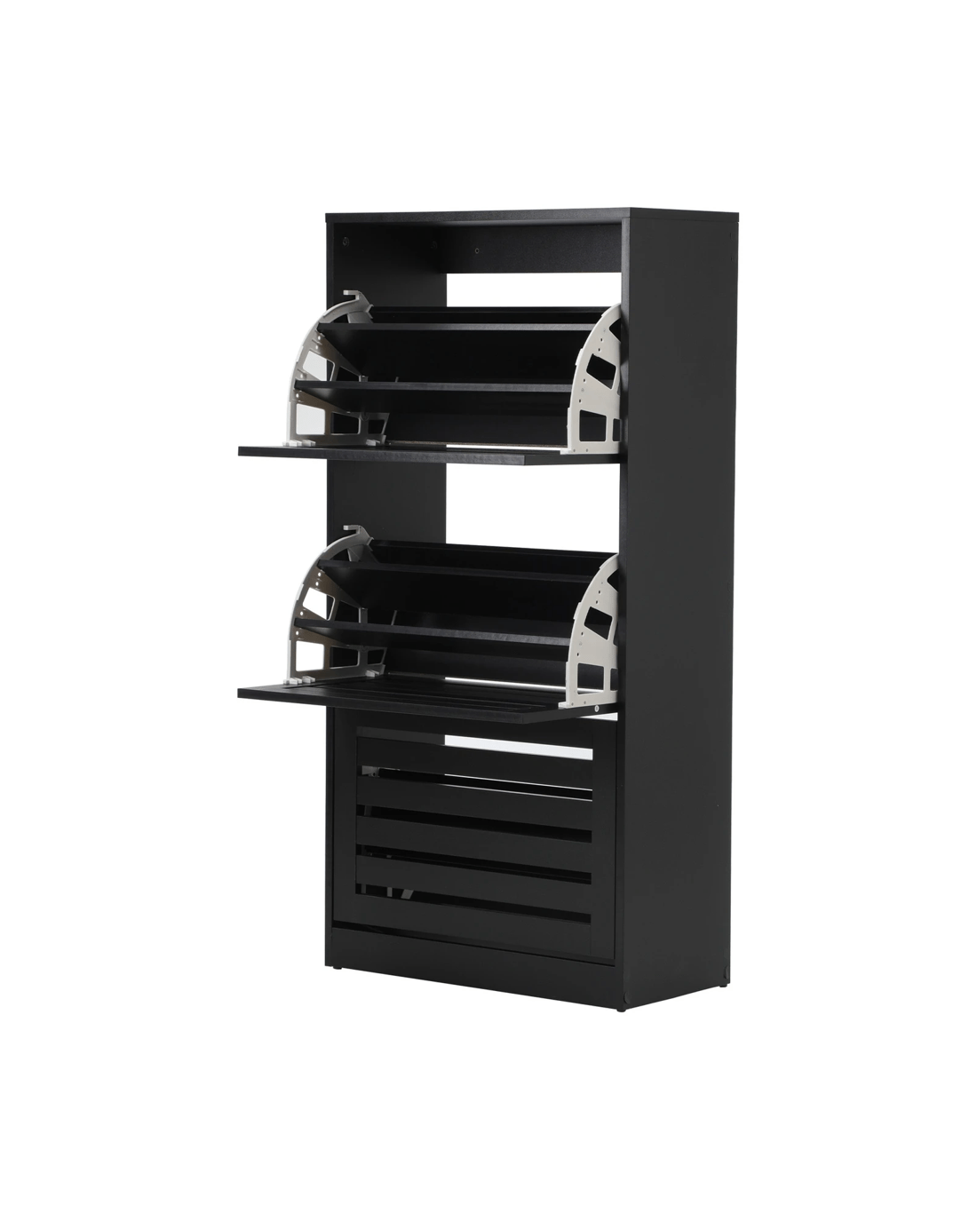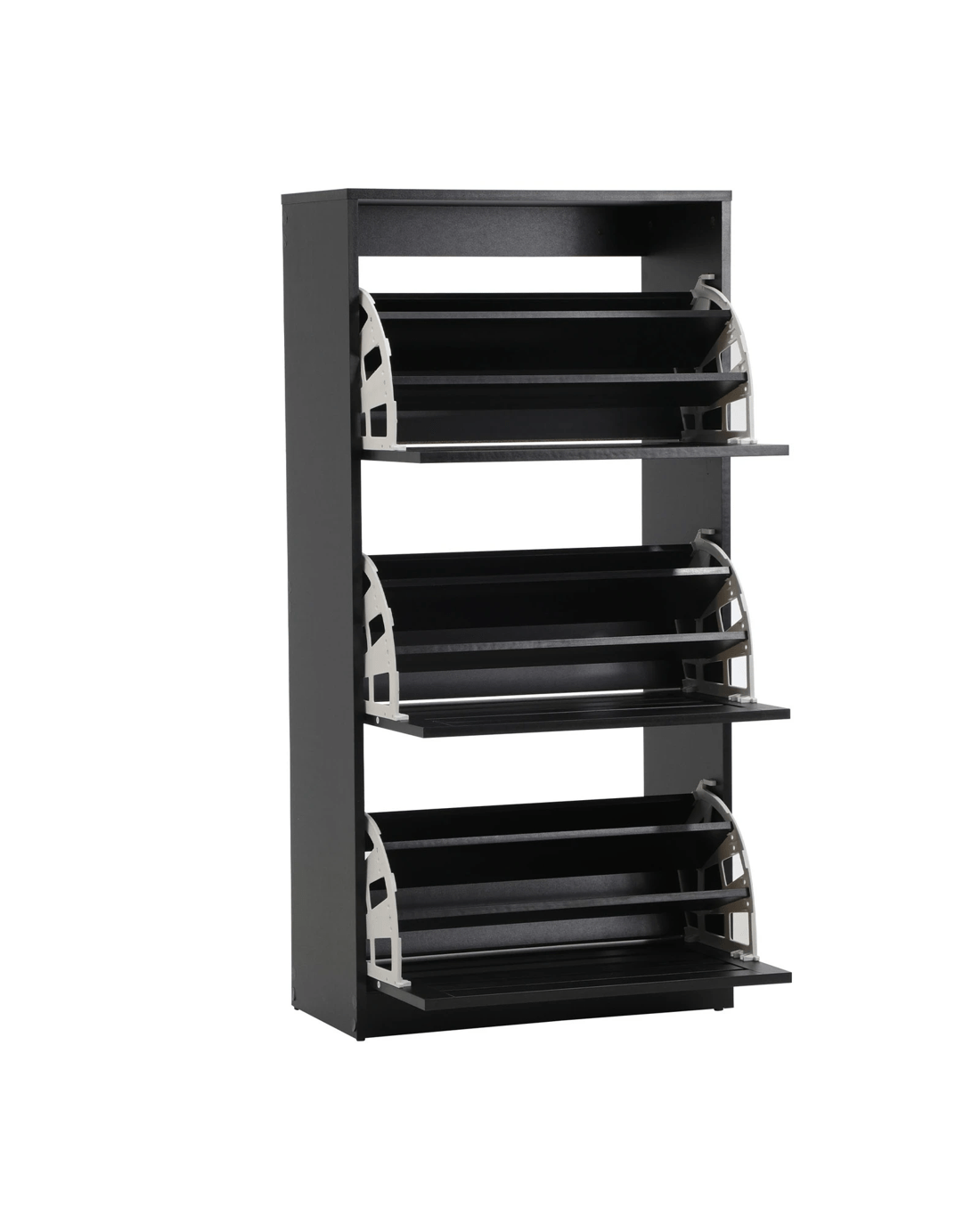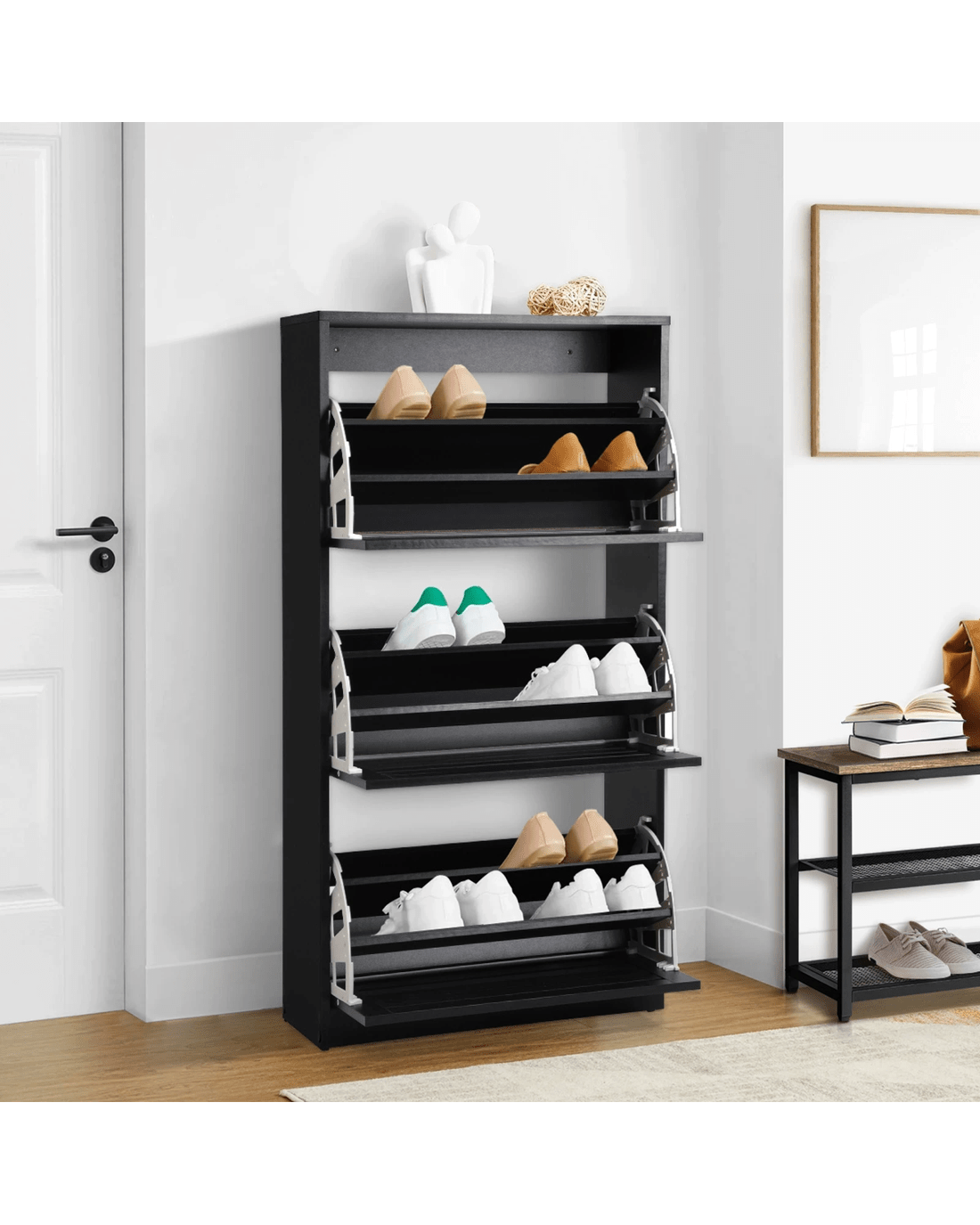 Oikiture Shoe Rack Shoes Storage Cabinet Organiser Shelf 3 Doors 45 Pairs - Black