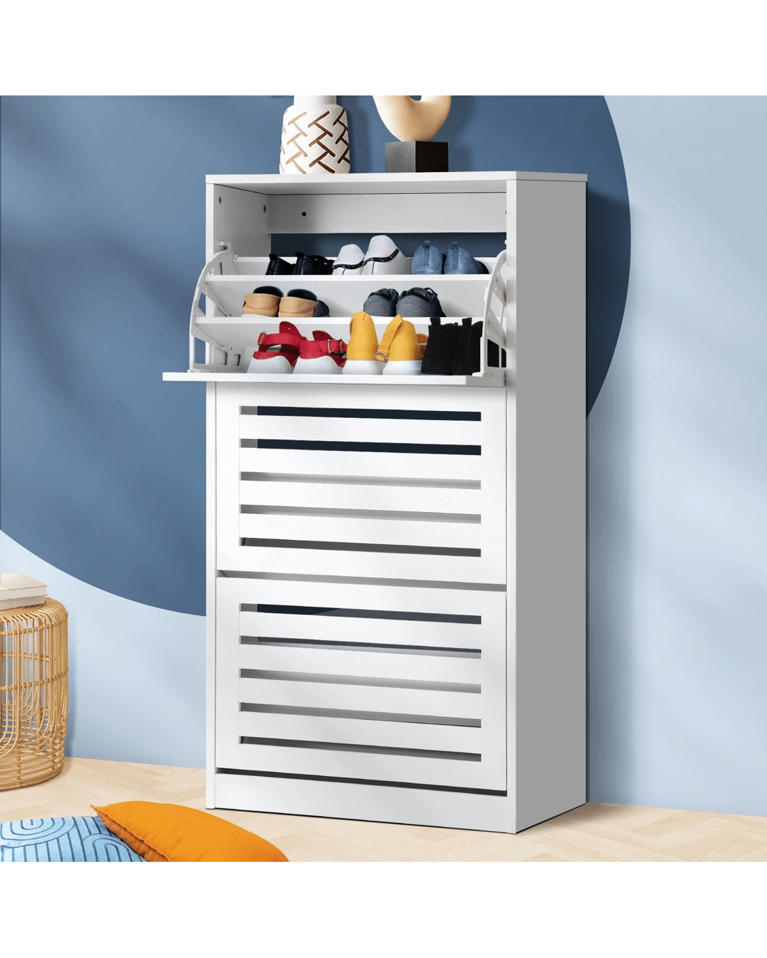 Up to 27-pair storage (depending on ladies' sizes, Larger shoe sizes and different shoe types will affect the fitting numbers per shelf)