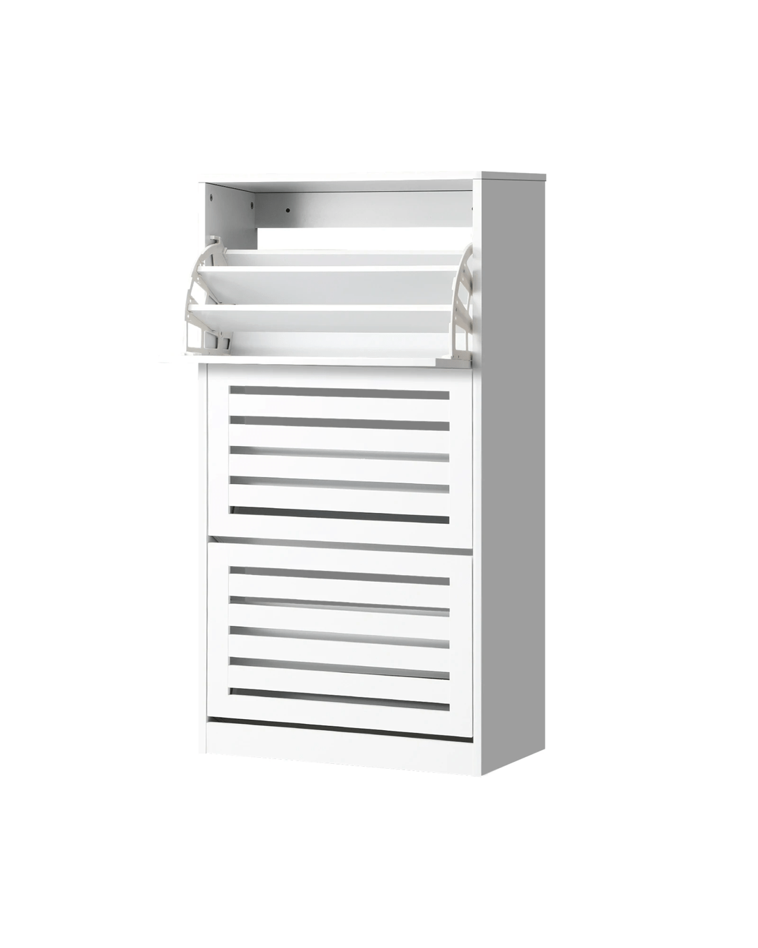 Inside, the Three storage compartments come with three rows per compartment and of which each row can be adjusted for shoe type. Store up to 45 pairs of ladies or children footwear or 18 pairs of men shoes. And on top, the cabinet provides a nice display space for your favourite items and collectibles too.