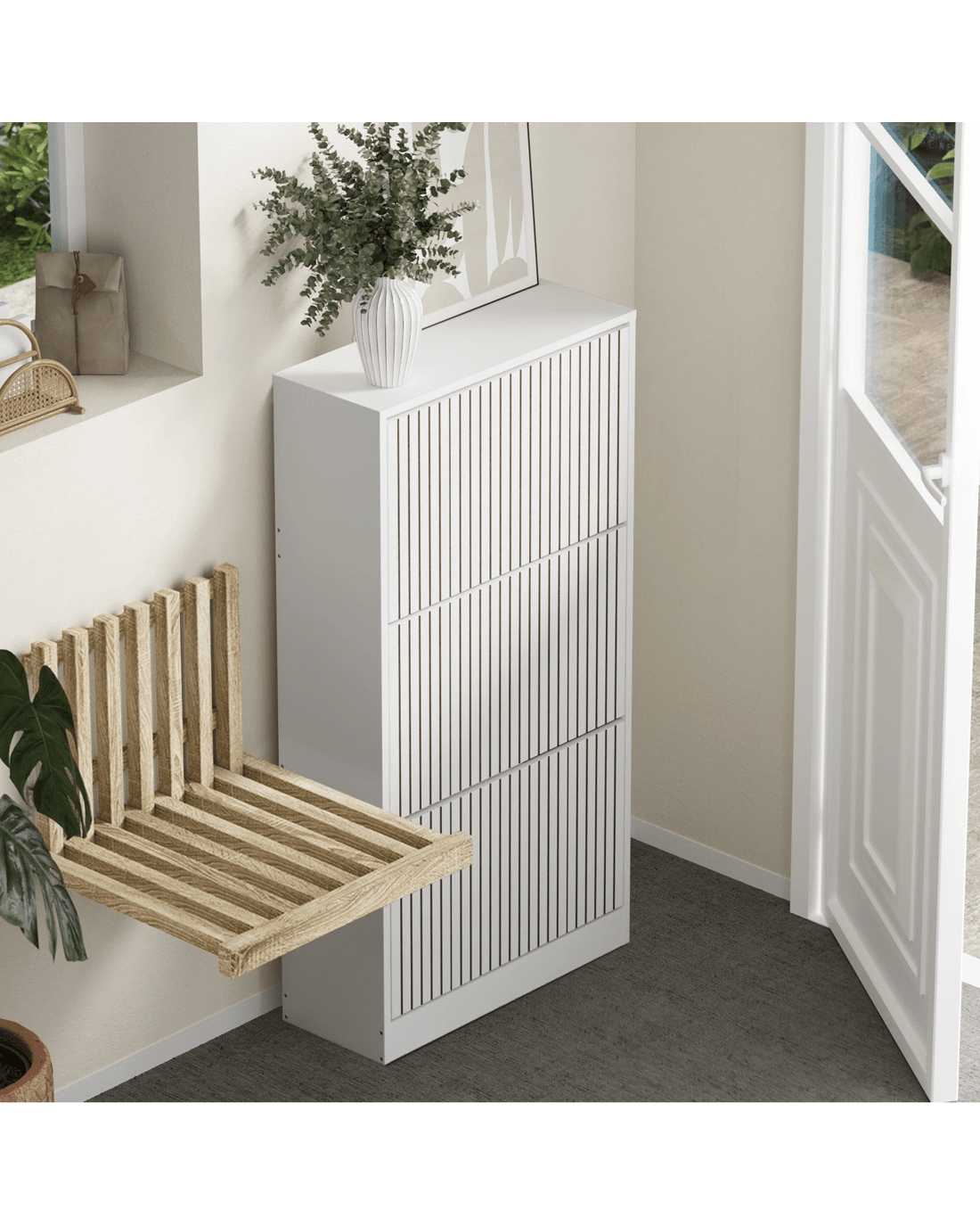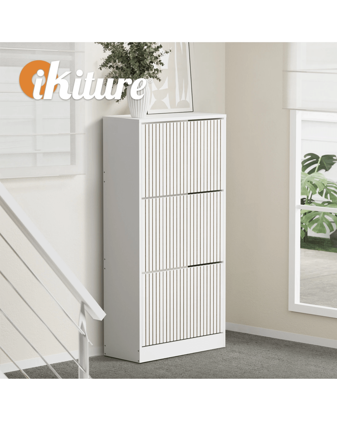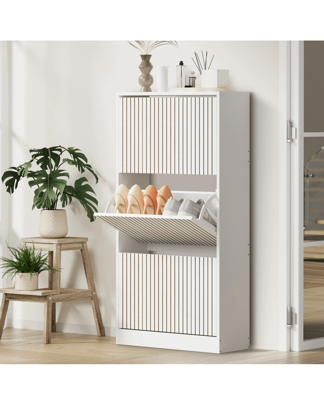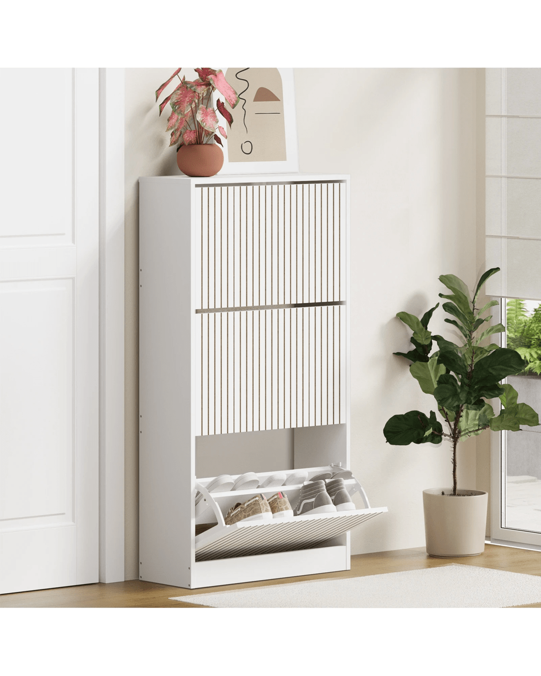 With its striped textured design, the Oikiture Shoe Storage Cabinet is as impressive as it is practical. The appealing profile makes the furniture piece a real standout in any discerning home decor and a stylish welcome to any entrance, hallway or doorway.