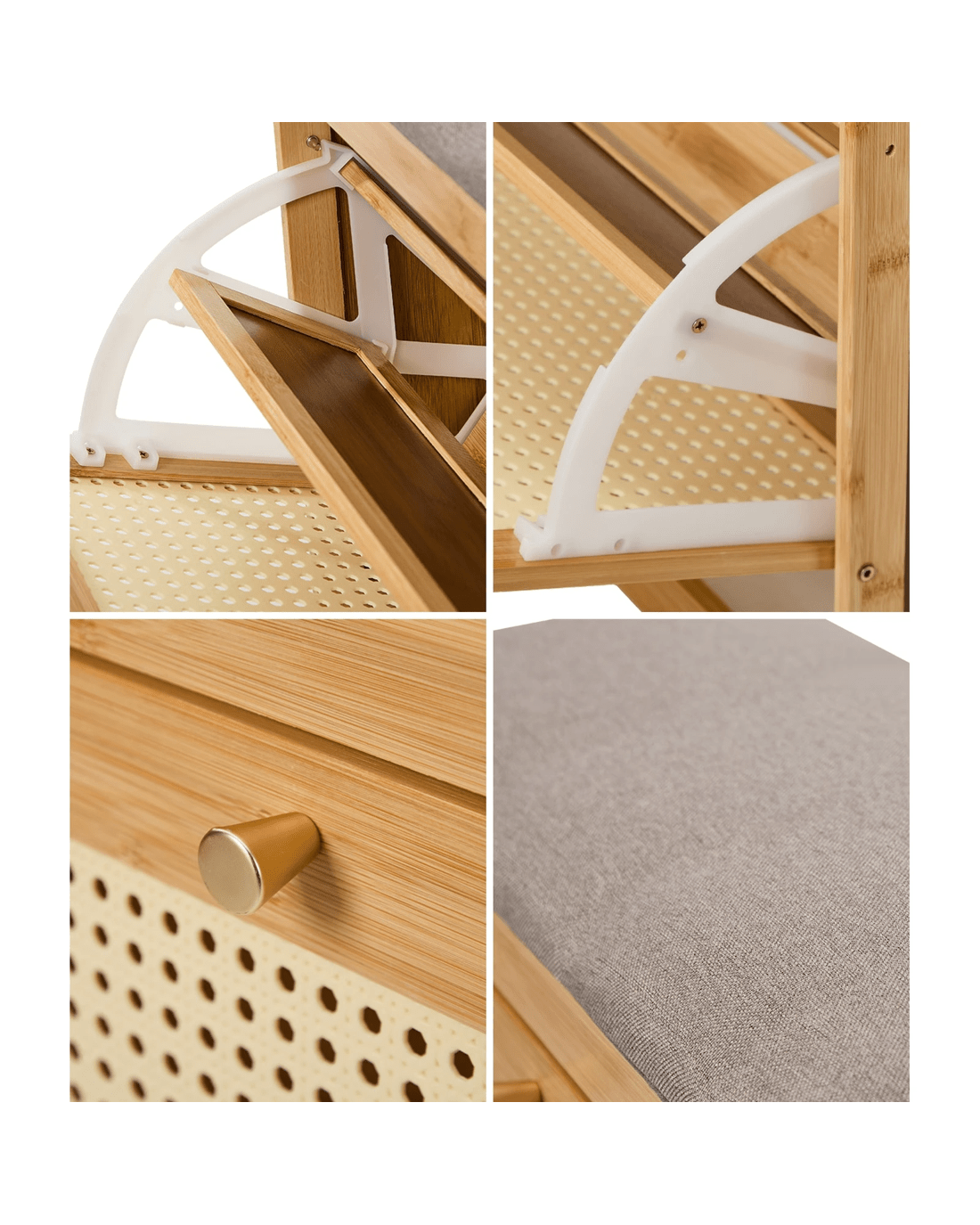 Styling wise, the faux rattan door pane adds charm and chic to the shoe storage bench which makes it ideal not just for the front entrance or hallway but for any home space where shoe storage is required.