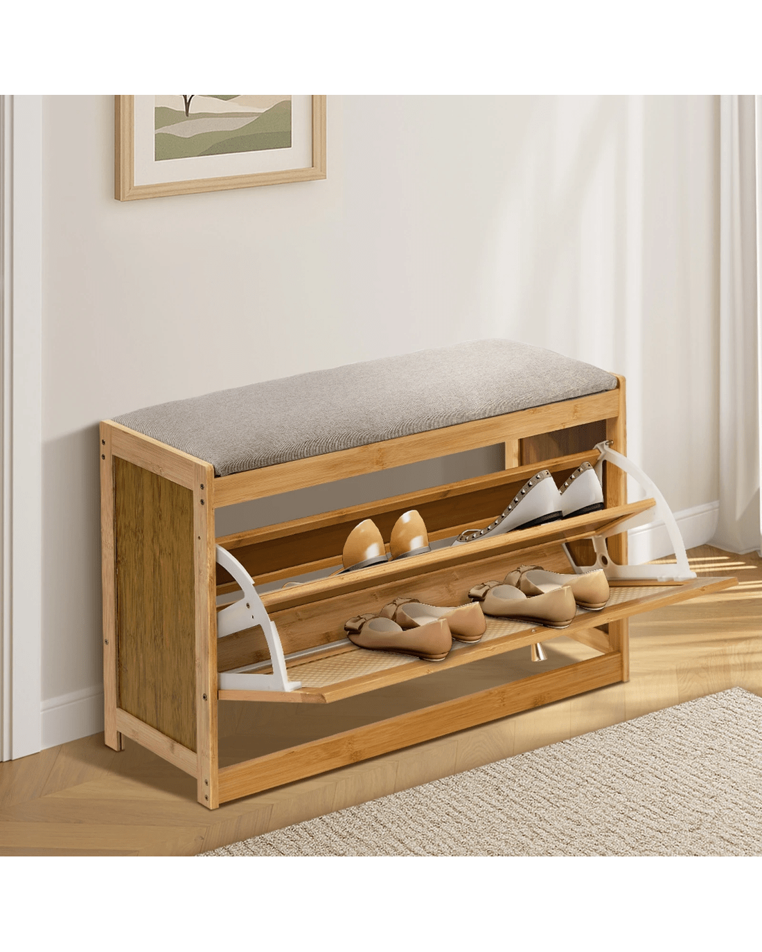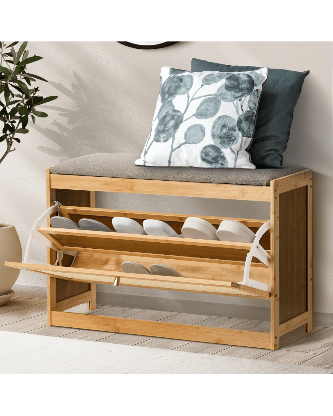 Keeping footwear neat and tidy and looking good too. The Oikiture Shoe Storage Bench will definitely add a touch of order and finesse to any hallway or entrance. The two-tier flip-design storage shoe rack is functionally adequate for a small number of footwear storage. But what's great about this product is its 2-in-1 function.