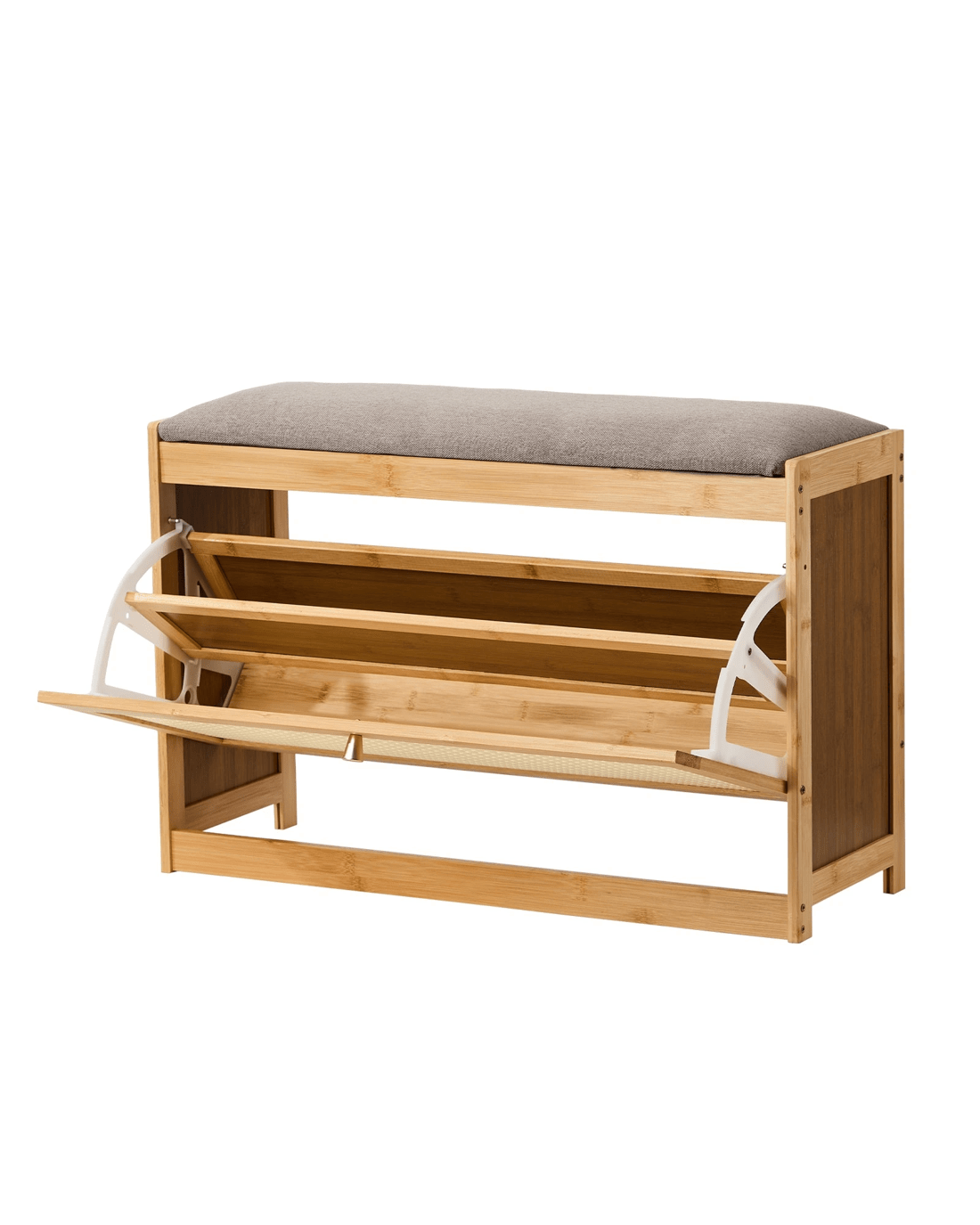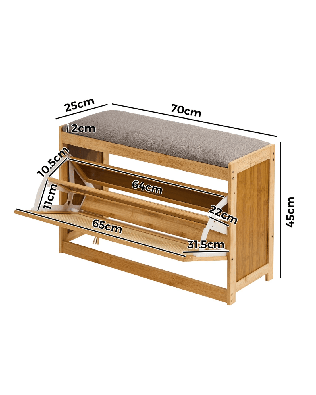 Oikiture Shoe Storage Bench Bamboo 2 in 1 Organiser Shelf with Seat 70cm - Natural