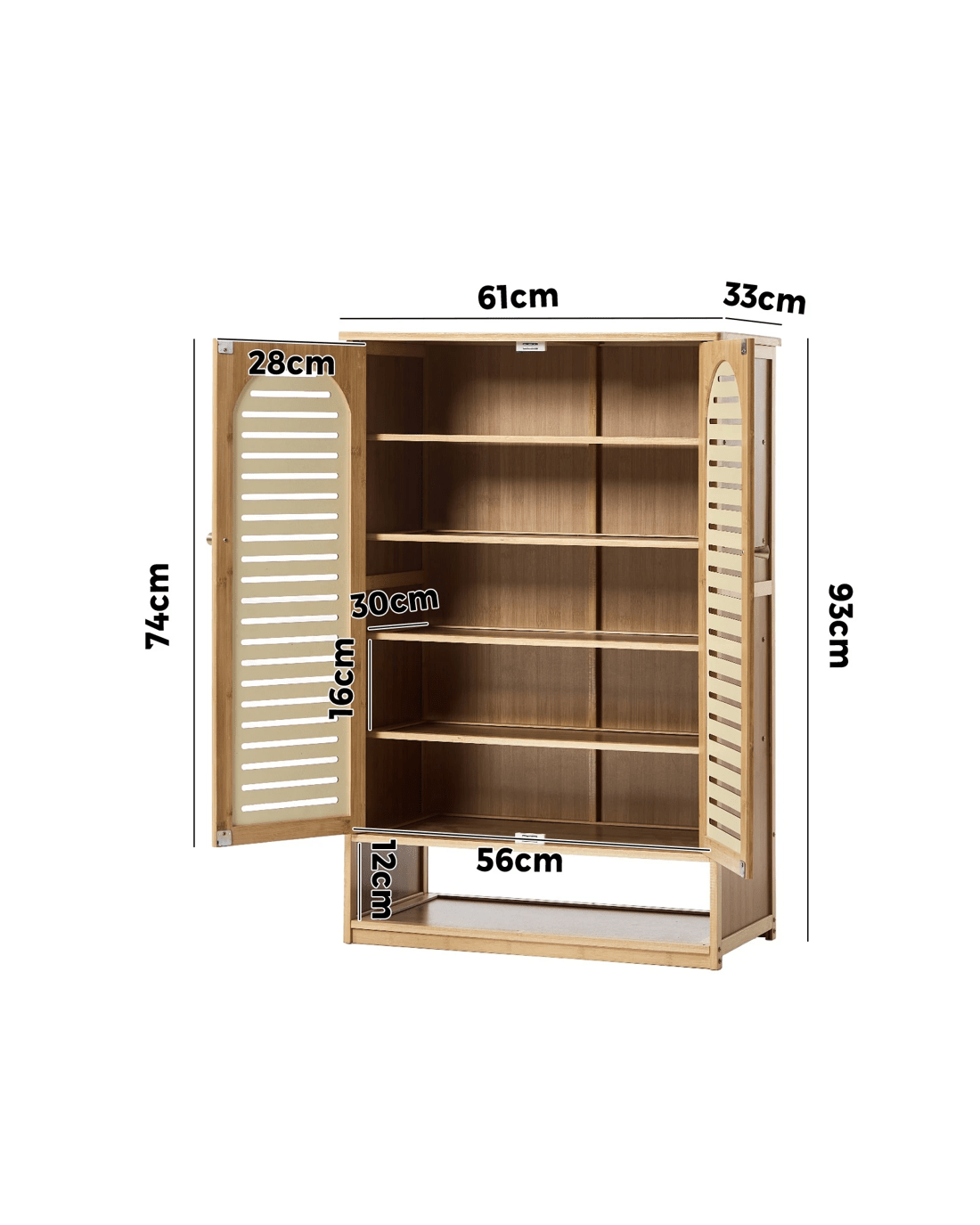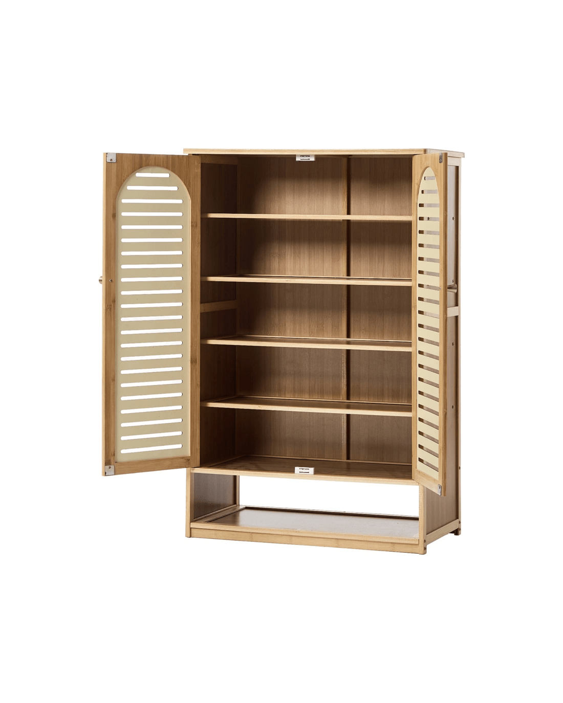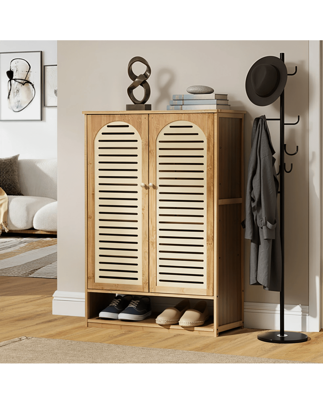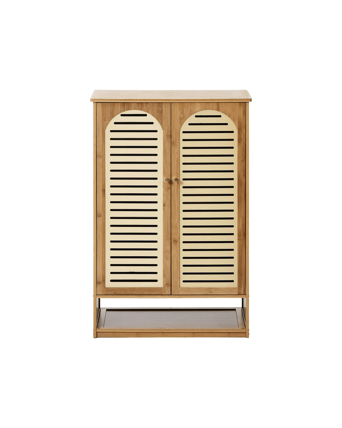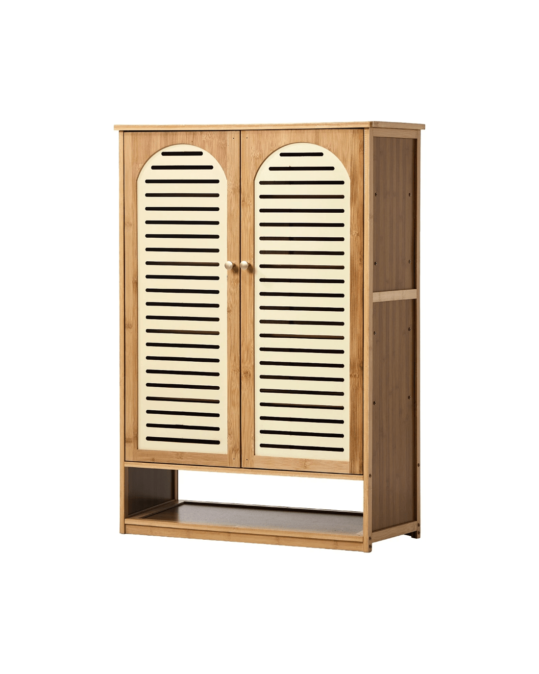 Sold by Kamprad's Oikos 1943Oikiture Shoe Storage Cabinet 2 Doors Bamboo Shoe Organiser Shelf - Beige