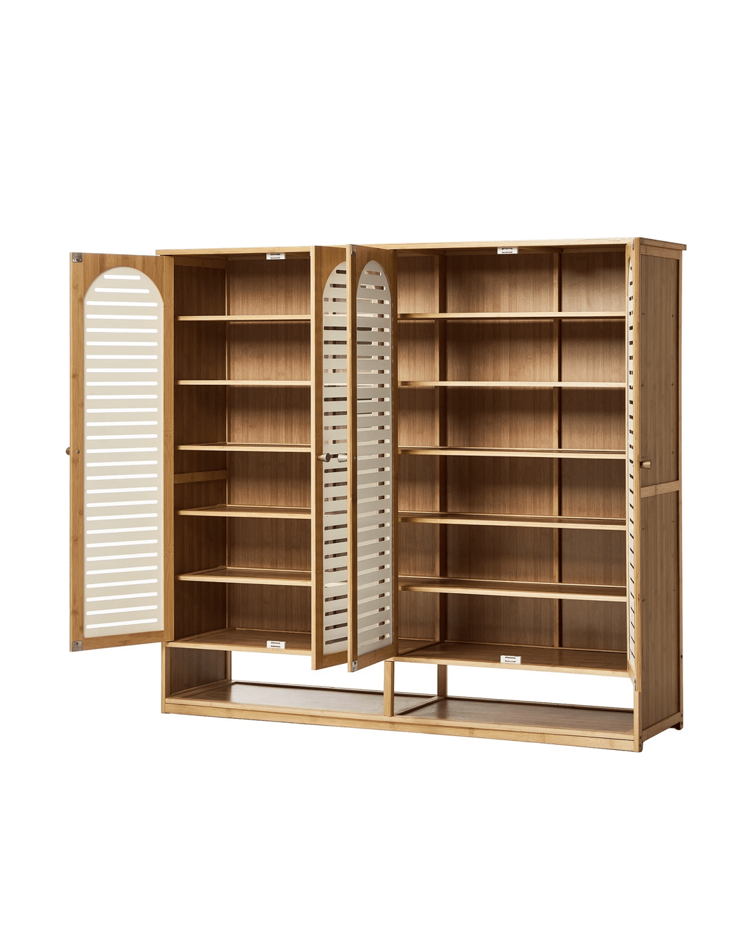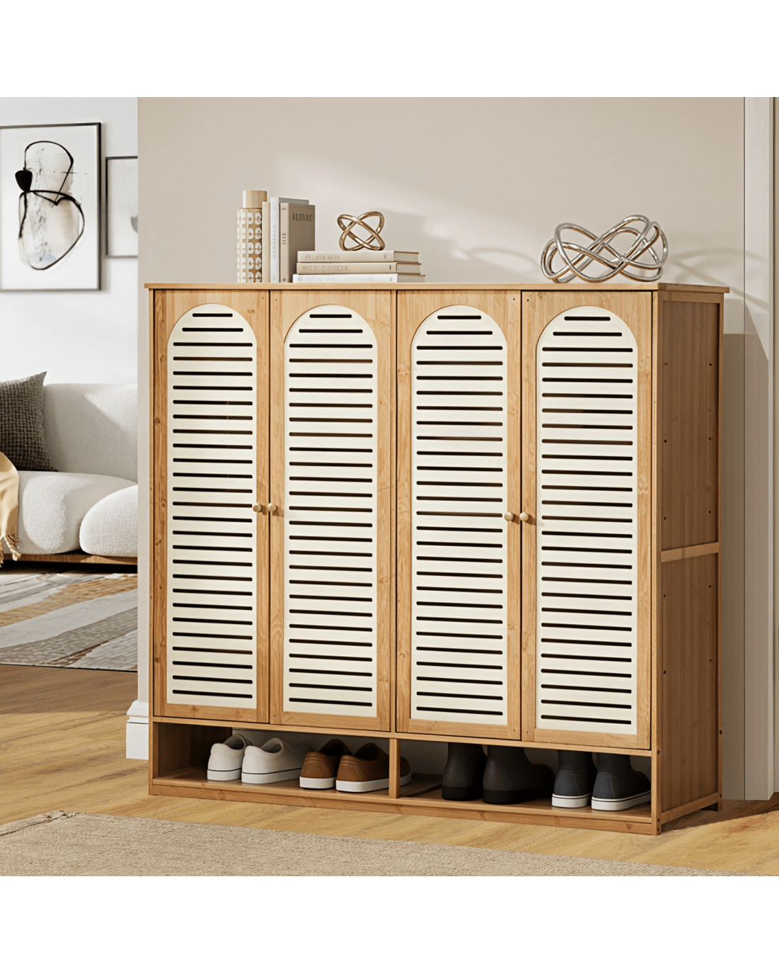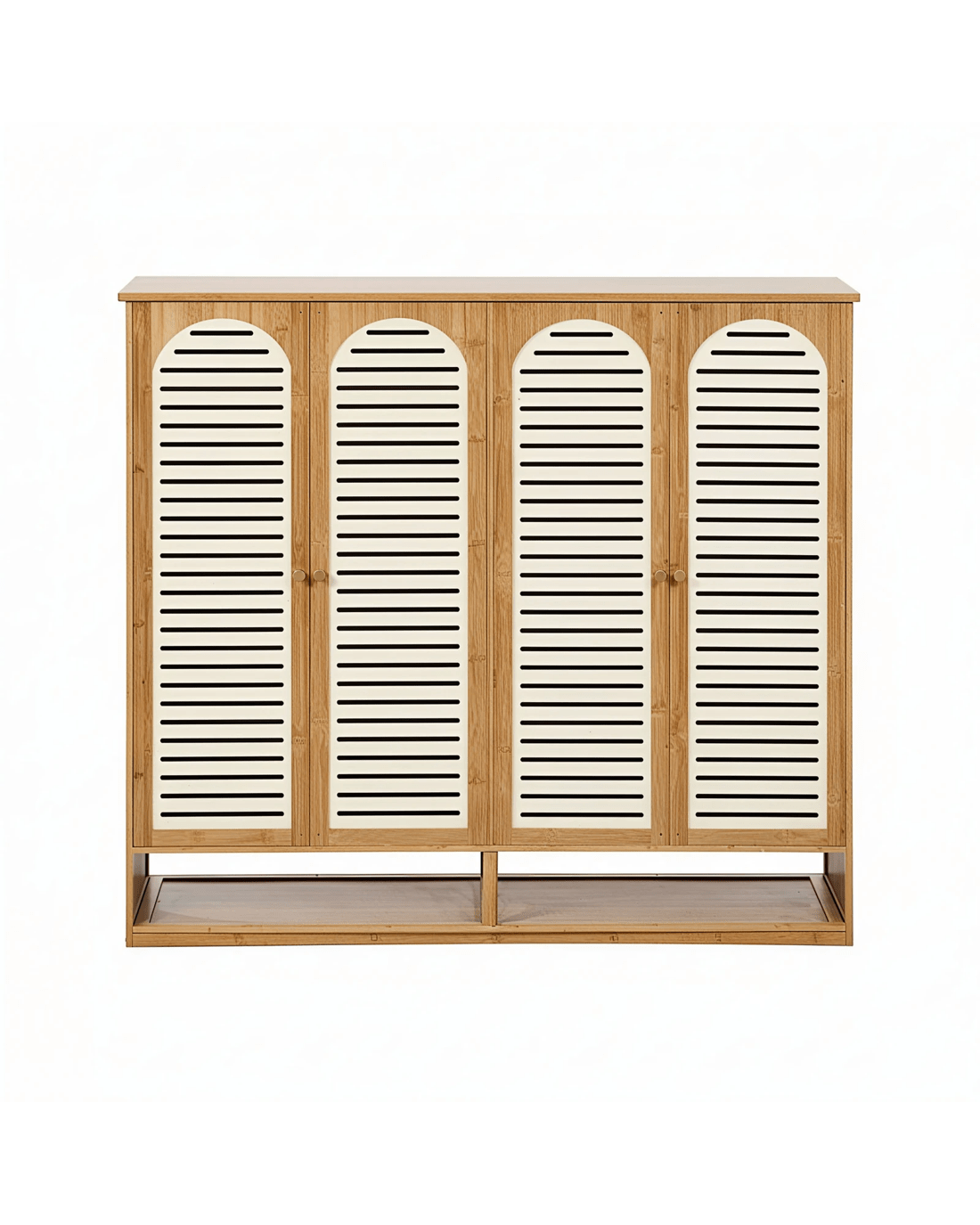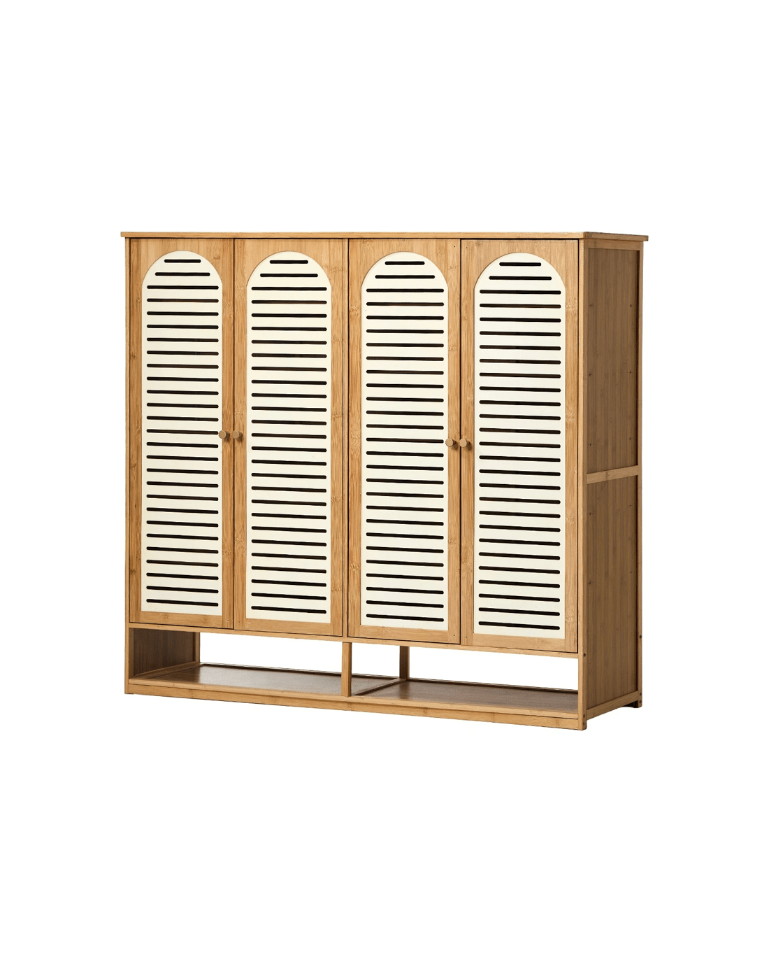 Sold by Kamprad's Oikos 1943Oikiture Shoe Storage Cabinet 4 Doors Bamboo Shoe Organiser Shelf - Beige