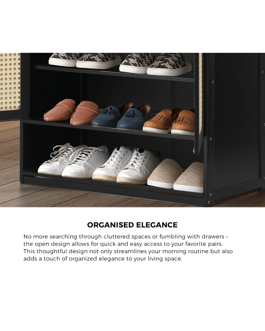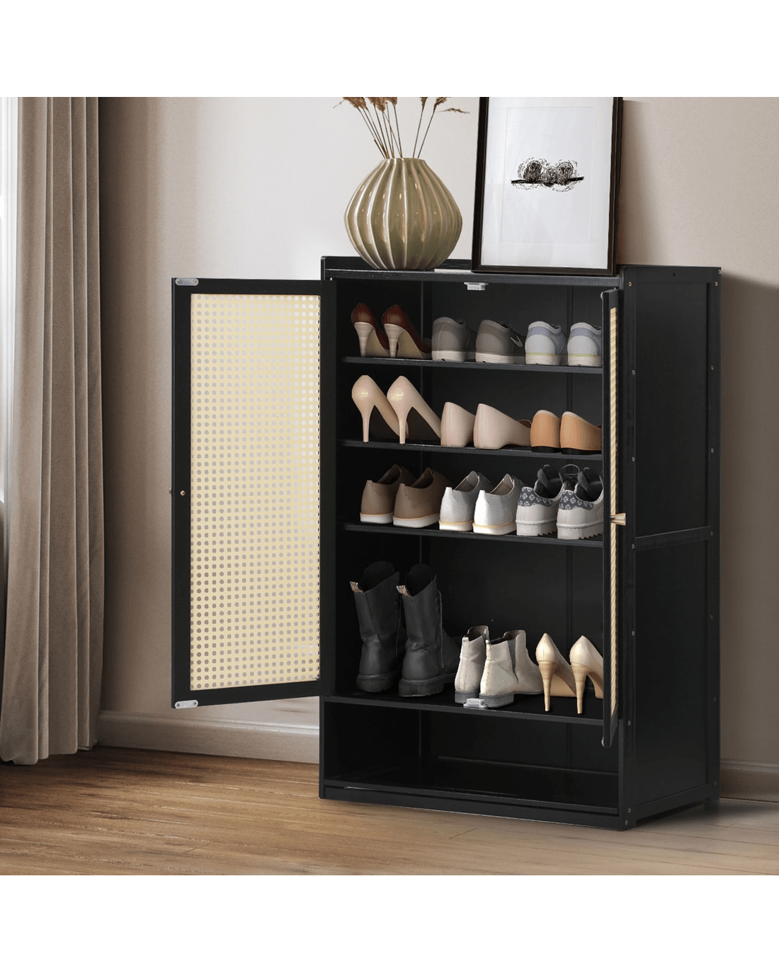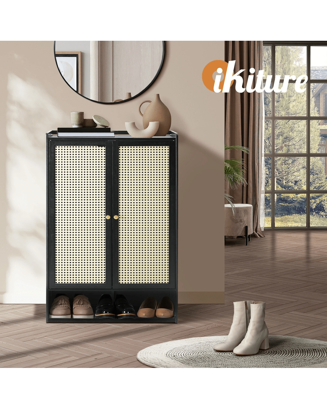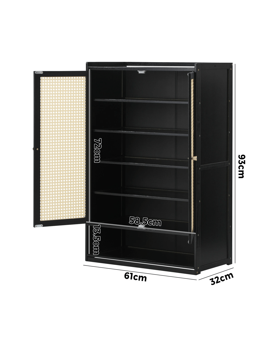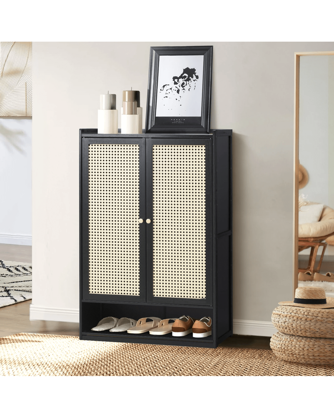 Oikiture Shoe Storage Cabinet Shoes Rack Organiser Shelf 2 Doors Rattan - Black