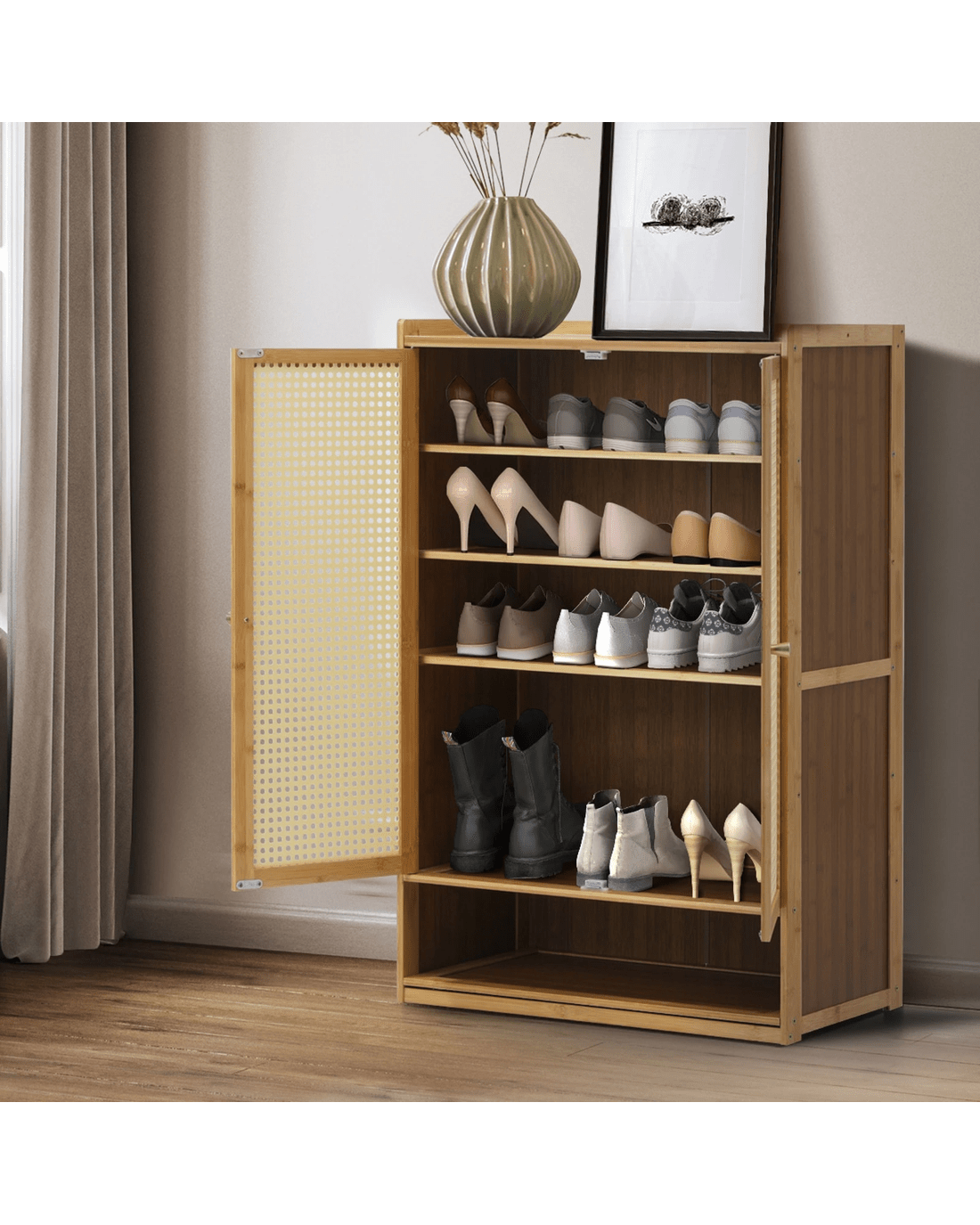 There are shoe storage cabinets. And there is the Oikiture Rattan Shoe Storage Cabinet. Pleasing to the eye with an appealing rattanesque two-door design, our shoe storage cabinet will definitely add a touch of finesse to any hallway or entrance. Such are its attractive qualities and inherent draw.