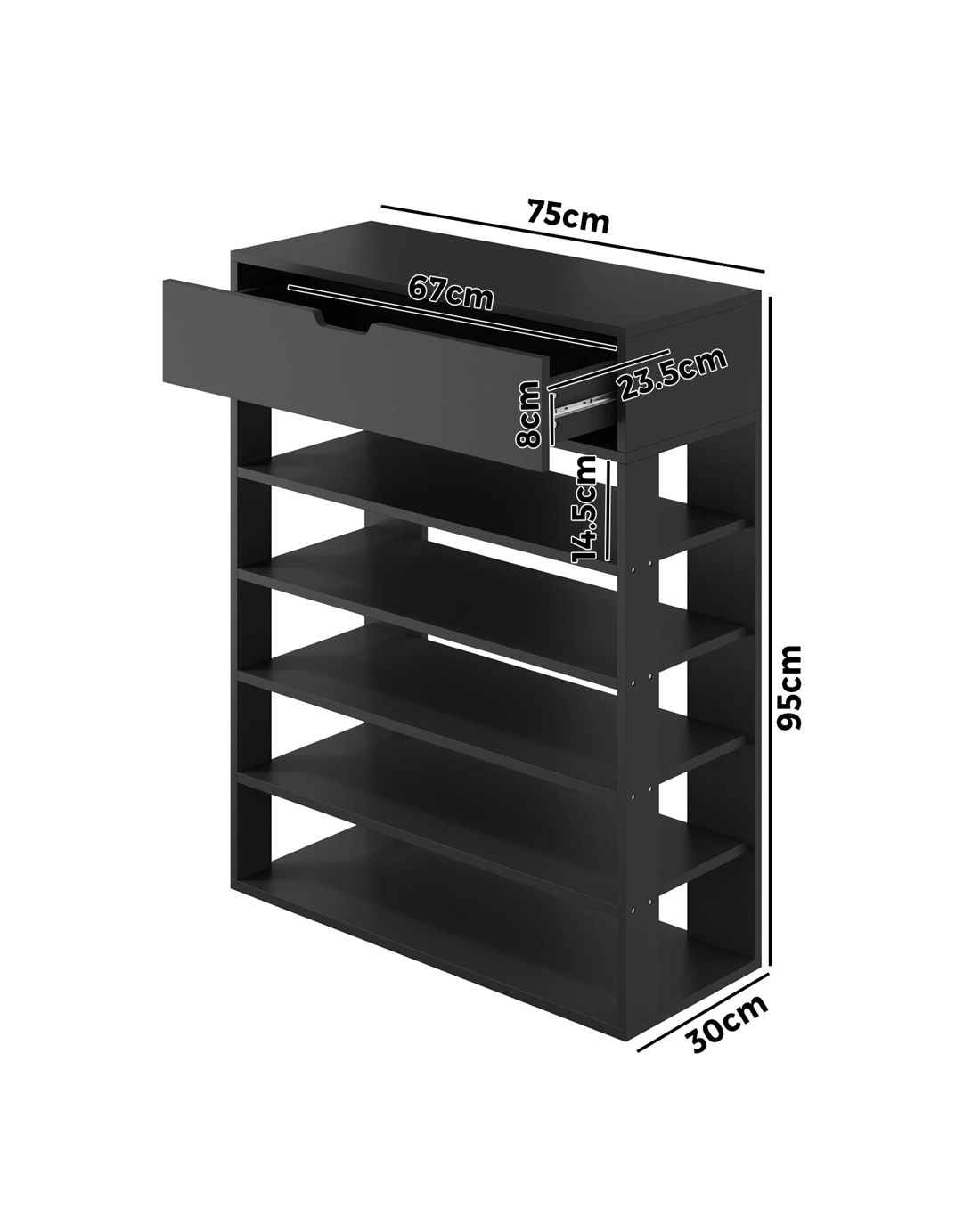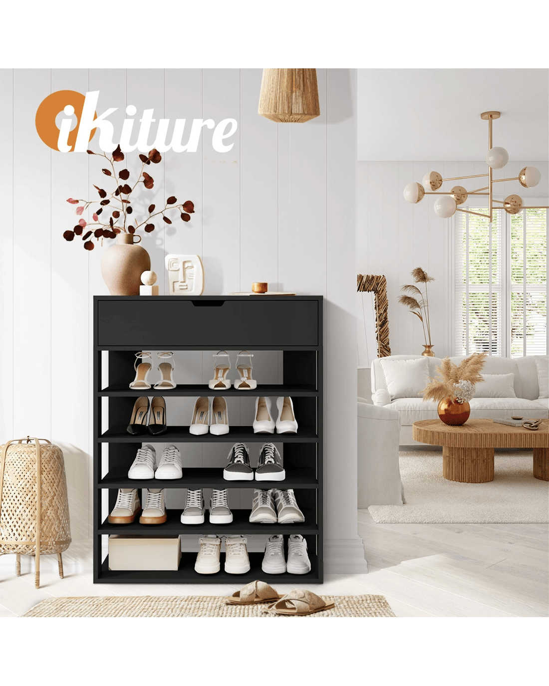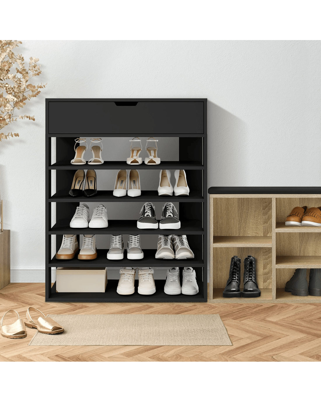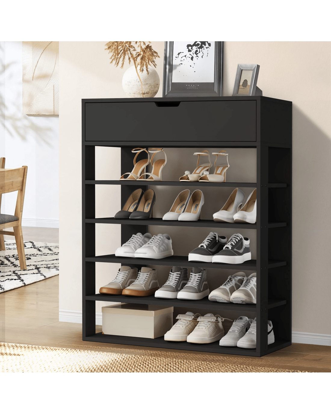 Oikiture Shoes Storage Rack 5-tier Shelves Shoe Storage Cabinet Drawer - Black
