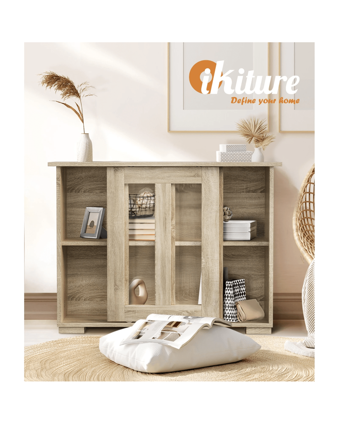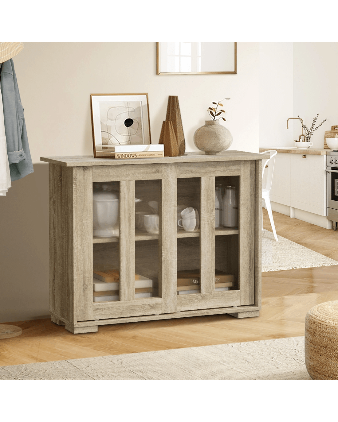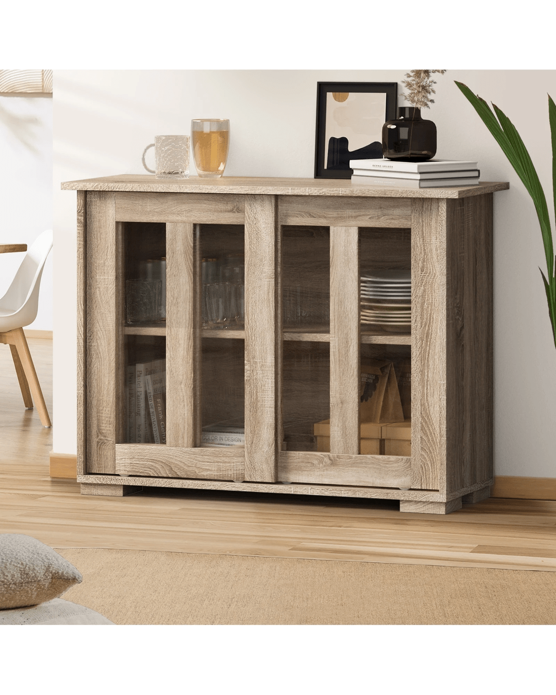 Sold by Kamprad's Oikos 1943Oikiture Sideboard Buffet Cabinet Cupboard Glass Sliding Door - Natural