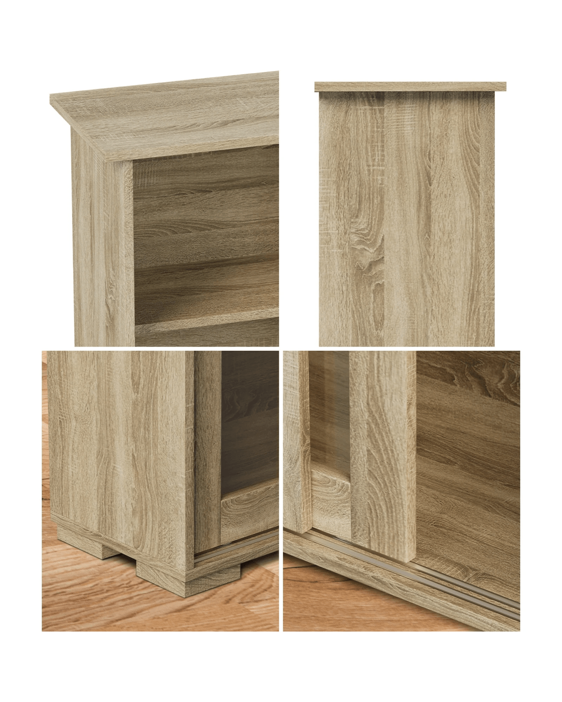 Constructed with 15mm particle board and quality components, the sideboard maintains a good sense of structure and durability. The attention to detail is meticulous, evidenced by the fine workmanship from top to bottom. Not least, maintaining the sideboard in its pristine condition is just a simple wipe away.