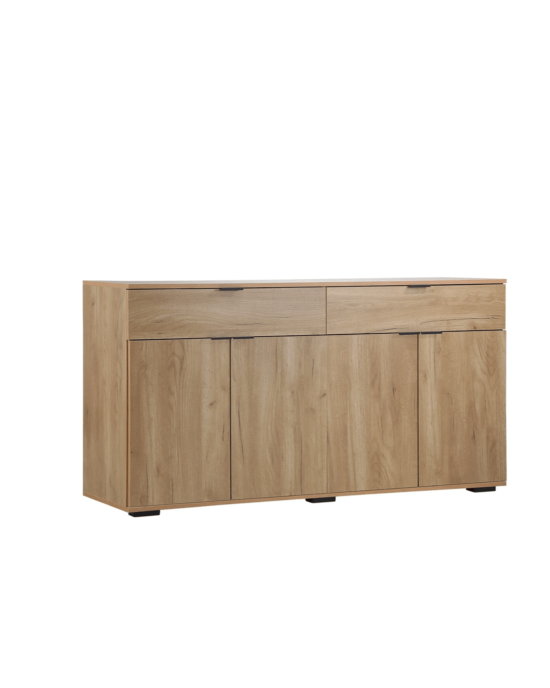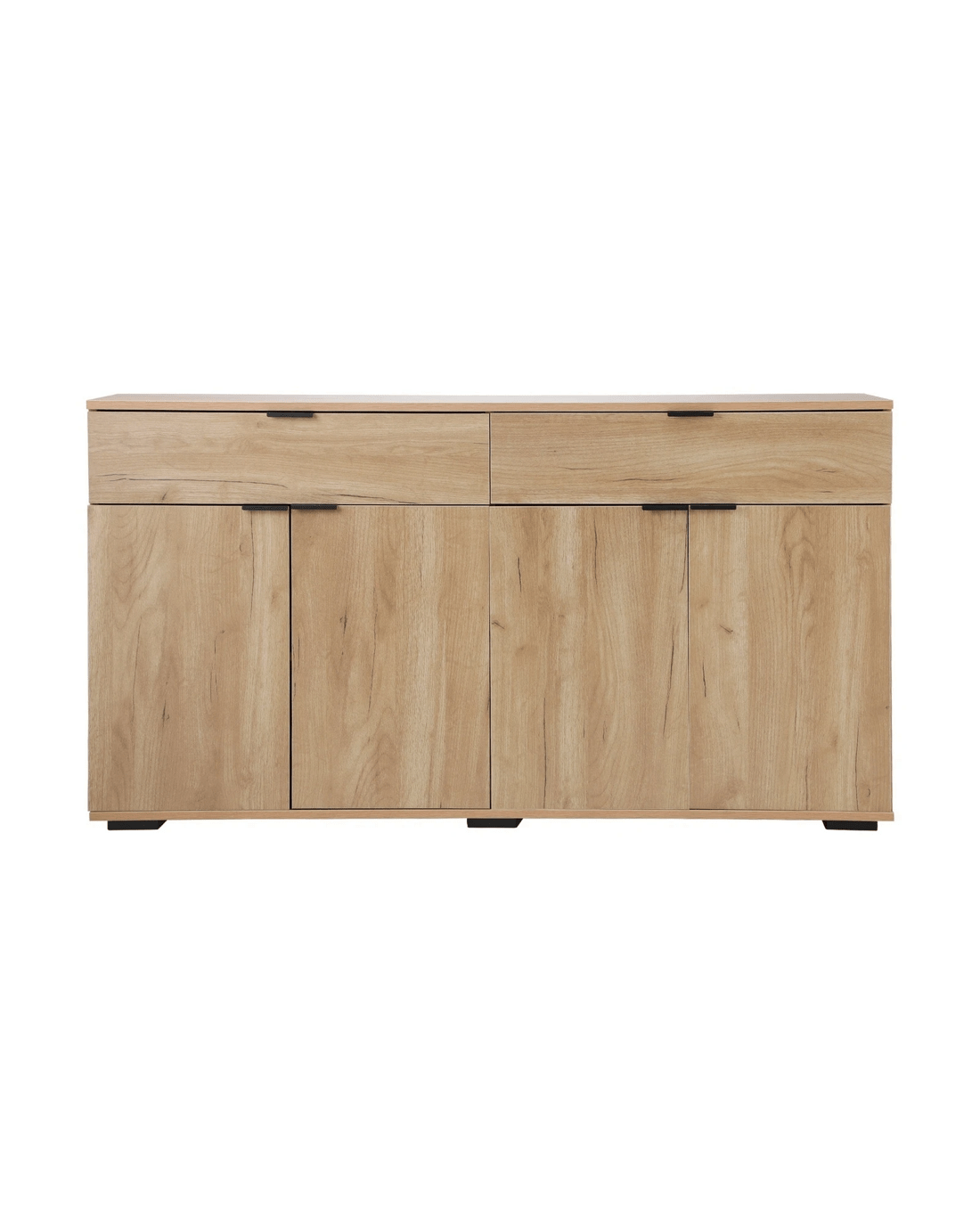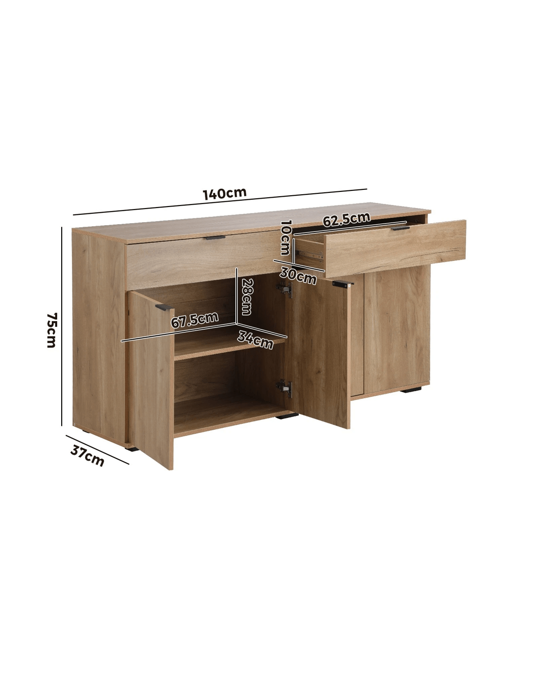 With a very practical and equally contemporary design, this Oikiture Sideboard features a clean profile in chic blanc that speaks volumes of its sophisticated presence in any discerning home setting. First impressions can designed to captivate and this sideboard certainly does that perfectly with its generous display and storage space. Comprising two large top drawers and a 4-door cabinet with tiered shelving, the sideboard presents cavernous storage and has more than ample real estate to store household essentials and then some more. The top is long and linear and makes for a great storytelling platform in terms of your favourite photographic displays and other collectibles that ignite your passion and interests.