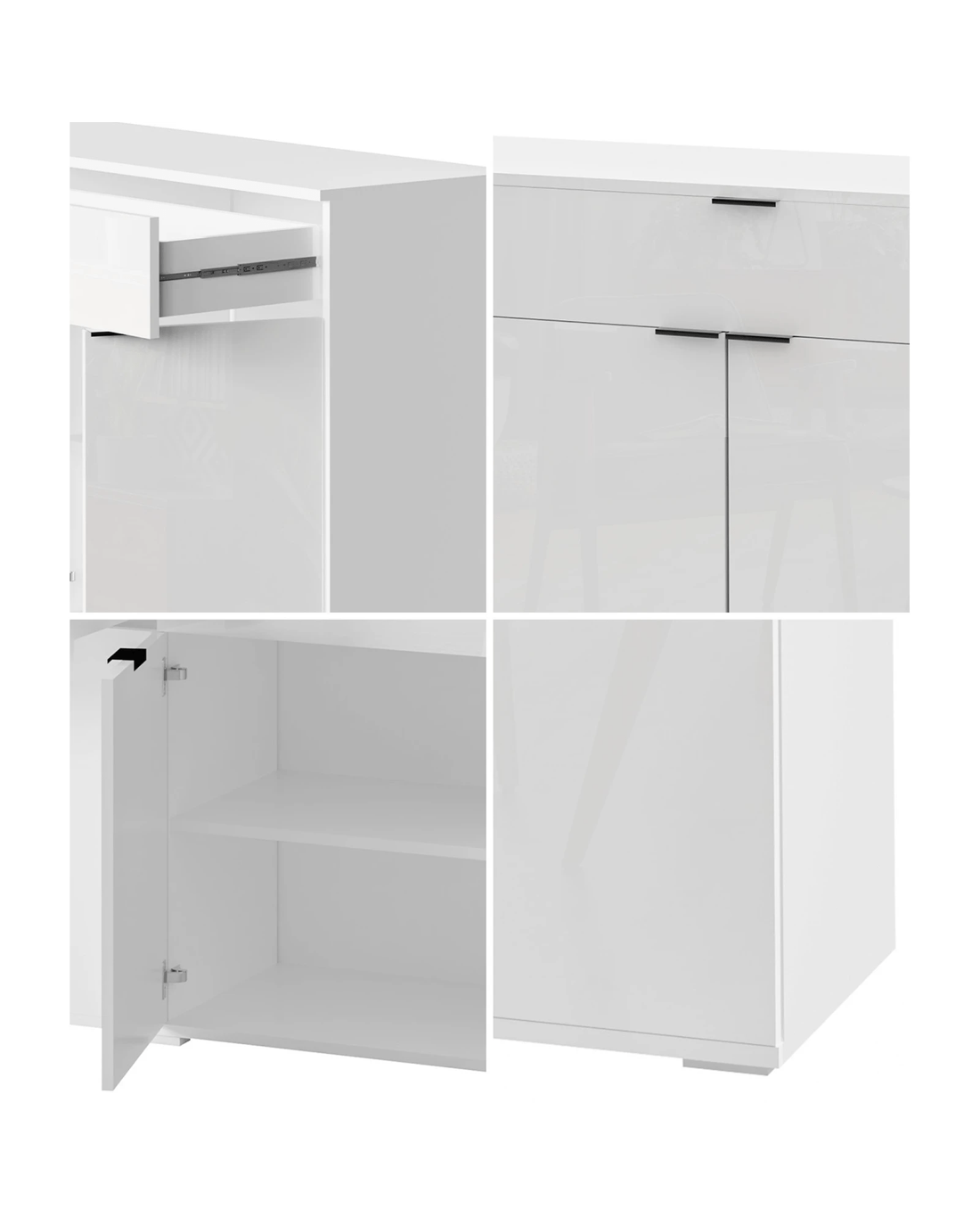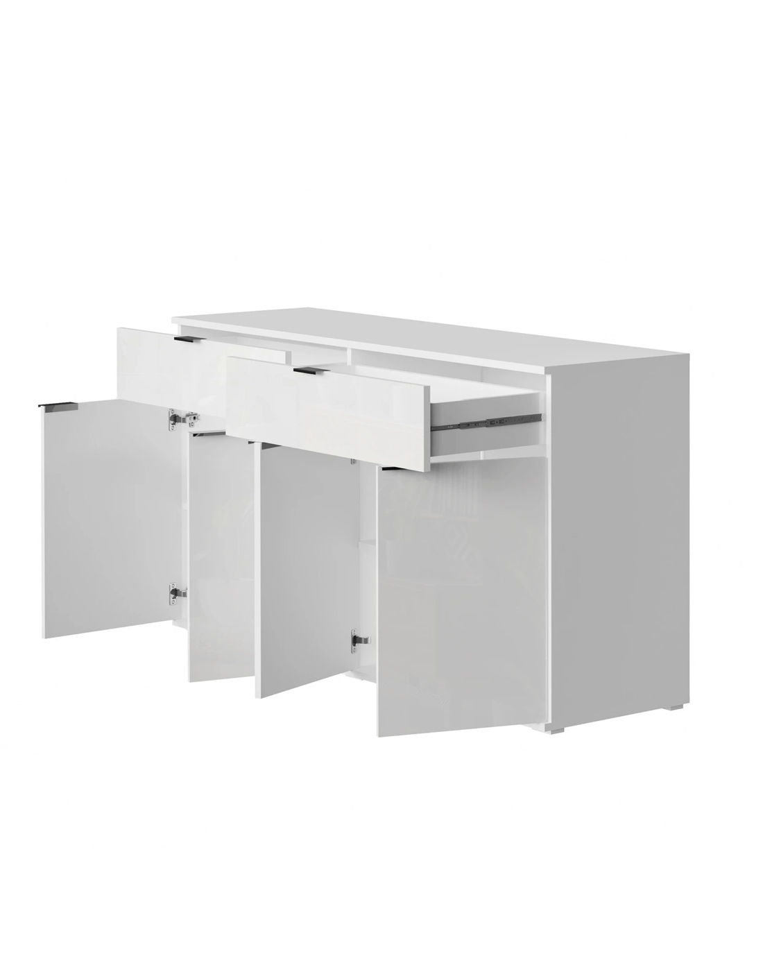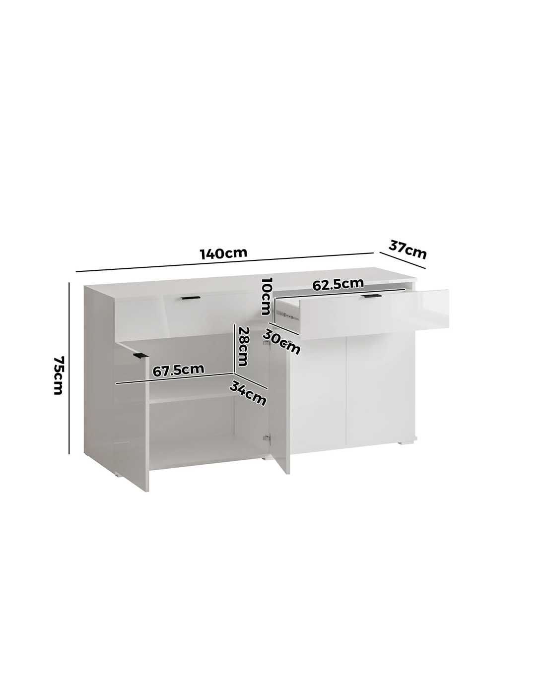 With a very practical and equally contemporary design, this Oikiture Sideboard features a clean profile in chic blanc that speaks volumes of its sophisticated presence in any discerning home setting. First impressions can designed to captivate and this sideboard certainly does that perfectly with its generous display and storage space. Comprising two large top drawers and a 4-door cabinet with tiered shelving, the sideboard presents cavernous storage and has more than ample real estate to store household essentials and then some more. The top is long and linear and makes for a great storytelling platform in terms of your favourite photographic displays and other collectibles that ignite your passion and interests.