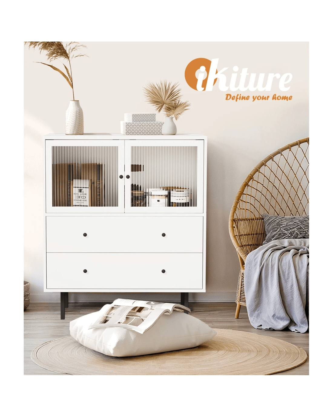 With a very practical and equally contemporary design, this Oikiture Sideboard features a sleek profile in chic blanc that speaks volumes of its sophisticated presence in any discerning home setting. Equipped with two well-blended storage solutions, the sideboard enables flexibility in storing a variety of items to suit your requirements.