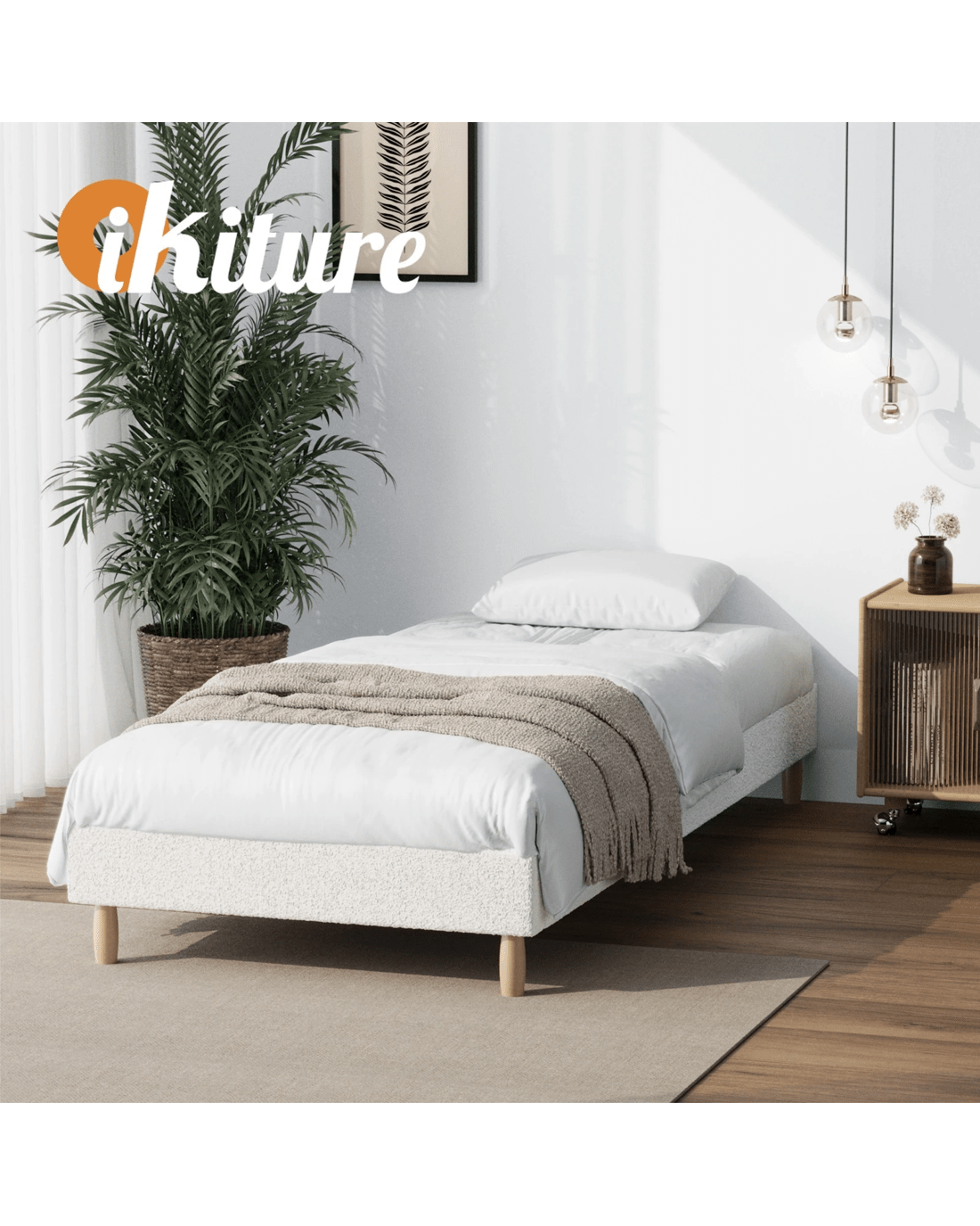 Sold by Kamprad's Oikos 1943Oikiture Single Bed Base Boucle Bed Frame - White