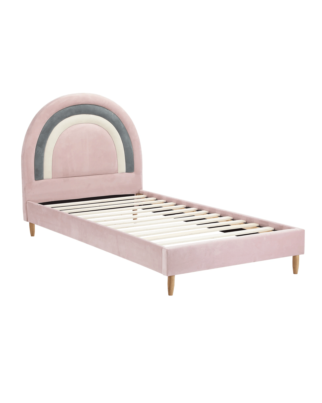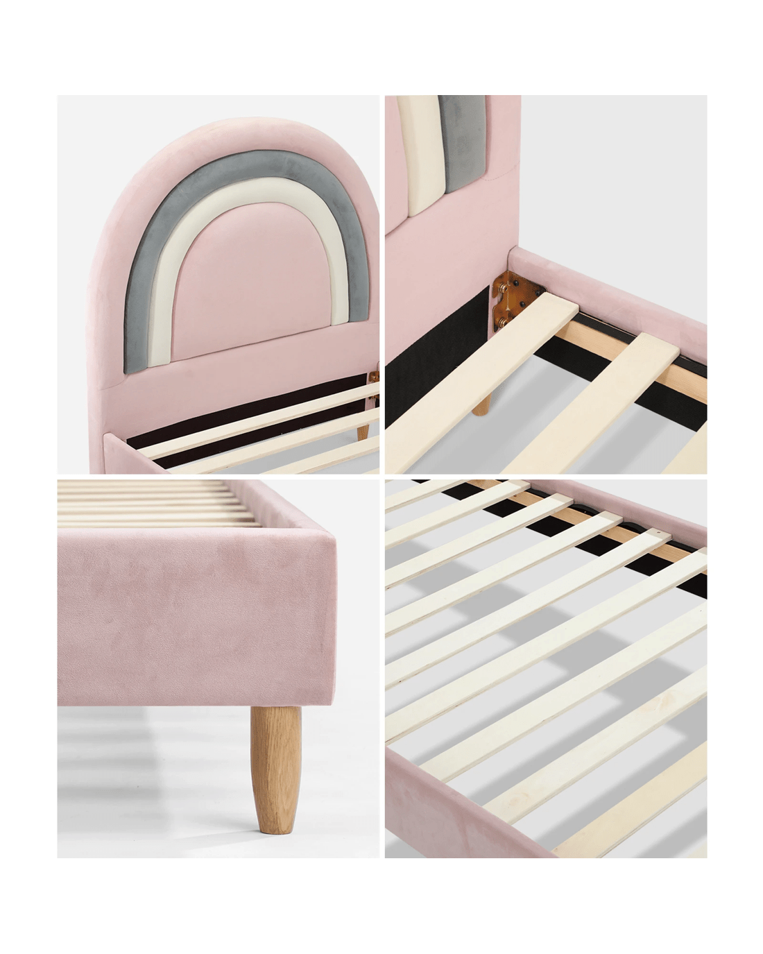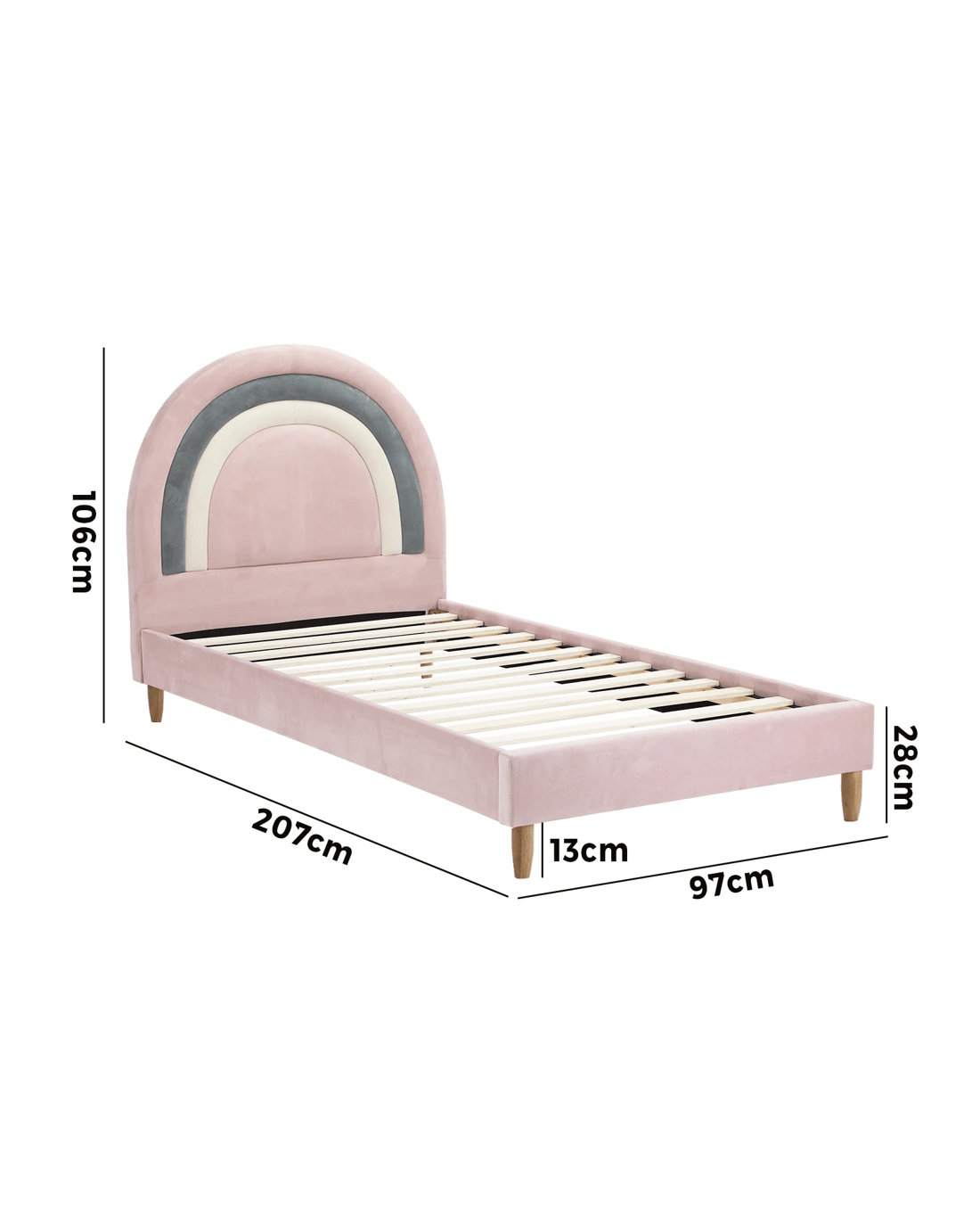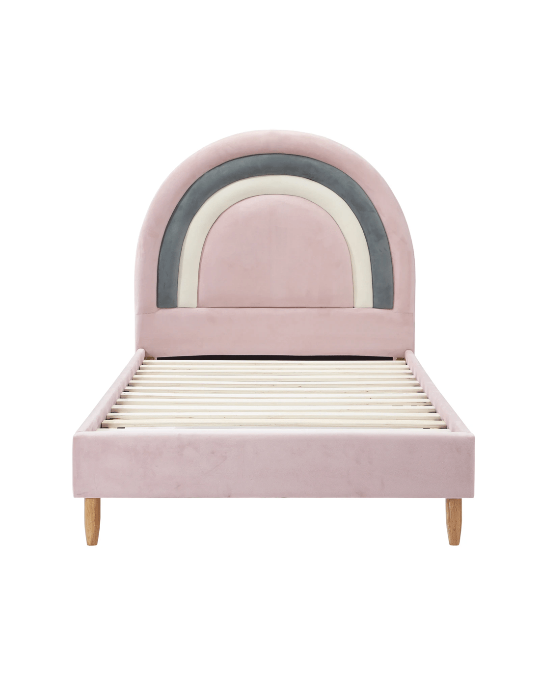 Oikiture Single Bed Frame Rainbow Kids Bed Base Velvet - Pink