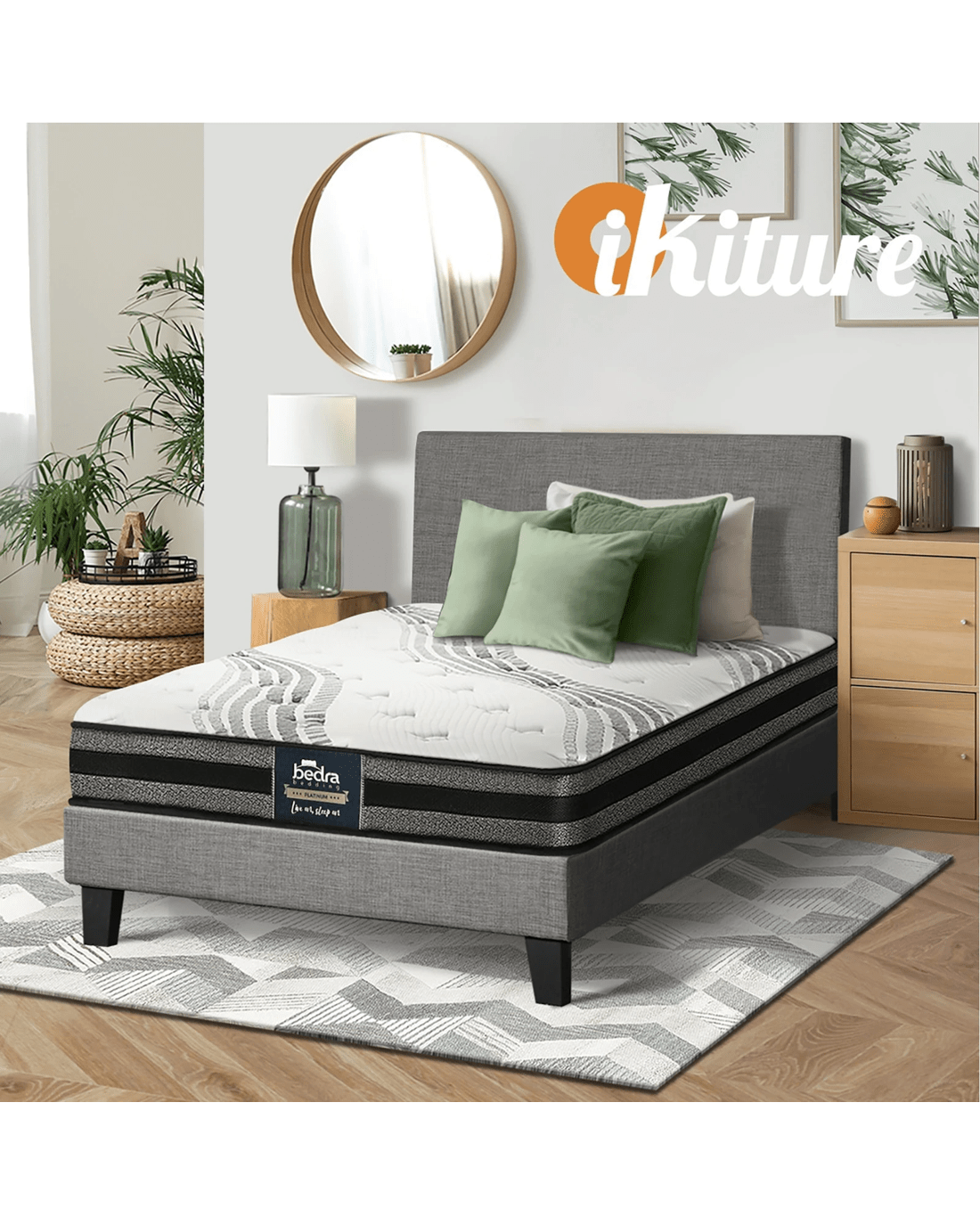 Best of all, the stylish bed frame also includes a comfortable Bedra Bedding Bonnell Spring mattress to complete the set. This high-quality spring mattress comprises a 7-layer construction with all the benefits of a Bonnell Spring system that provides motion isolation, anti-disturbance and full body support. Naturally, the highly breathable mattress complies with all required standards and certification and is hygienically safe from top to bottom and everything else in between. The Oikiture Fabric Bed Frame. Made it yours to enjoy.