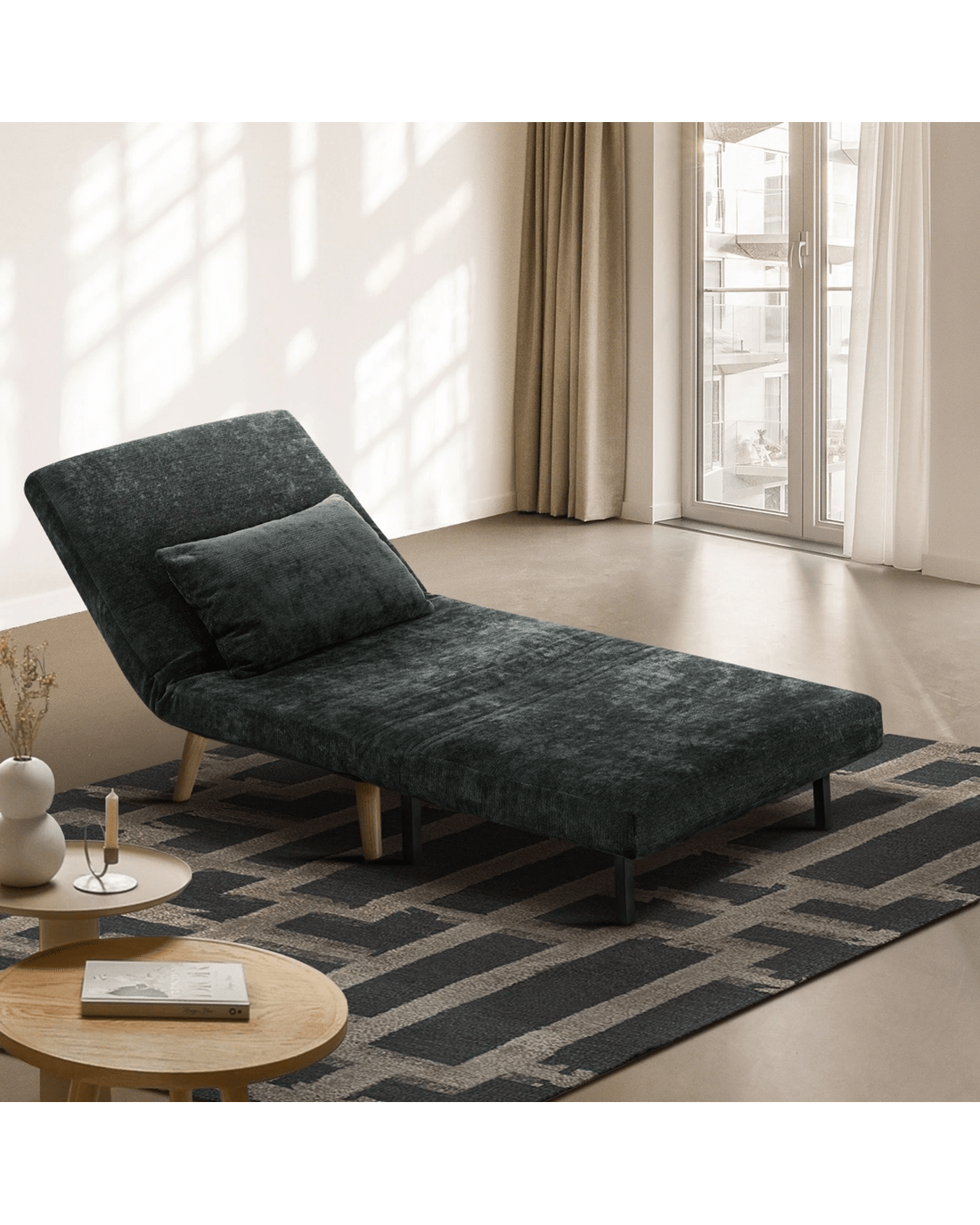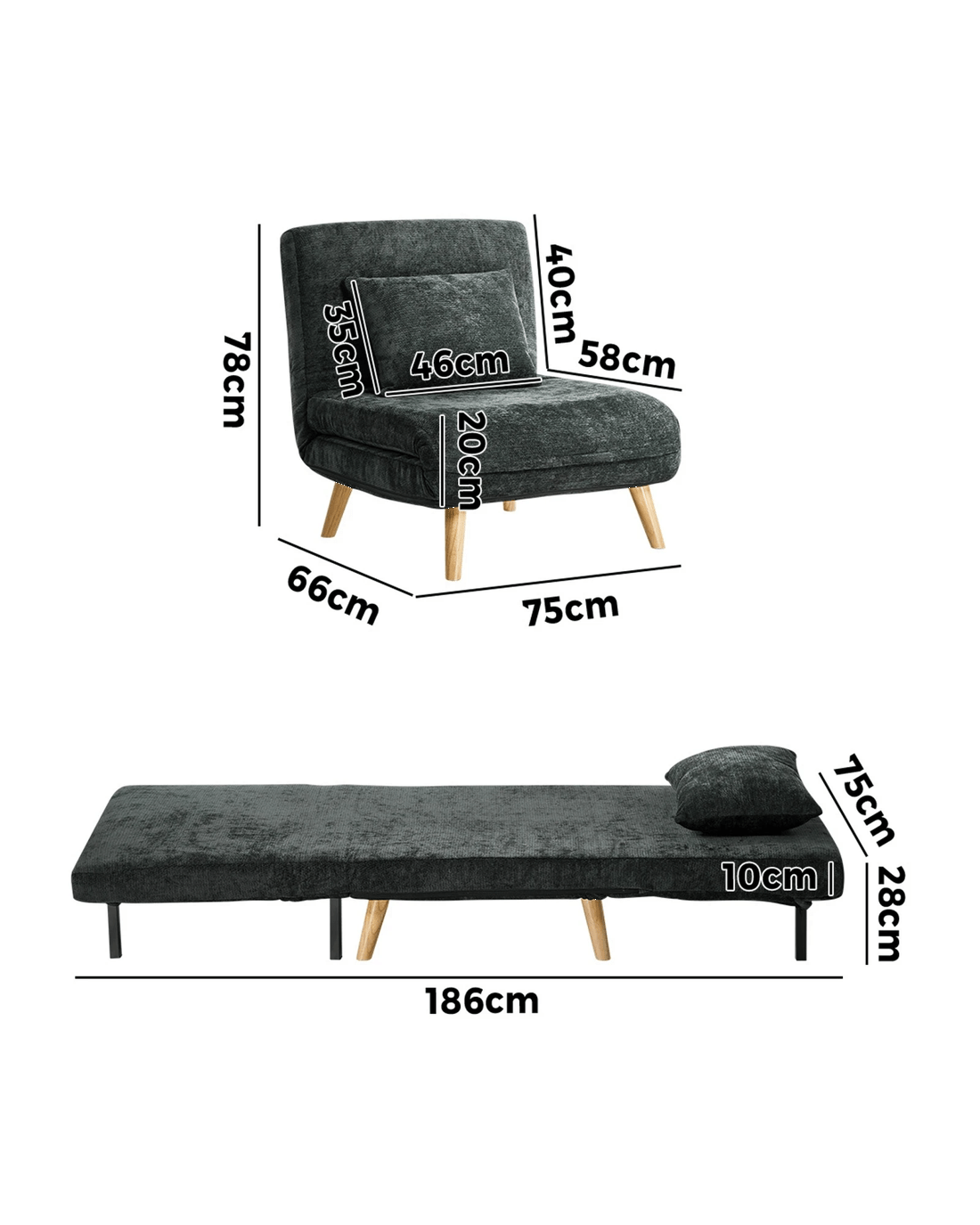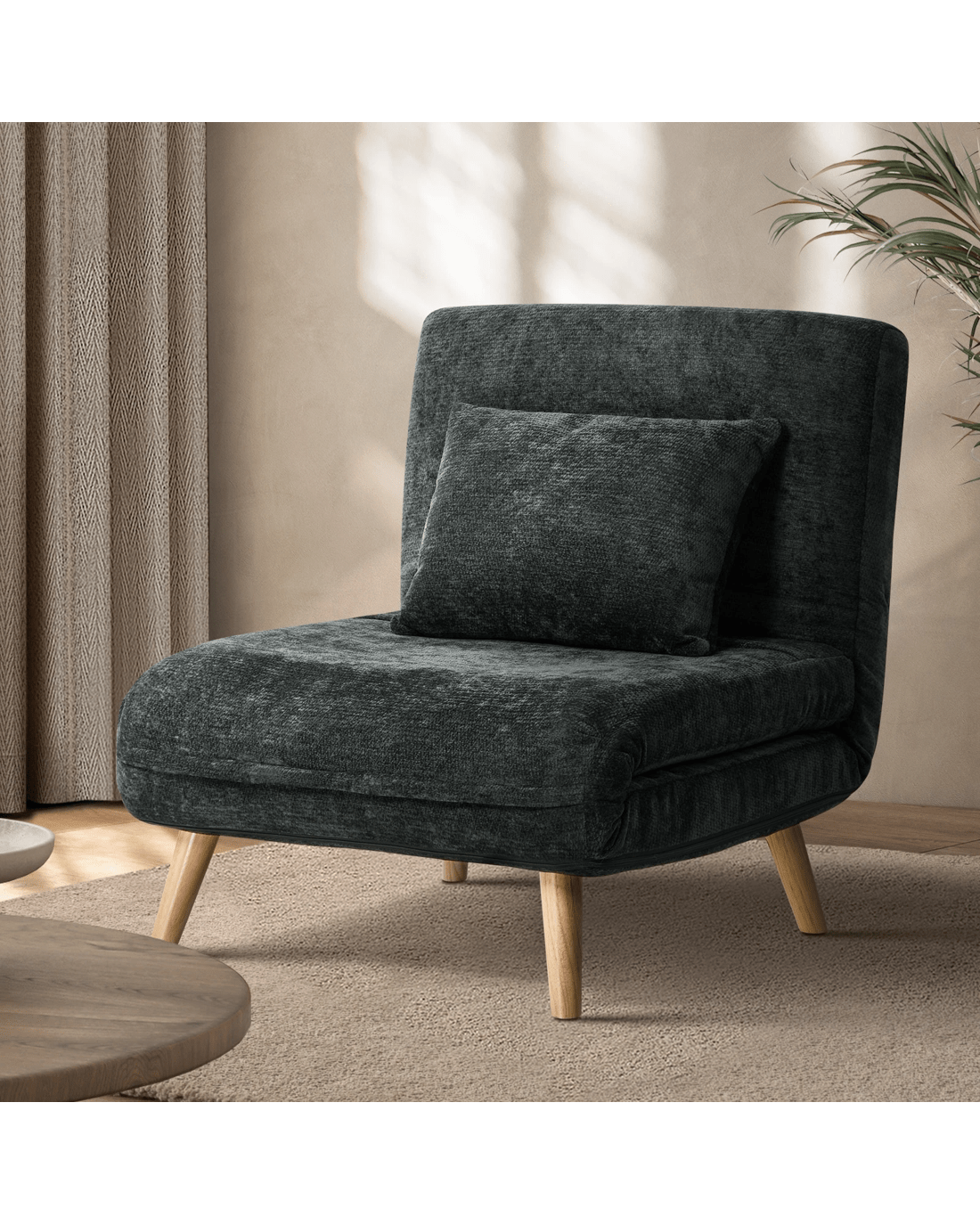 Sold by Kamprad's Oikos 1943Oikiture Single Sofa Bed Lounge Recliner Chenille - Charcoal