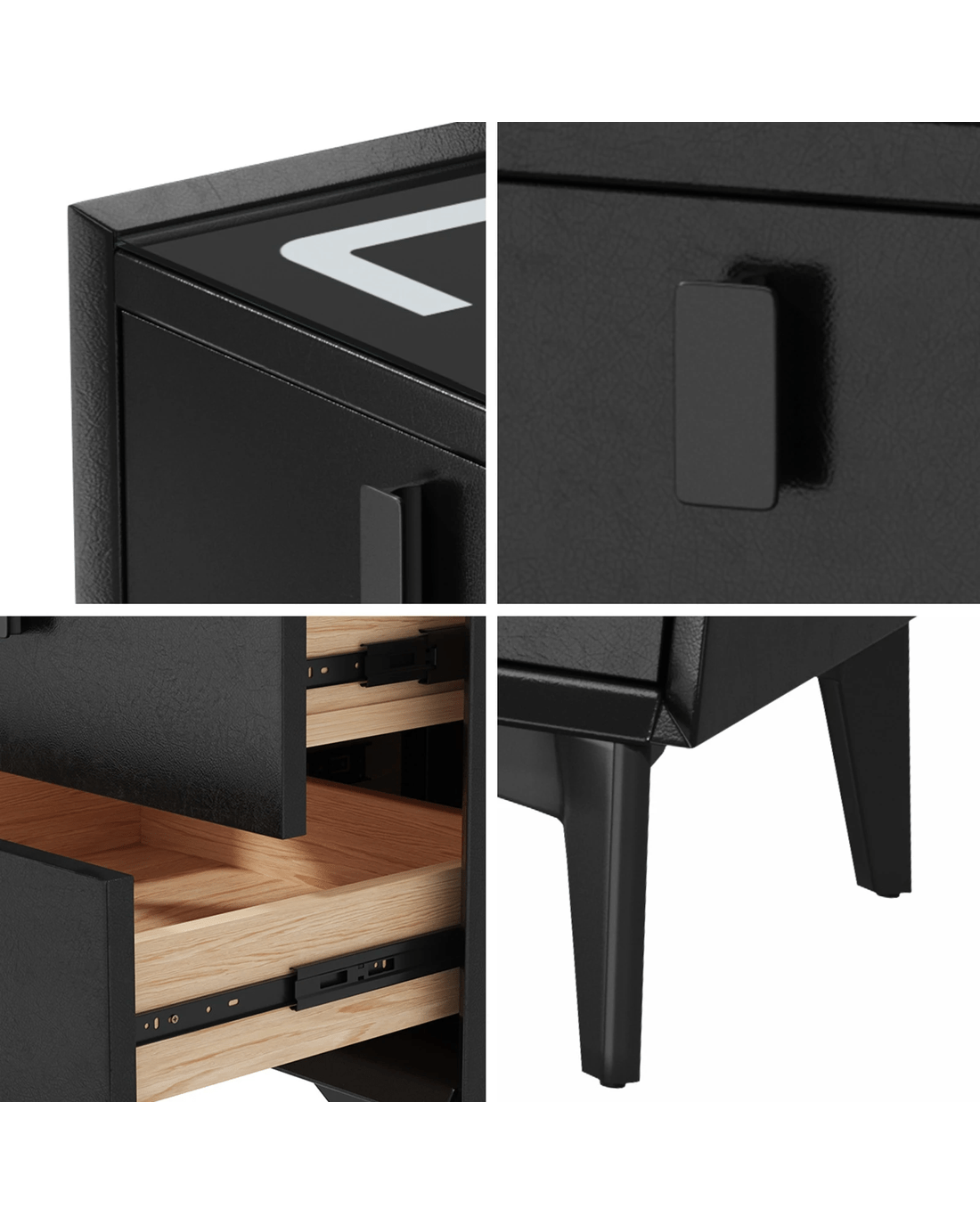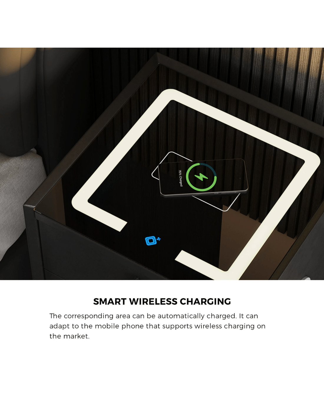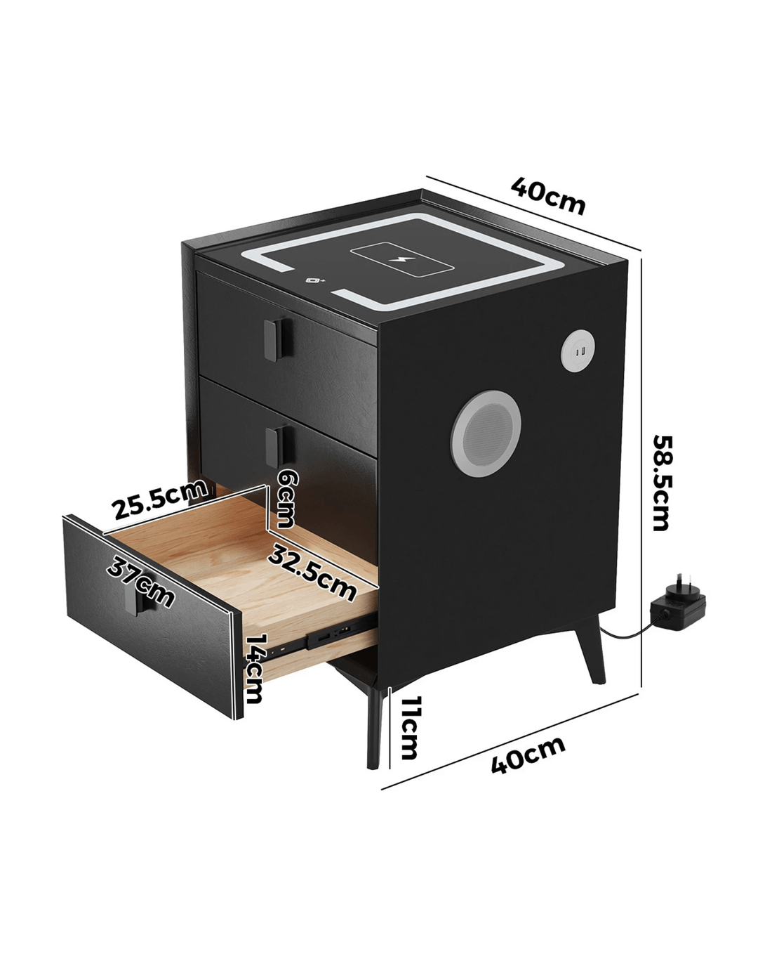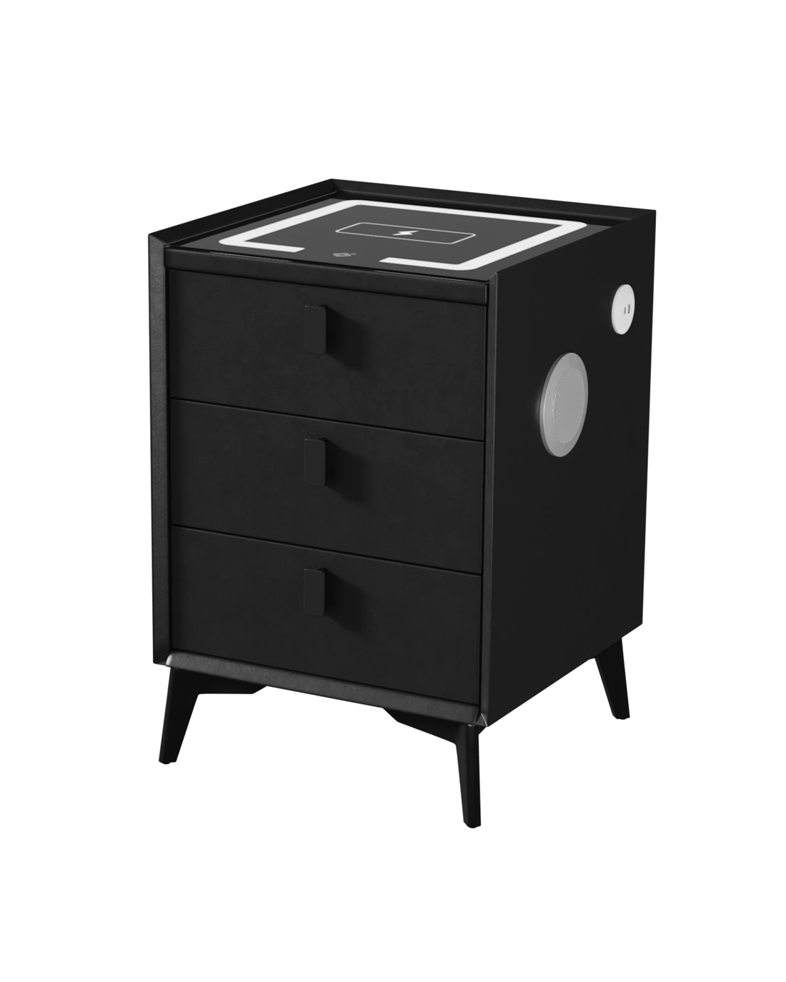 Sold by Kamprad's Oikos 1943Oikiture Smart Bedside Table Wireless Charging Led Lights 3 Drawers - Black