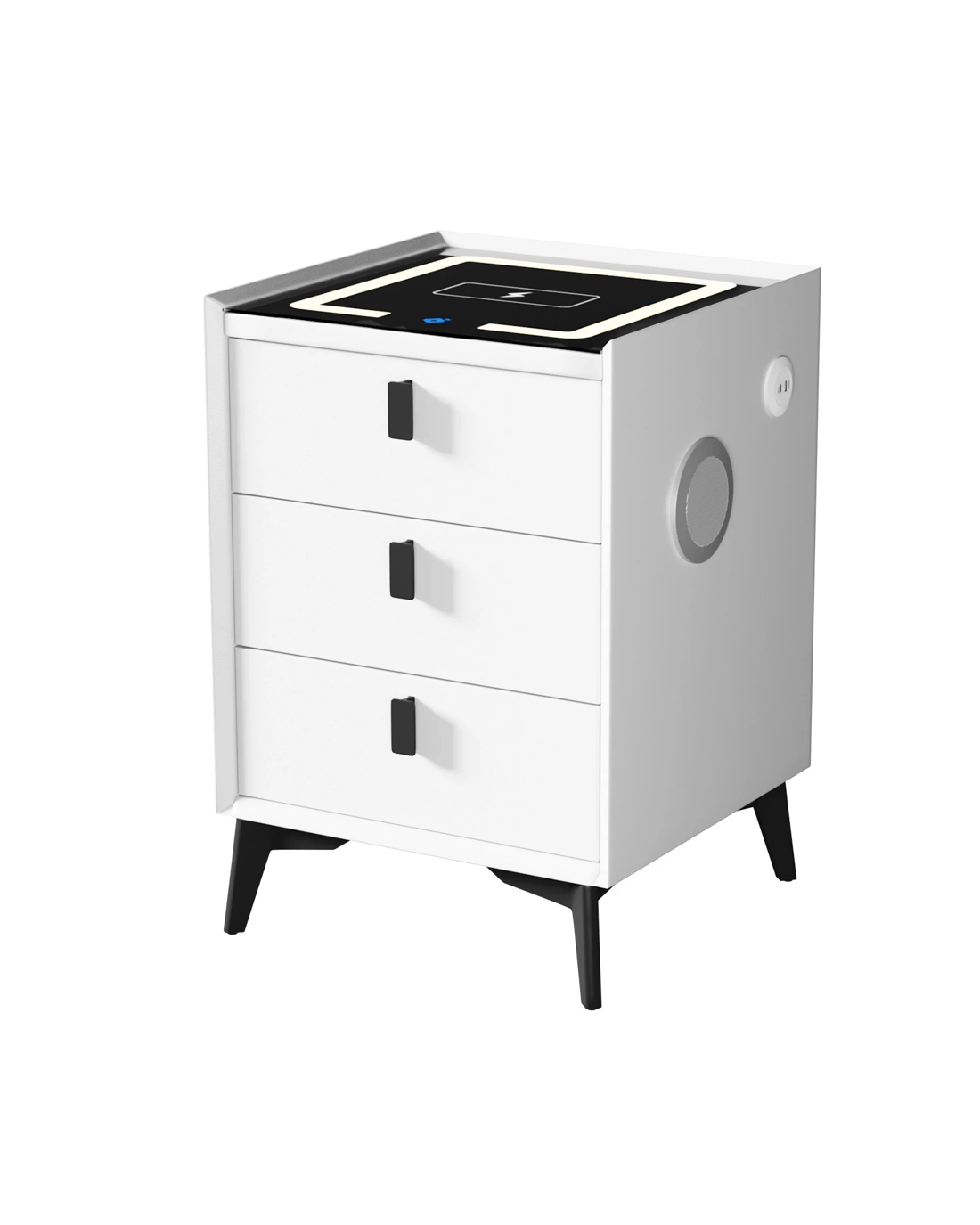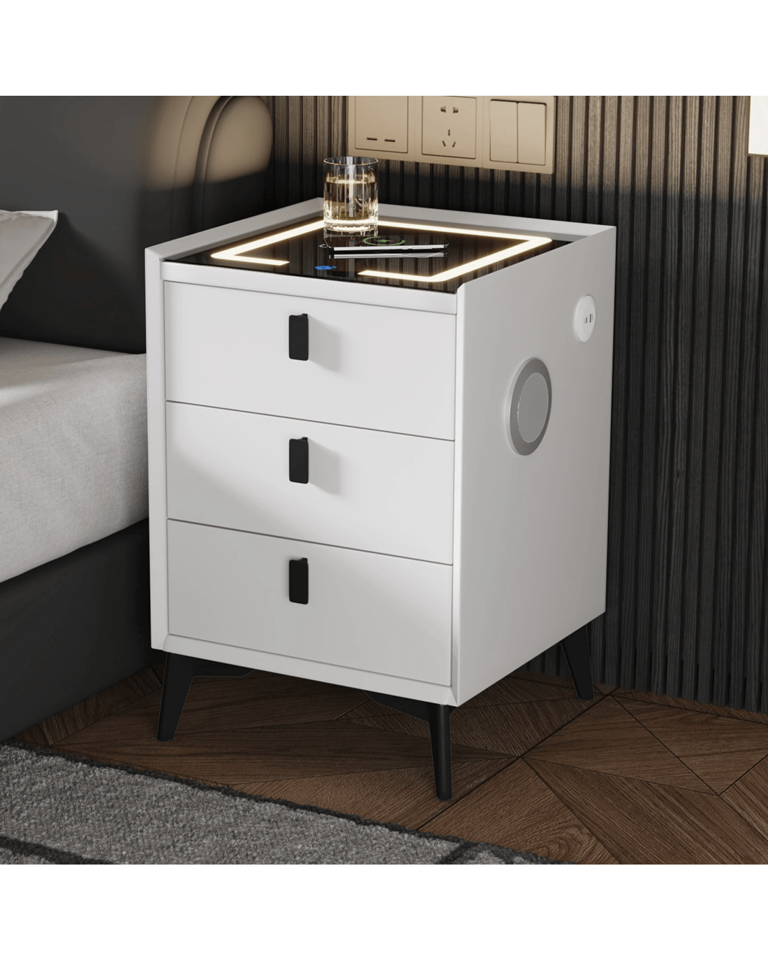 Sold by Kamprad's Oikos 1943Oikiture Smart Bedside Table Wireless Charging Led Lights 3 Drawers - White