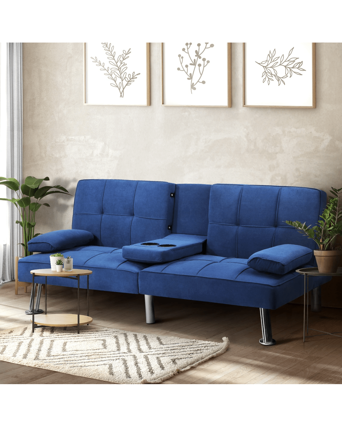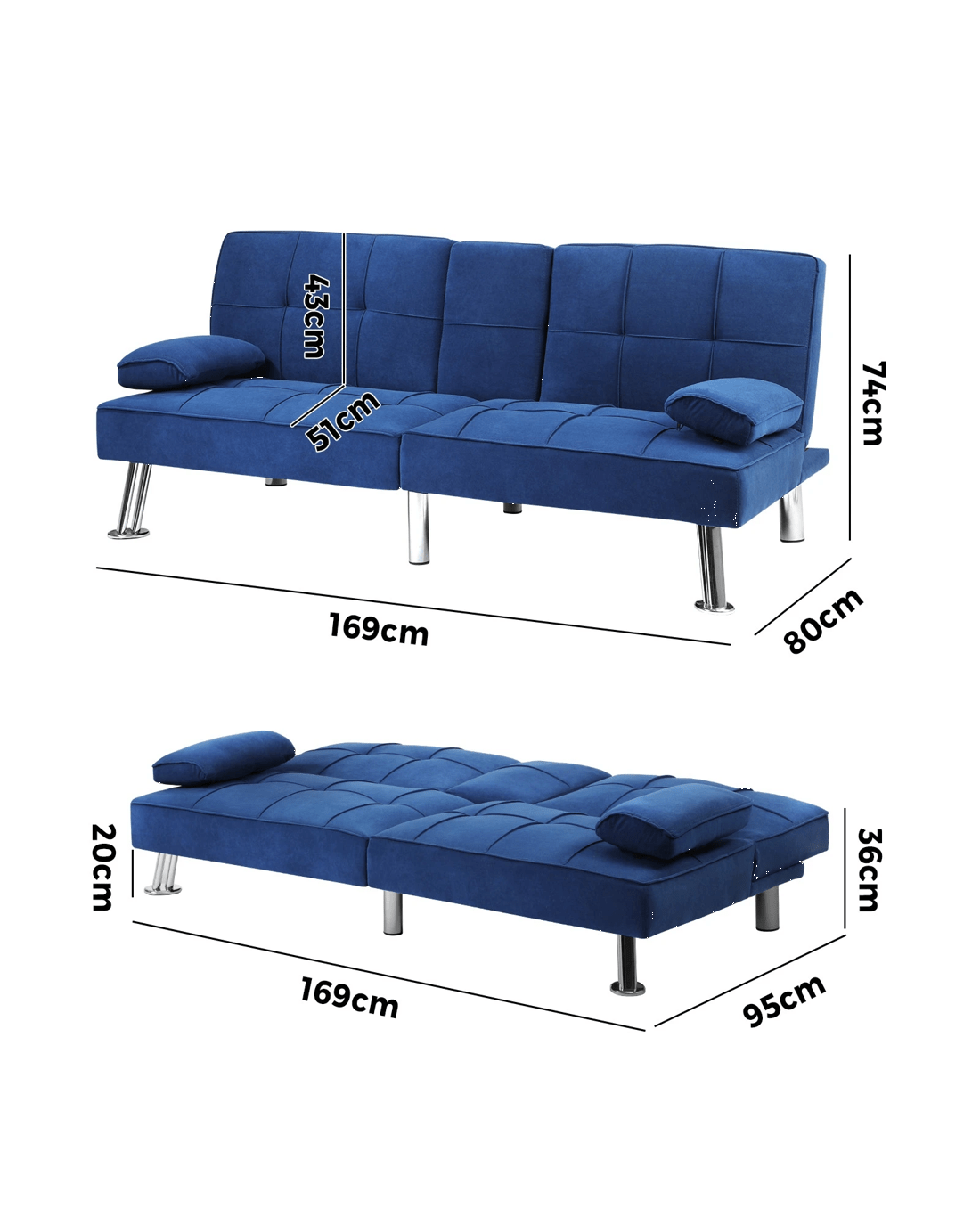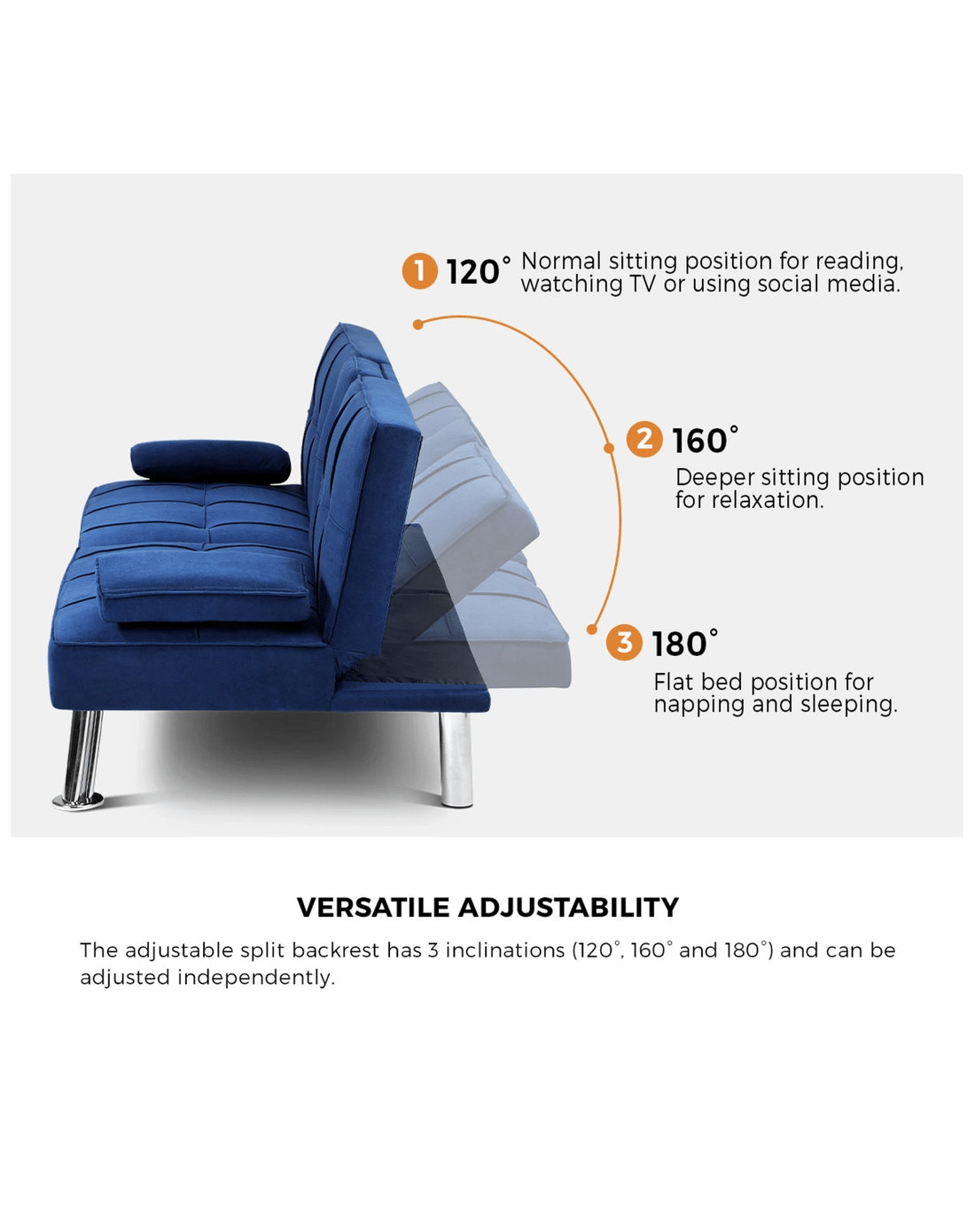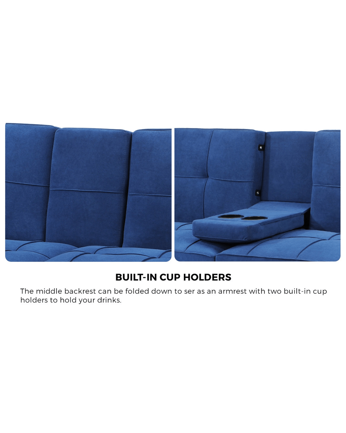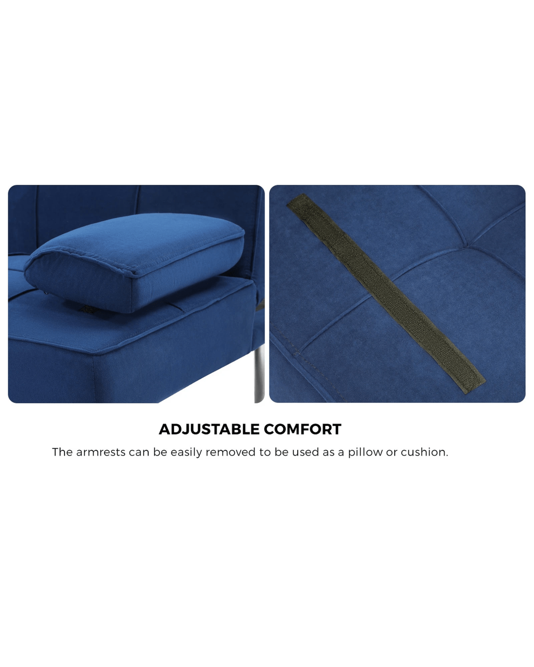 Equipped with three adjustable positions for the backrest, you can turn your sofa bed into the best seat in the house for watching TV, reading, or keeping up with your social media, or nestle it down for relaxation, napping or sleeping. Better still, the backrest can be adjusted individually to create a spilt backrest that lets you enjoy sitting and sleeping separately in one sofa. Plus, the middle backrest can also be folded down to serve as an armrest. Together with its built-in cup holders, the sofa is an all-in-one leisure centre. Need a cushion or pillow? Just detach the armrests (held down by Velcro) for instant comfort.