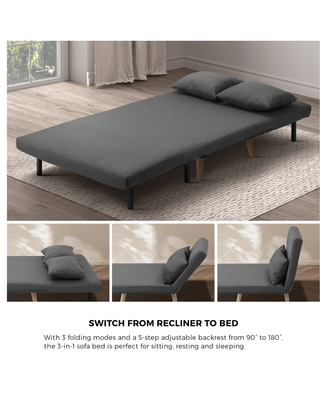Nothing beats having a great sofa to chill, relax or indulge in your favourite couch activity. And it gets even better when that same sofa can also double or triple up as a fully flat bed for daytime naps or nighttime slumbers. Cue in the Oikiture Lounge Sofa Bed. With its wide and generous seating proportions, the sofa bed will always feel and seen like a lot more. Upholstered in a cosy plush polyester fabric, the elegant lounge sofa bed is simply luxurious in form and function. You'll be wondering how a lounge sofa bed this classy and rich can be had for such a reasonable price. Well, wonder (or wander) no more and gravitate to this one impeccable piece of furniture.