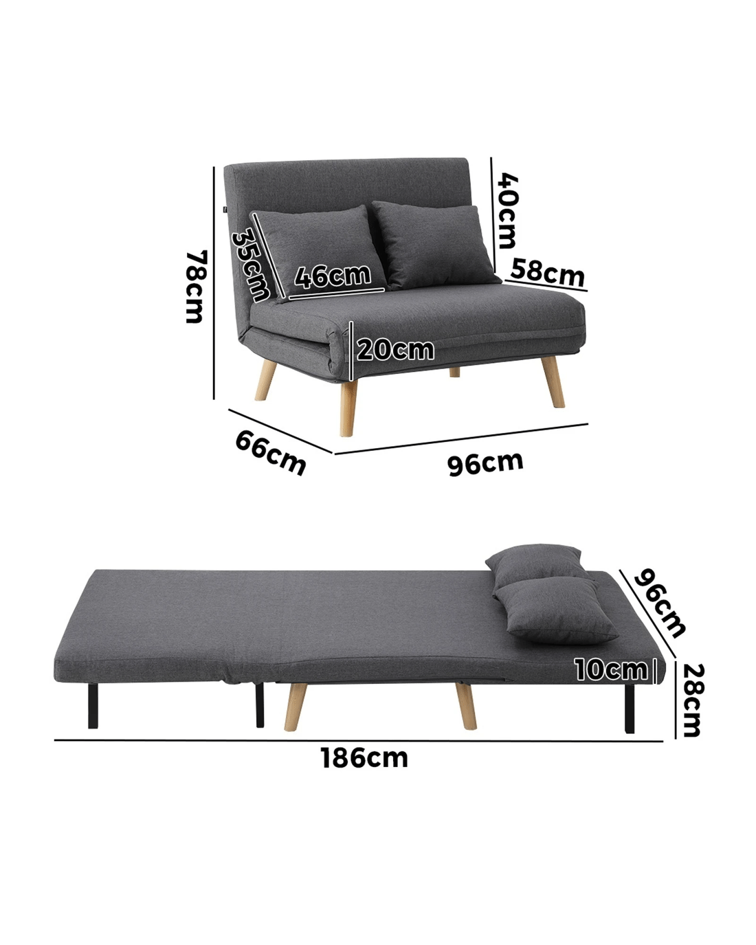 Oikiture Sofa Bed Lounge Chair Linen Fabric Recliner Wood Leg 2 Seater - Grey