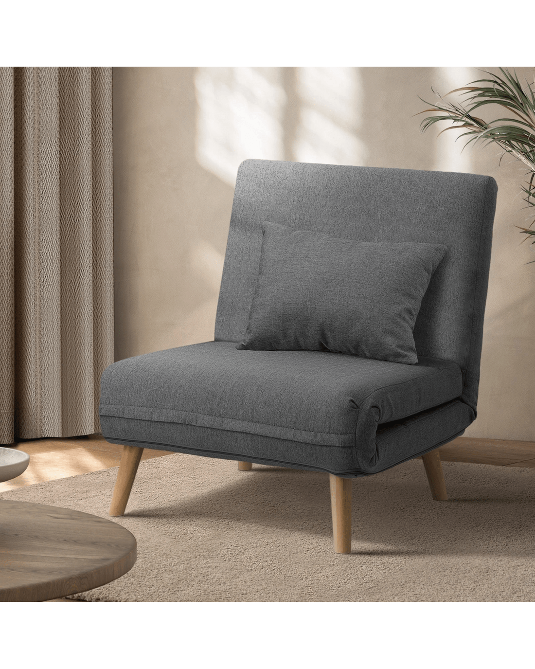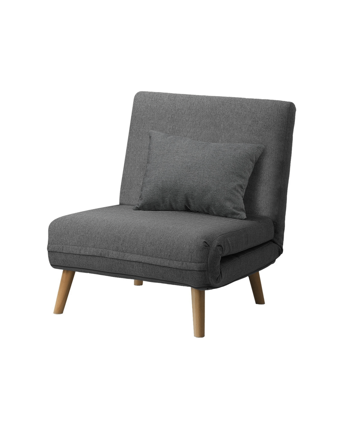 Oikiture Sofa Bed Lounge Chair Linen Fabric Recliner Wood Leg Single Seat - Grey