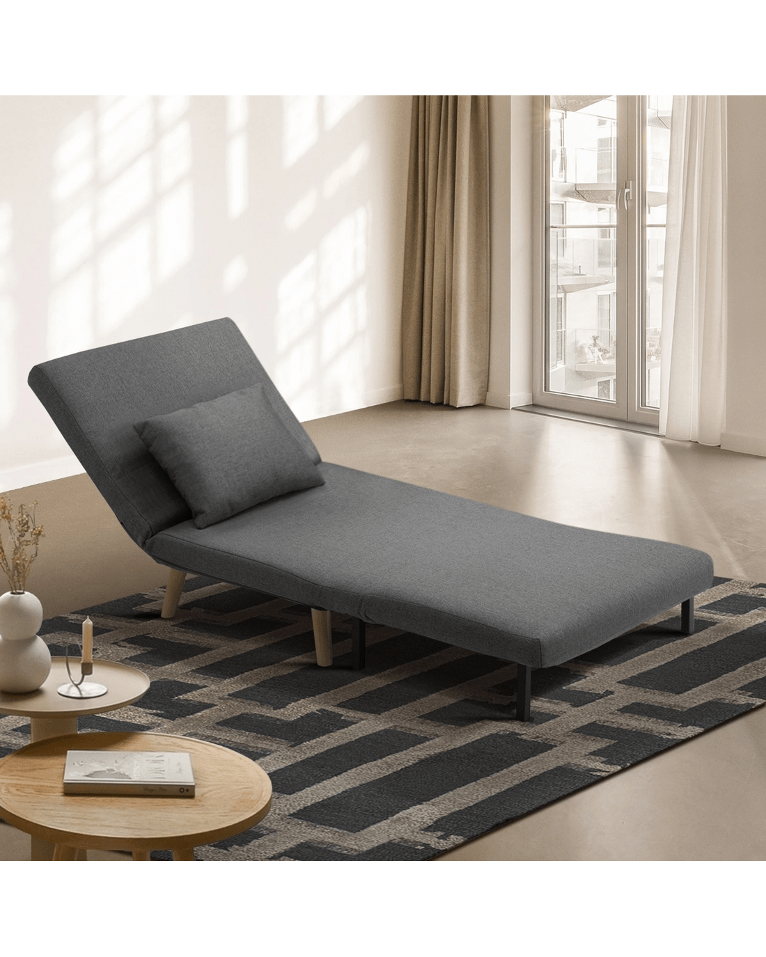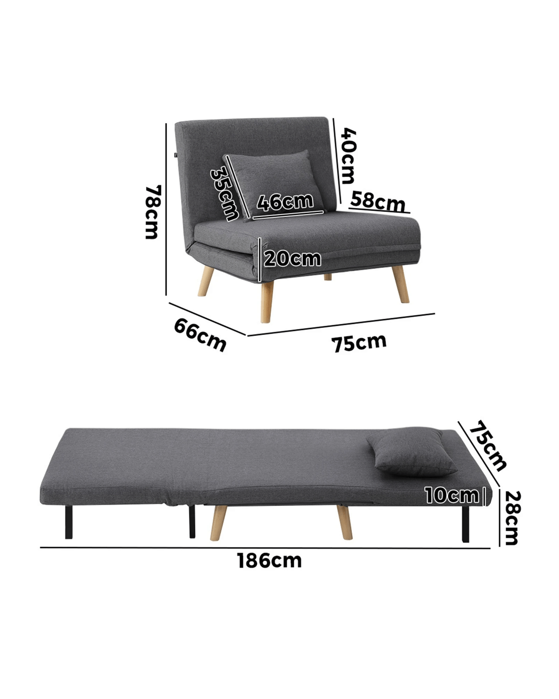 Beyond aesthetics, the versatile lounge sofa bed is built to exacting standards with a solid metal framework, thick padding and solid rubber wood legs to add strength, stability and durability to its streamlined structure. The workmanship is meticulous and the seamless stitching is first class with near-flawless finishing and close attention to details. Simply amazing and pleasing to the senses from every angle. A single seater one-pillow model, the Oikiture Lounge Sofa Bed is definitely a keeper in your home.