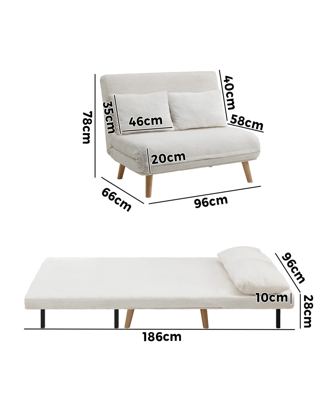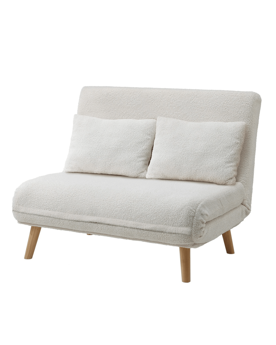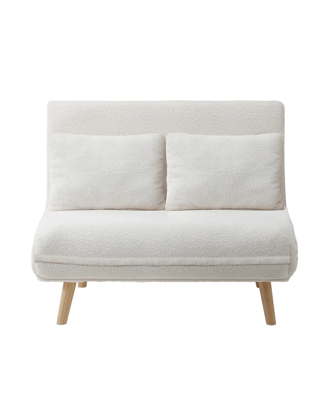 Oikiture Sofa Bed Lounge Chair Sherpa Fabric Recliner Wood Leg 2 Seater - White