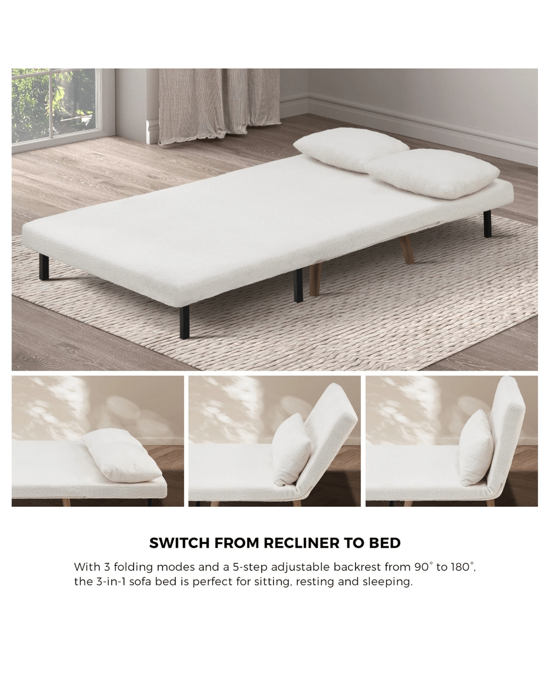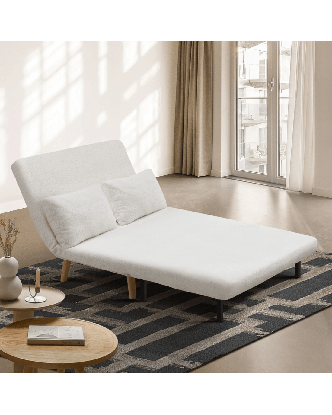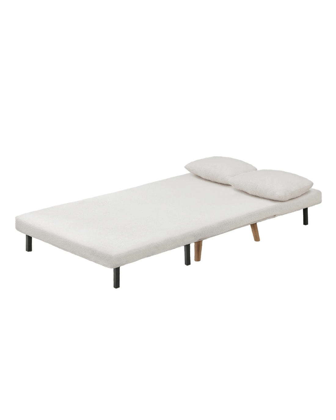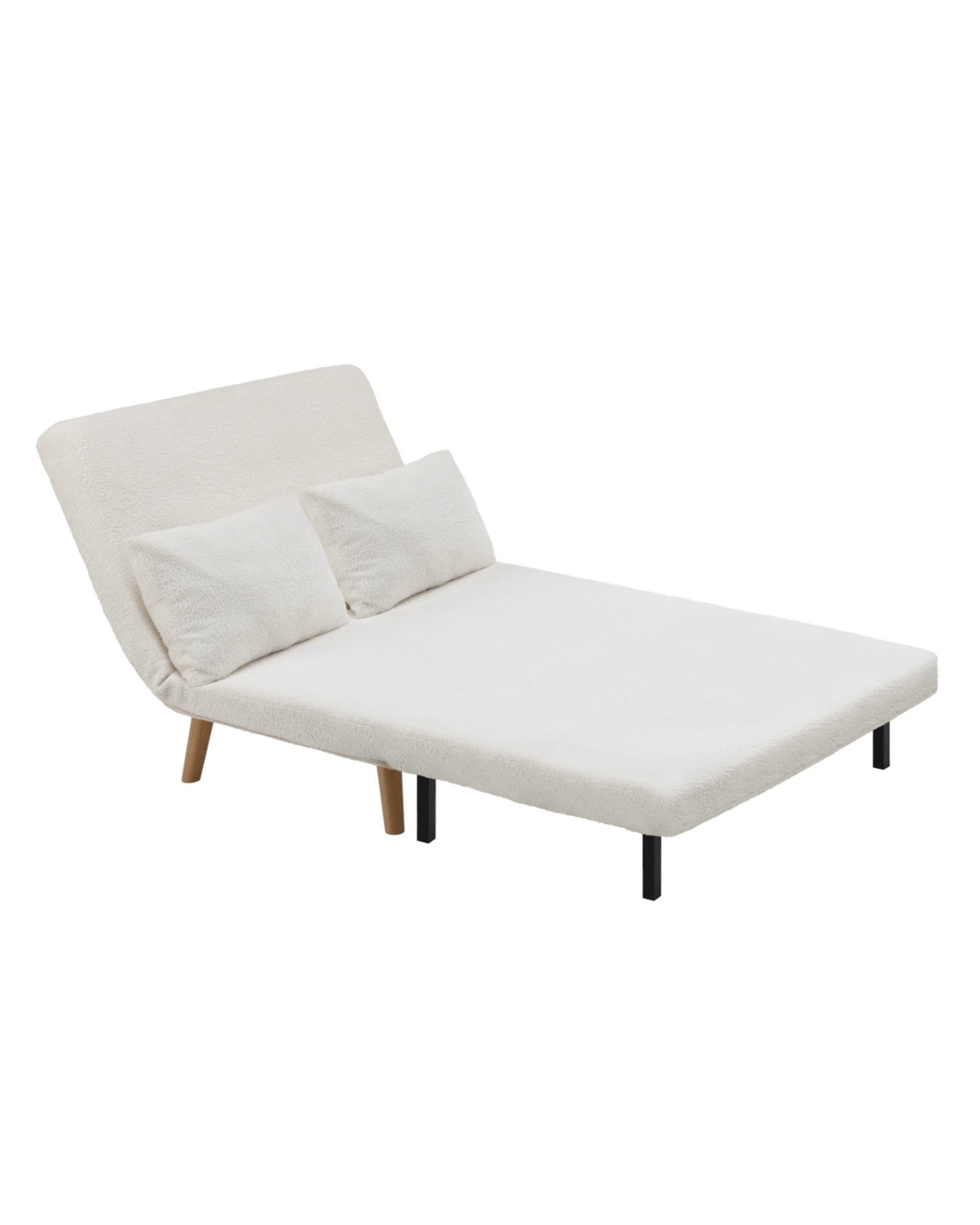 Oikiture Sofa Bed Lounge Chair Sherpa Fabric Recliner Wood Leg 2 Seater - White