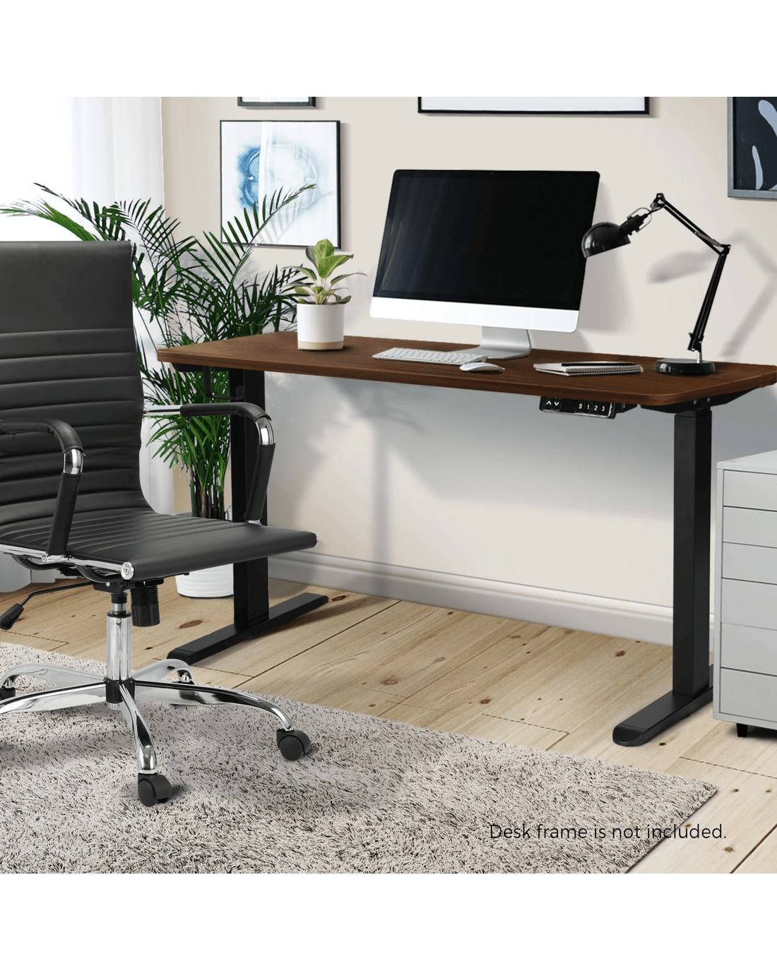 Oikiture Standing Desk Top Adjustable Electric Desk Board Computer Table - Brown