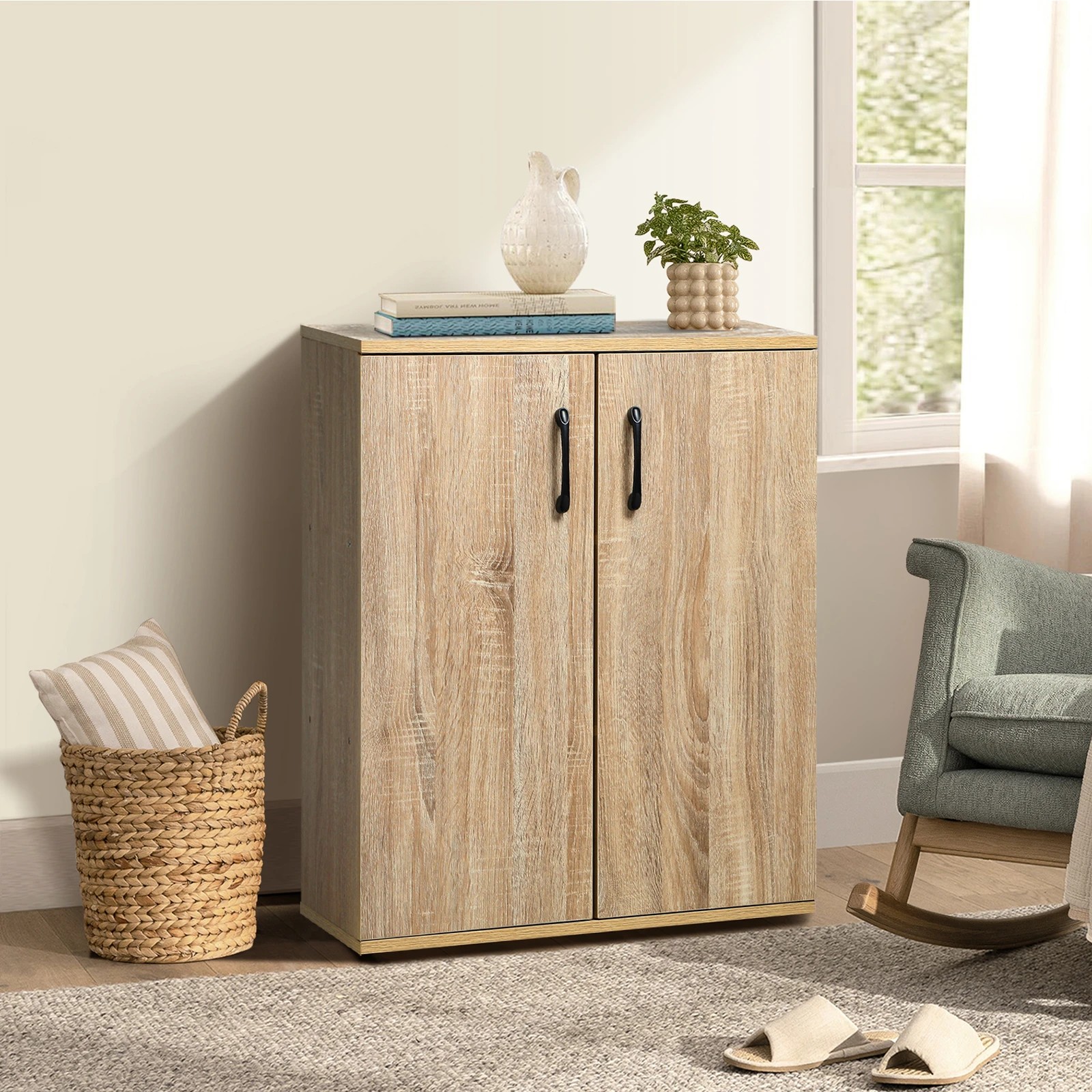Oikiture Storage Cabinet Sideboard Freestanding Cupboard Organiser - Natural
