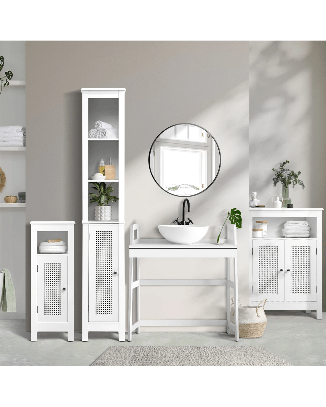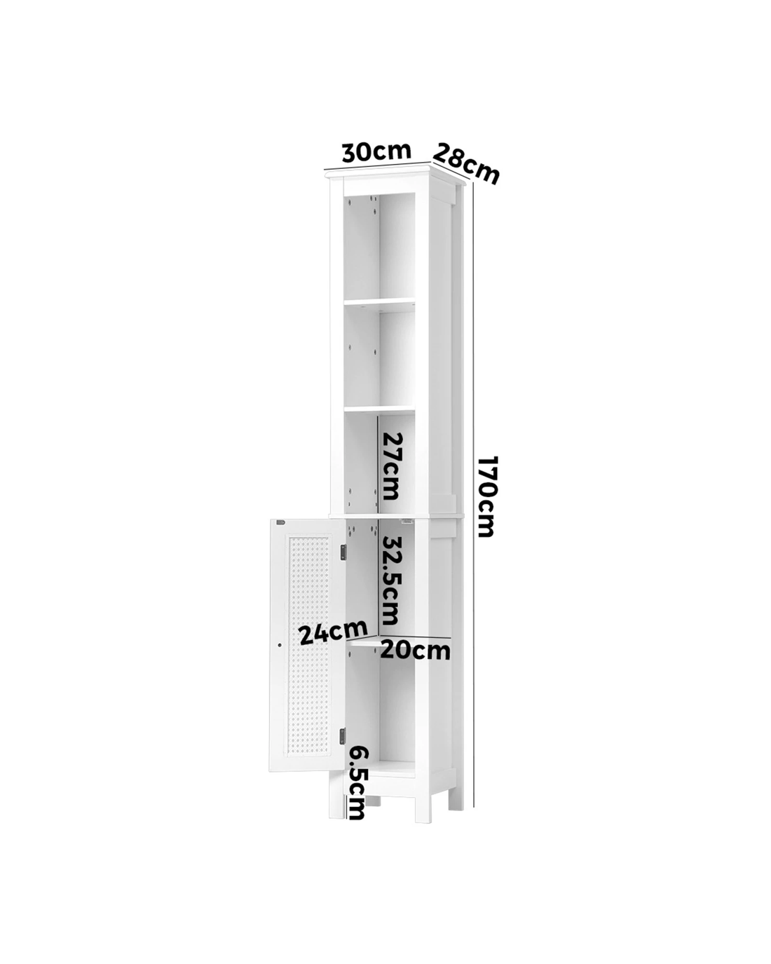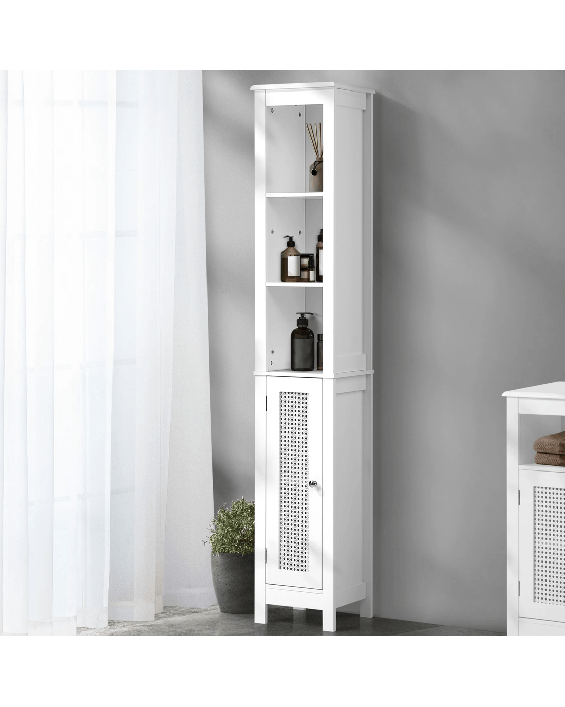 Sold by Kamprad's Oikos 1943Oikiture Storage Cabinet Tall Slim Cupboard Laundry Rattan Door - White