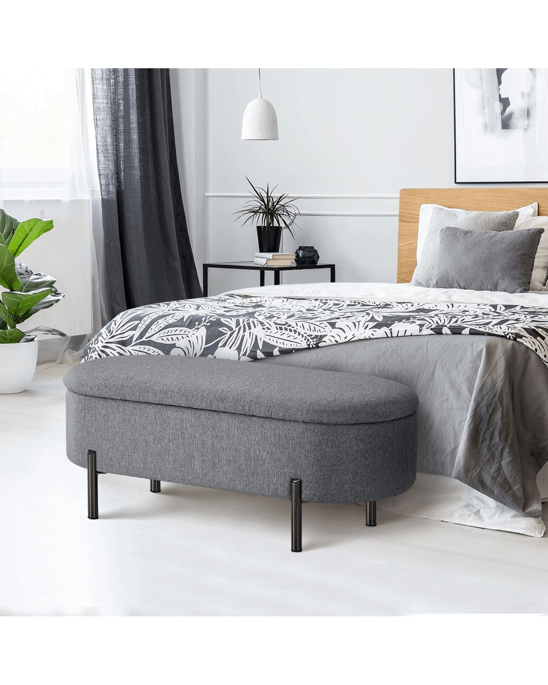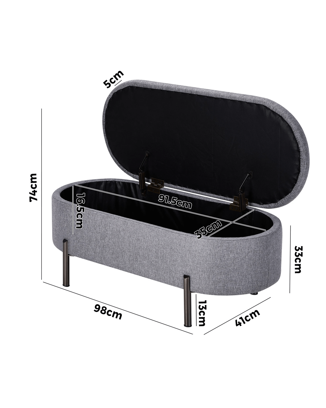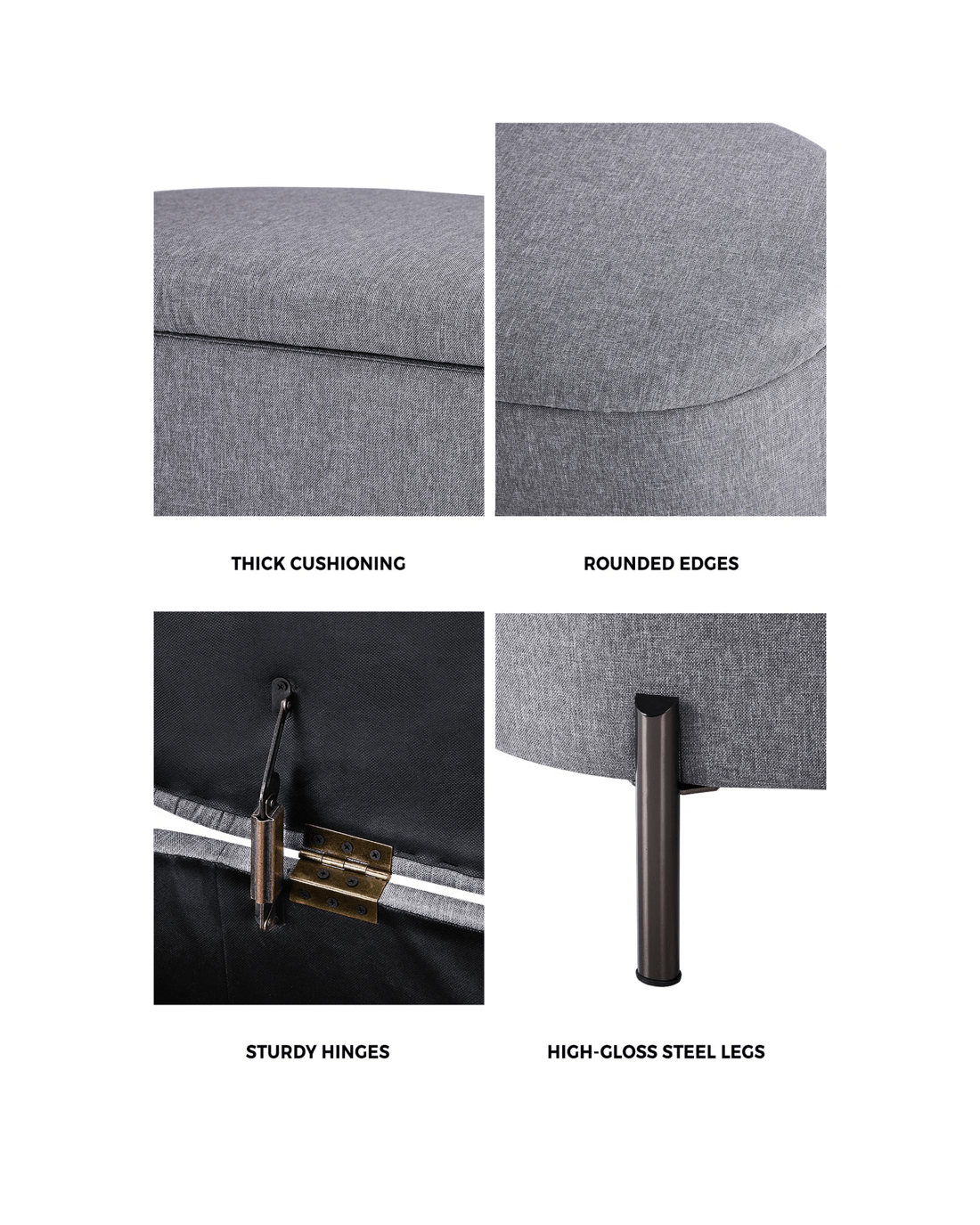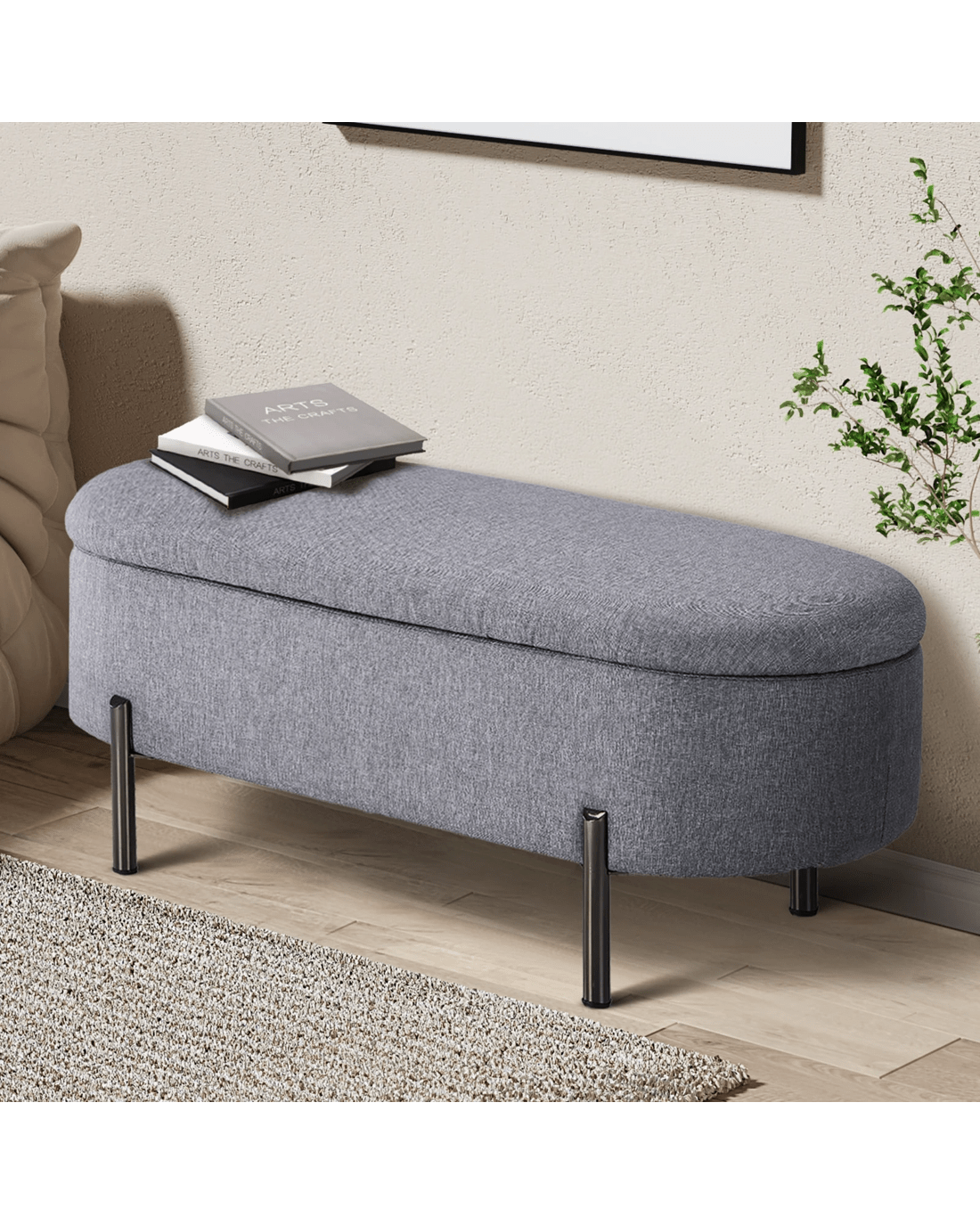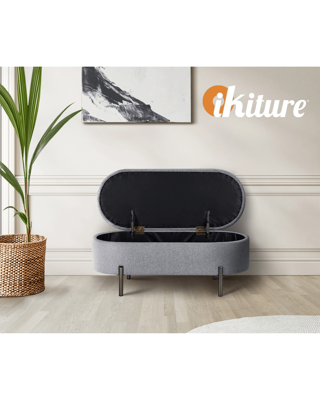 Sold by Kamprad's Oikos 1943Oikiture Storage Ottoman Bench Oval Footstool Blanket Box Chest Toy Linen - Grey