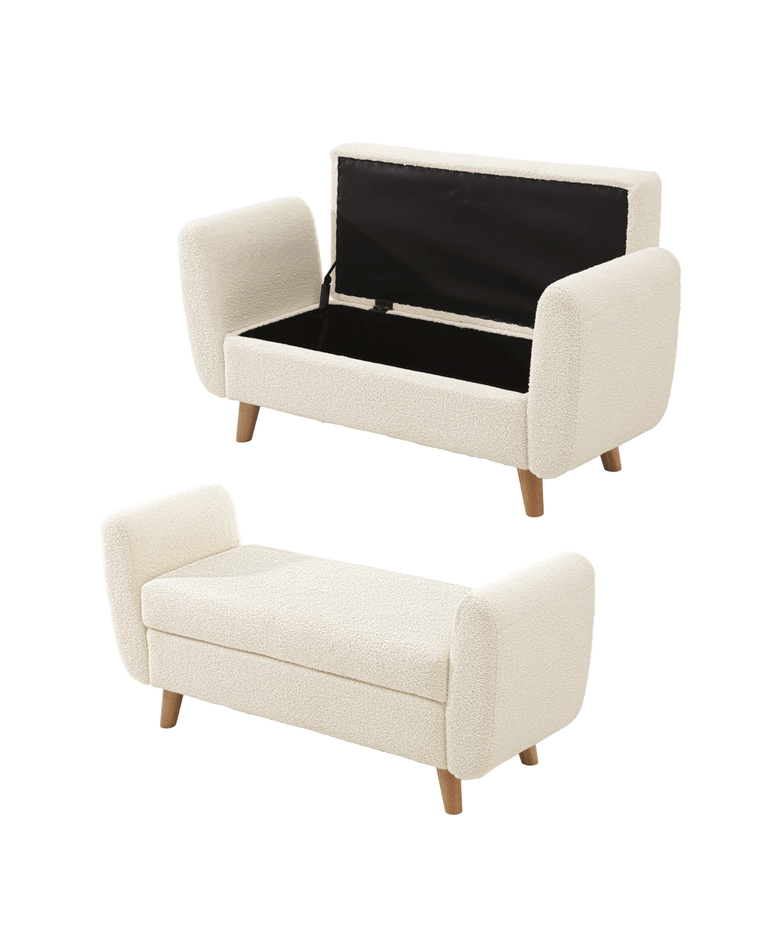 Sold by Kamprad's Oikos 1943Oikiture Storage Ottoman Blanket Box Arm Foot Stool Couch Large Sherpa - White