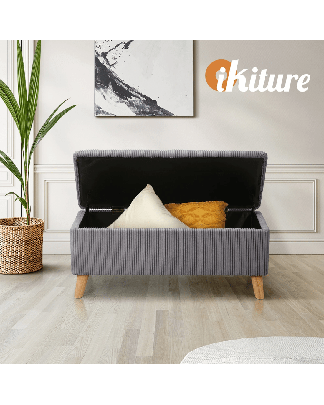 Elevate your home with cozy comfort and clever storage-Introducing Polyester Ottoman with Storage by Oikiture!