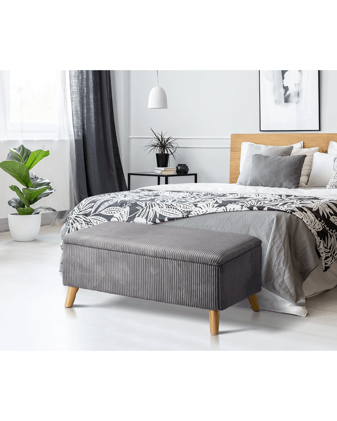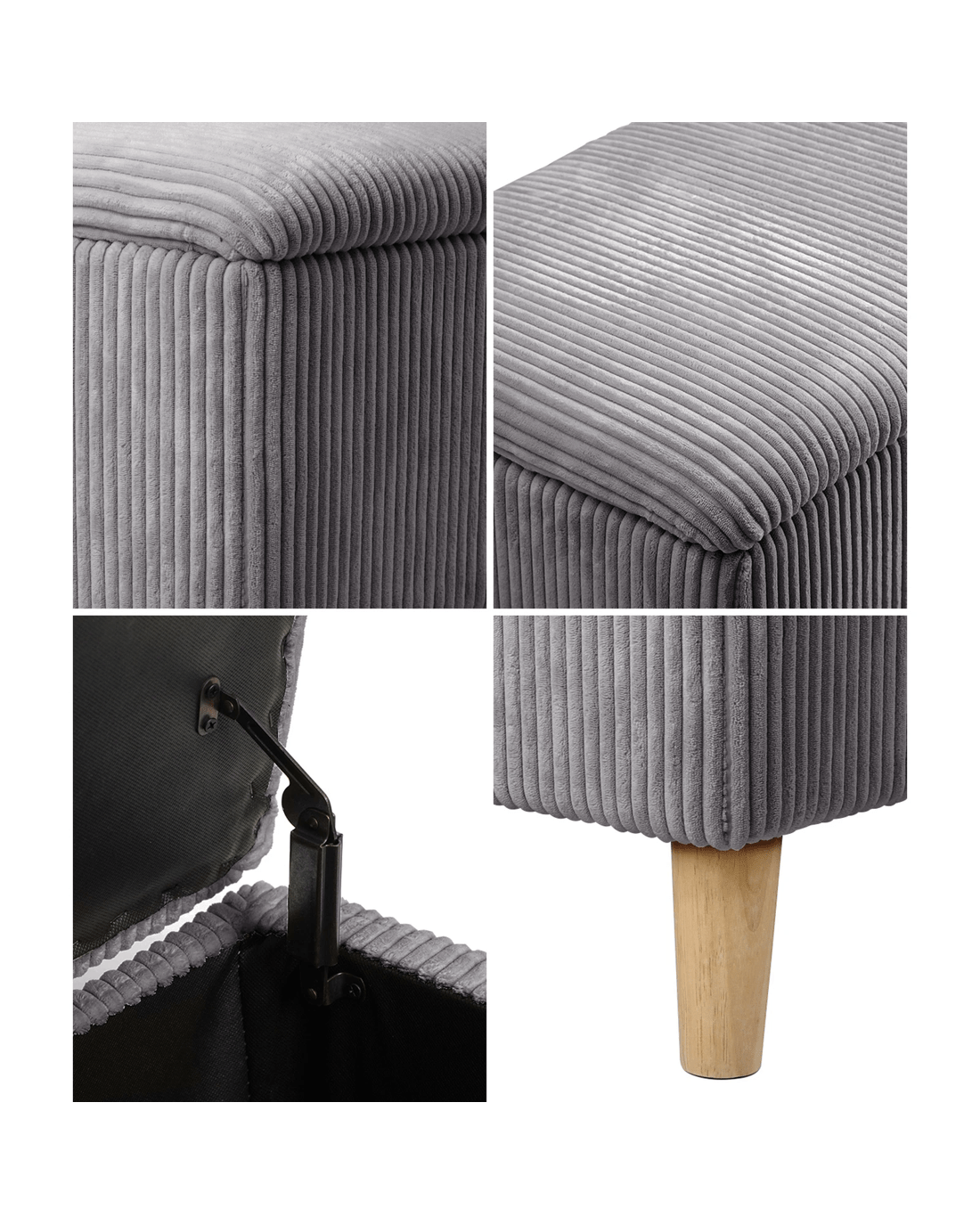 Crafted from high-quality materials, our ottoman is built to last. Its sturdy frame and reliable hinges ensure it can handle daily use while maintaining its elegant appearance. This ottoman seamlessly fits into various room decors, whether in the living room, bedroom, or den. Its neutral color and classic design make it a timeless addition to any space.