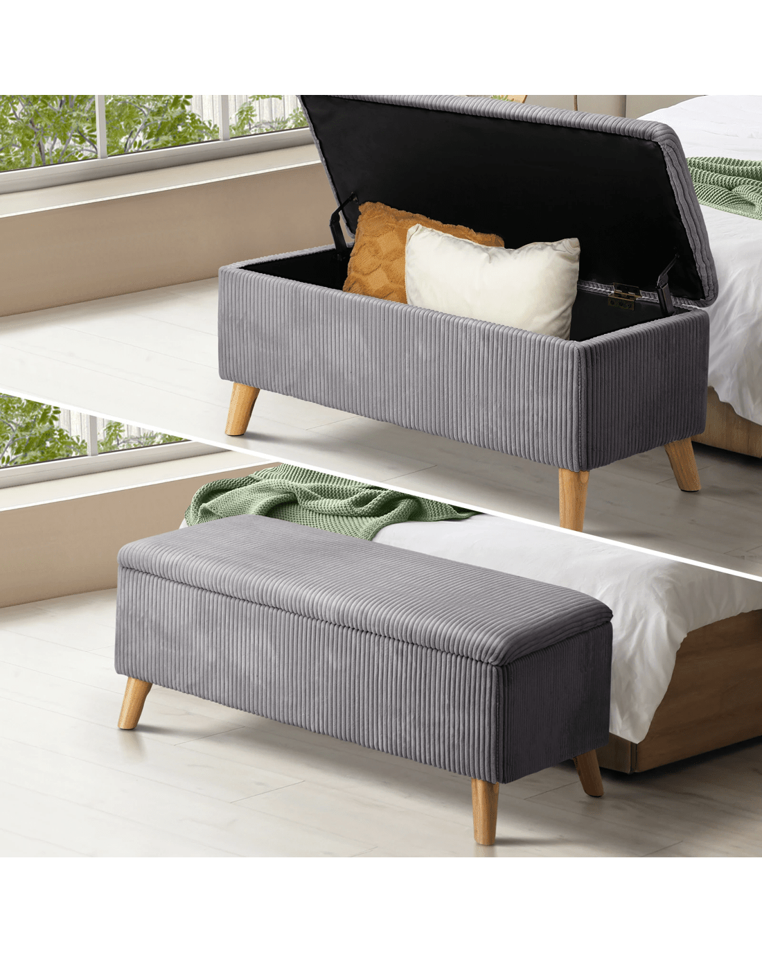 Can be used as bench seat, footstool, and storage