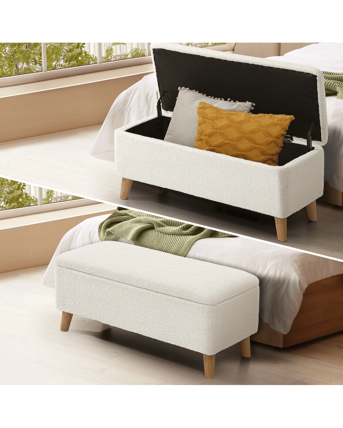 Elevate your home with cozy comfort and clever storage - Introducing Sherpa Ottoman with Storage by Oikiture!
