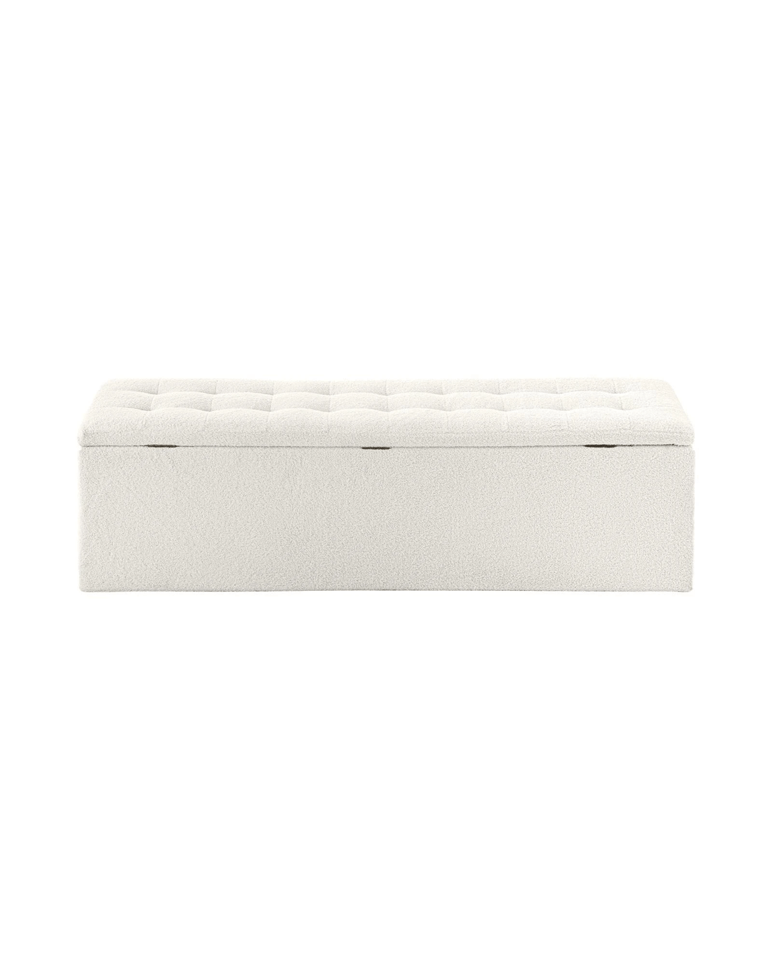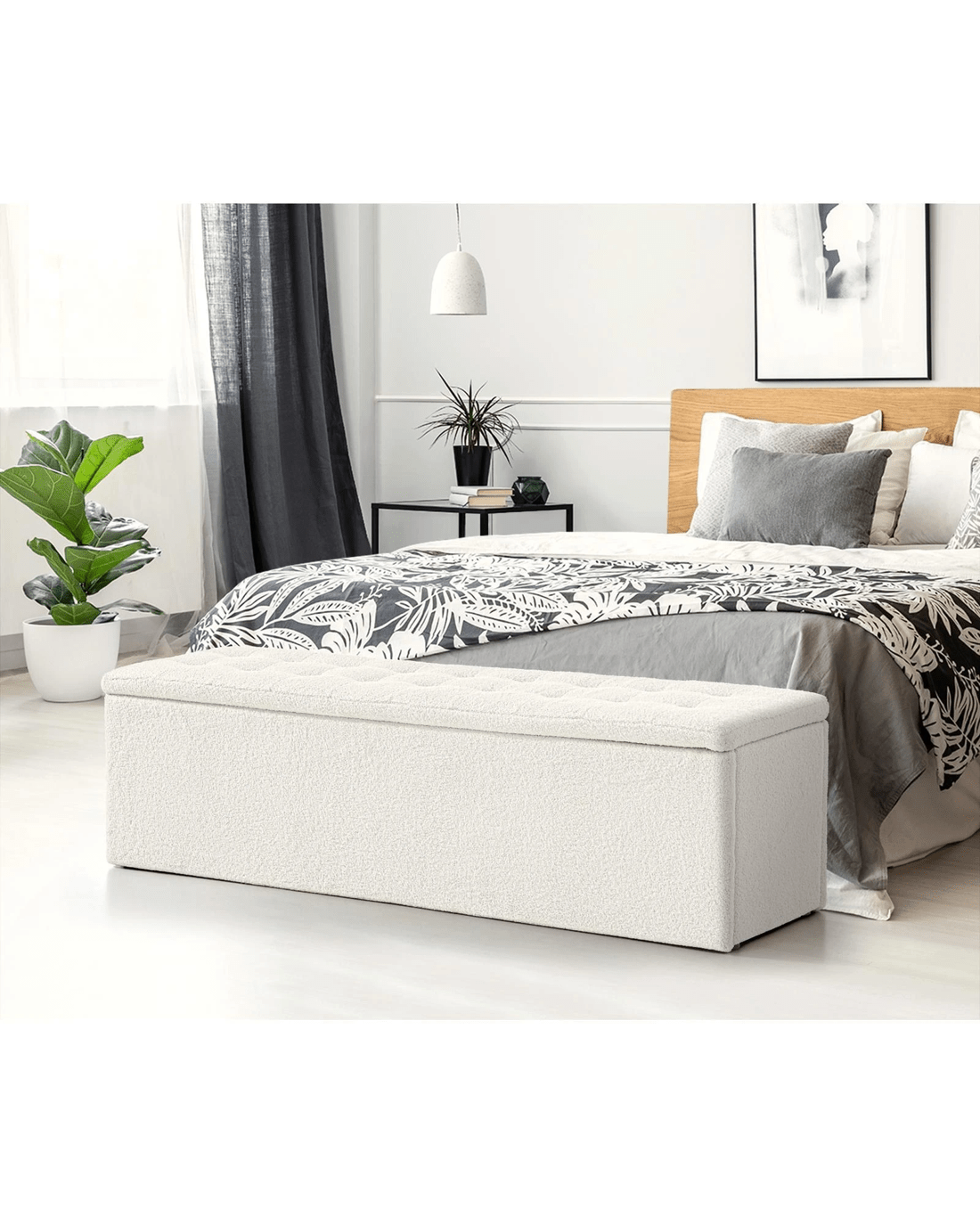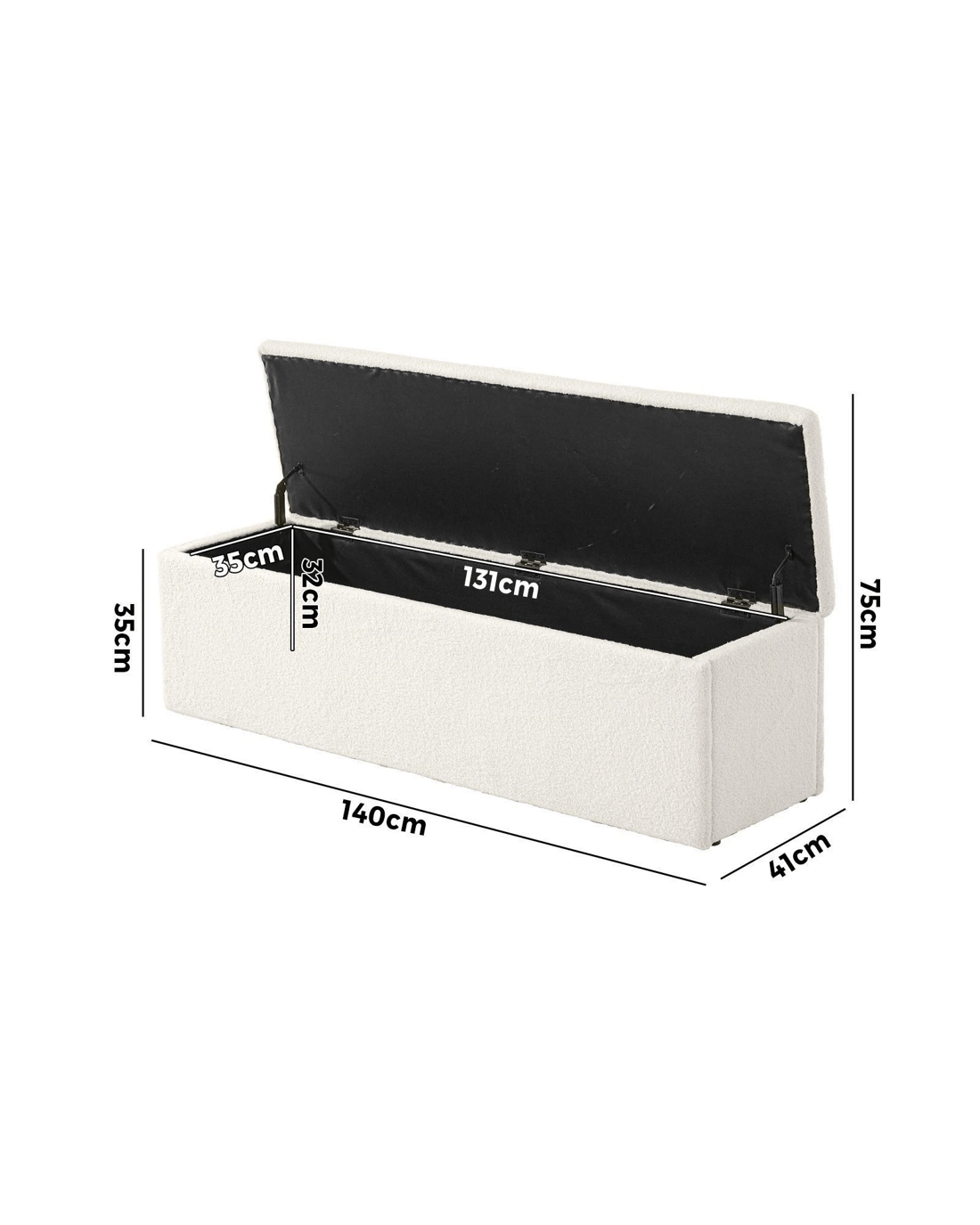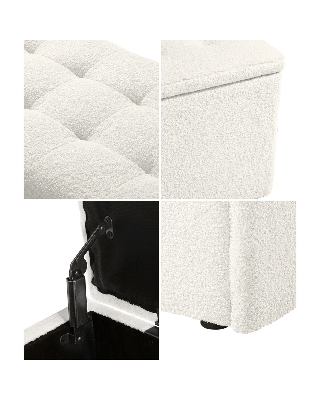 Oikiture Storage Ottoman Blanket Box Foot Stool Xl Chest Toy Sherpa Linen - White