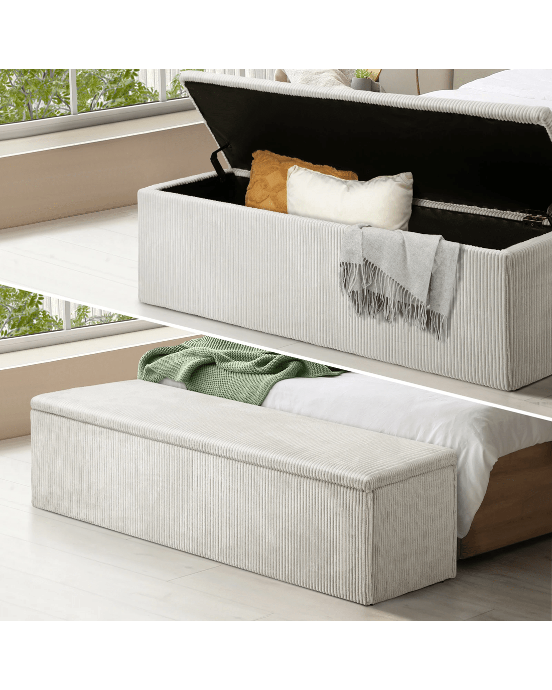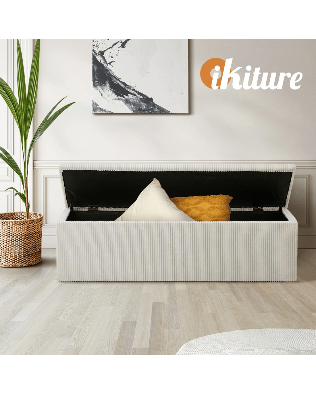 Oikiture Storage Ottoman Blanket Box Foot Stool Xl Chest Toy Velvet - Beige