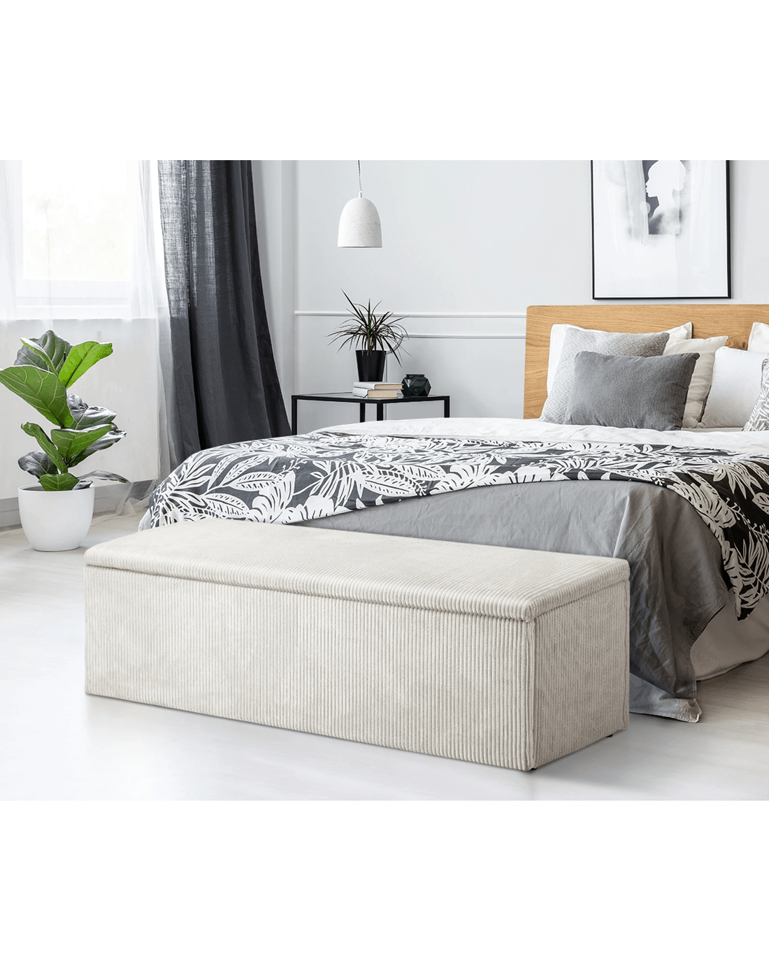Perfect for keeping Sherpa, cushions, and other items that you would like to keep away for the tidy look, this storage is there for you to utilize any time. Designed with metal hinges, you do not have to worry of holding the lid and store things in style.