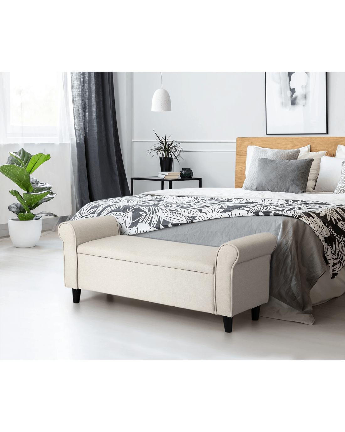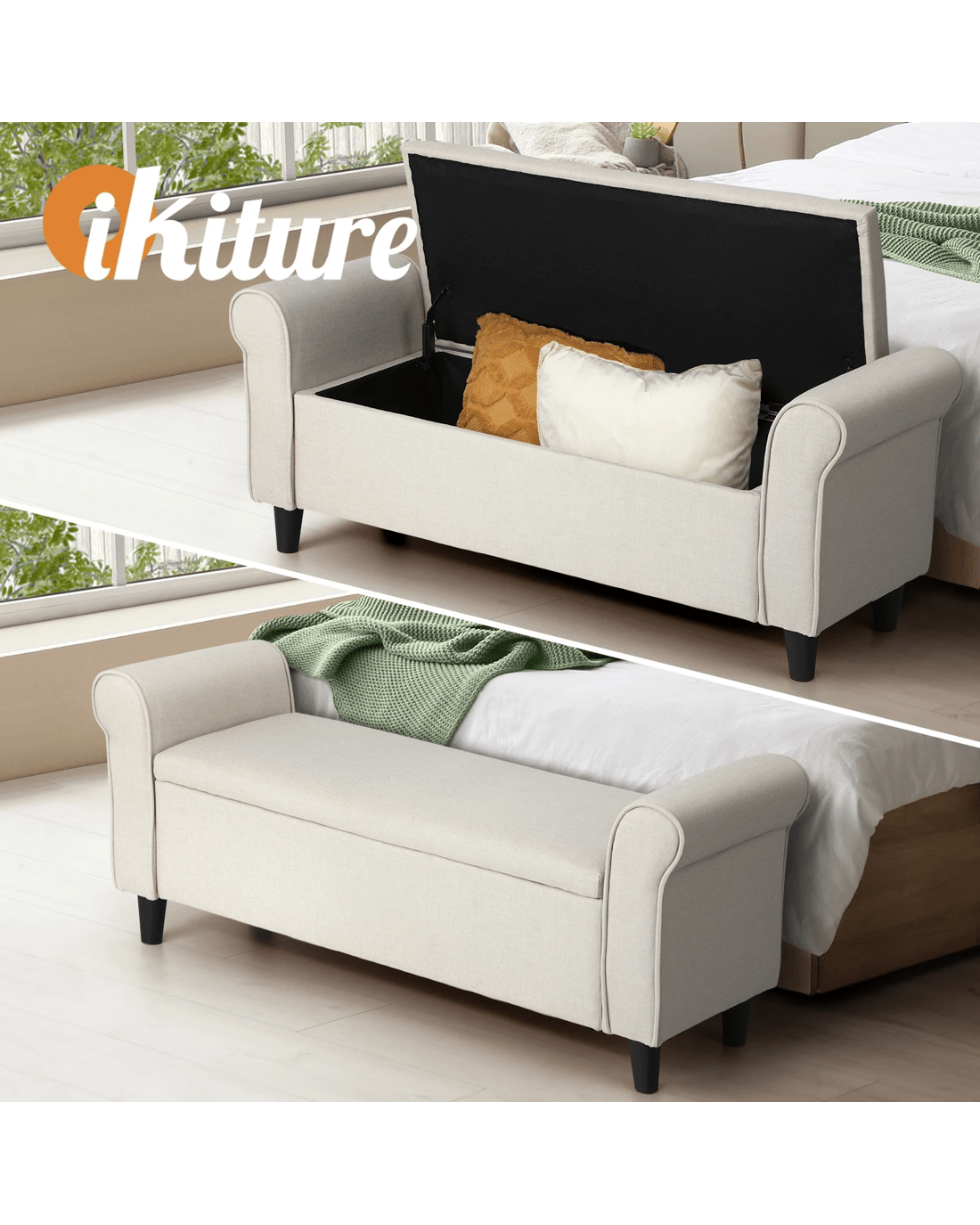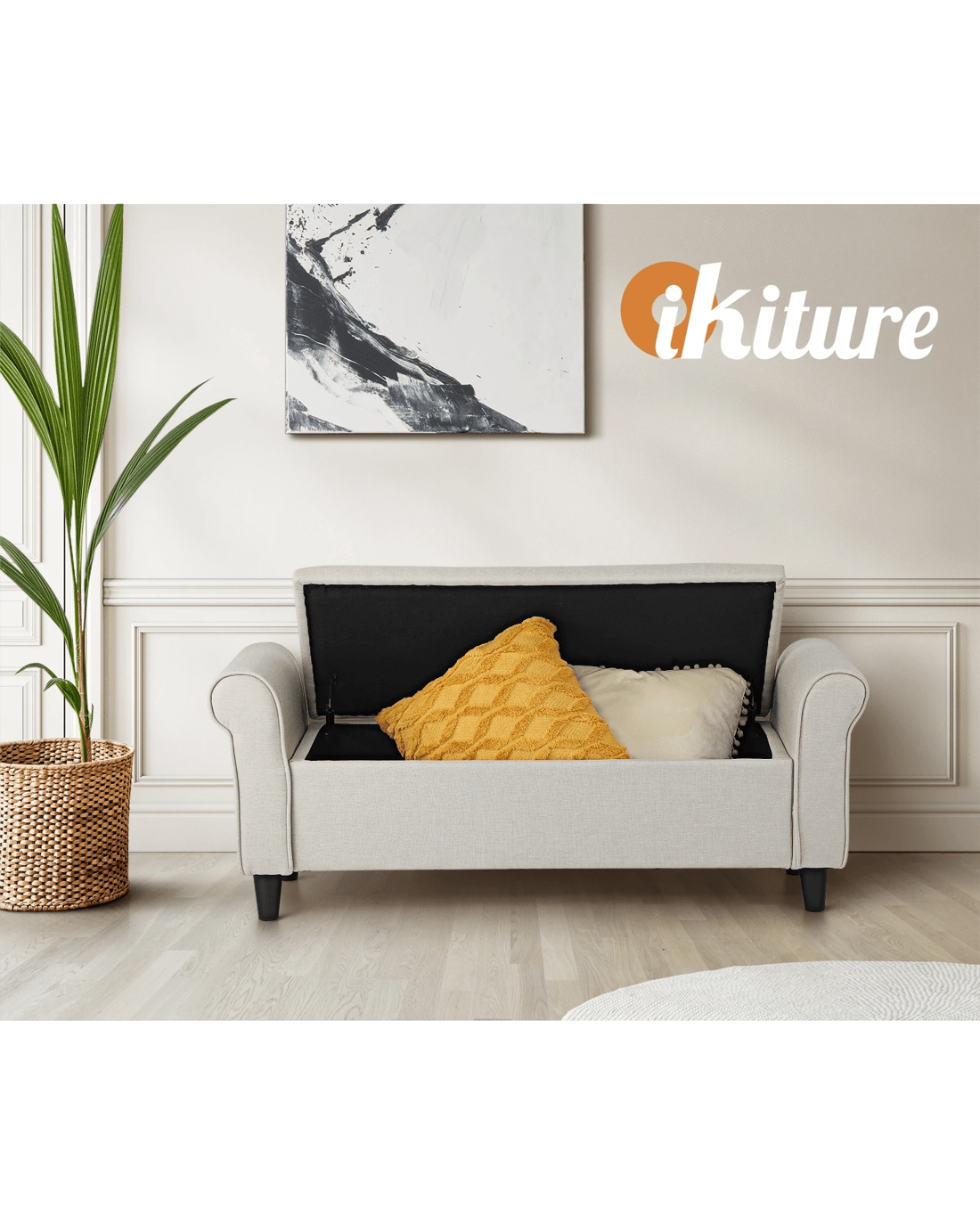 Sold by Kamprad's Oikos 1943Oikiture Storage Ottoman Blanket Box Linen Fabric Arm Foot Stool Couch - Beige