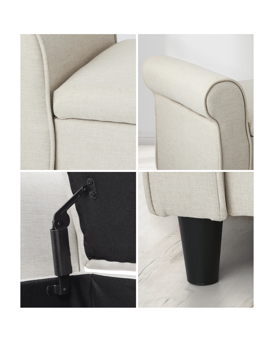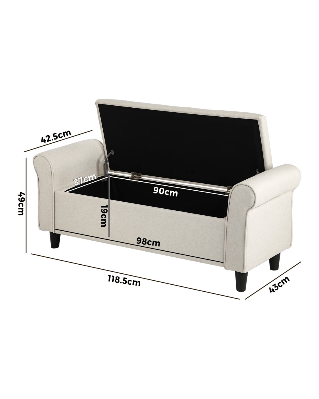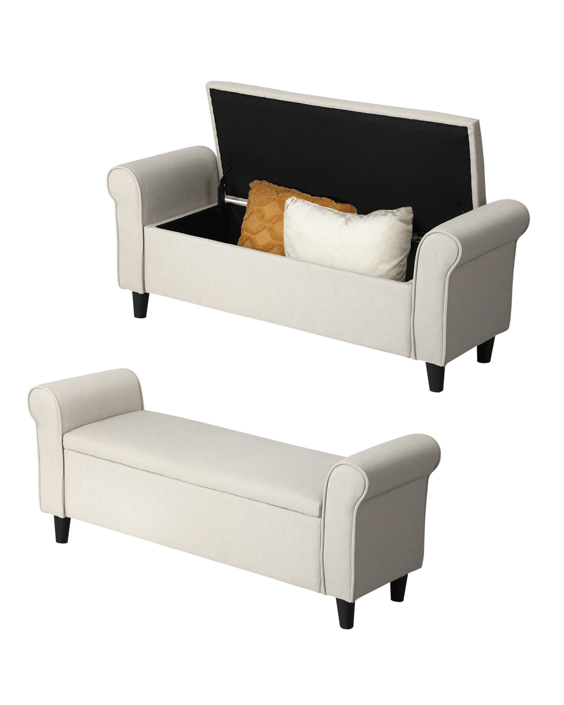 Sold by Kamprad's Oikos 1943Oikiture Storage Ottoman Blanket Box Linen Fabric Arm Foot Stool Couch - Beige